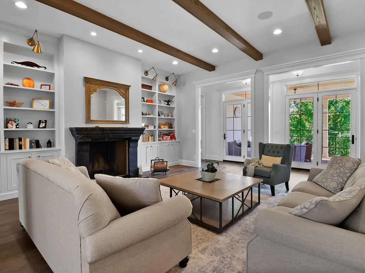 Wood beamed ceiling