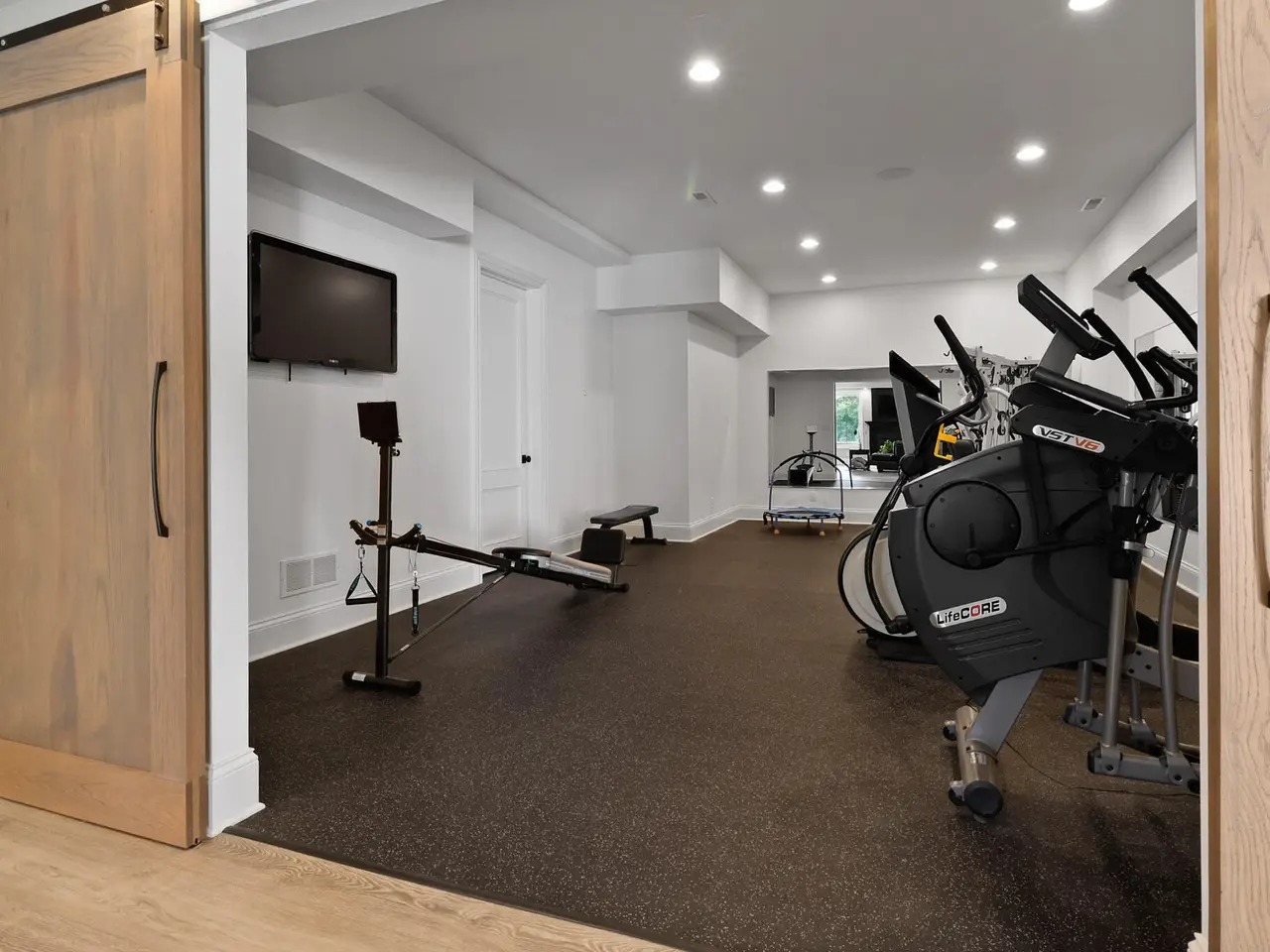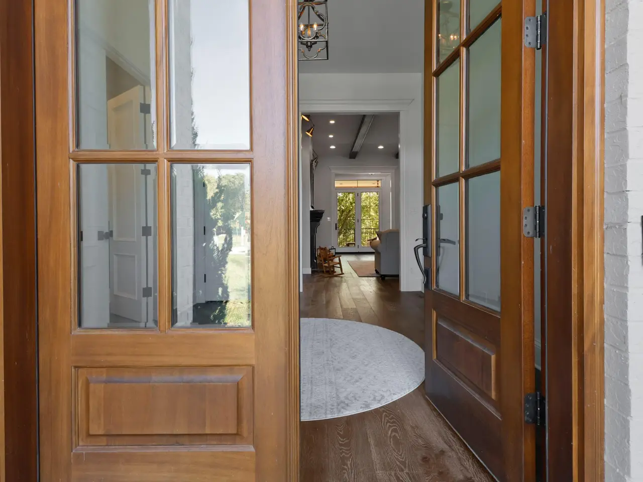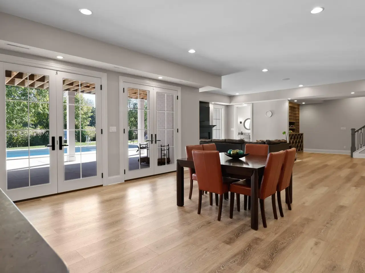 Discover a stunning blend of elegance and functionality in this sprawling 5-bedroom, 6.5 bath brick ranch with upper bedroom quarters! Perfectly situated on a private cul-de-sac lot with serene back views. This exquisite home boasts soaring 12-foot ceilings on the main level and features beautiful solid wood wide-plank flooring throughout, creating a seamless flow between spaces. Each bedroom is thoughtfully designed with its own bathroom, providing ultimate convenience and privacy. Entertain in style in the elegant formal dining room or the gourmet kitchen, which showcases an enormous island, a Sub-Zero refrigerator, a pot filler, and top-of-the-line Wolf appliances. This kitchen is a chef's delight, ideal for creating culinary masterpieces while enjoying the company of family and friends. The inviting great room features custom built-ins, a wood beamed ceiling, and numerous windows that offer stunning views of the natural surroundings, creating a bright and airy atmosphere. Relax by one of the three cozy fireplaces, or unwind with your favorite beverage at the coffee/wet bar. Double French doors lead to a maintenance-free deck that overlooks the luxurious in-ground pool, fire pit, and picturesque wooded backdrop, making it perfect for outdoor entertaining and soaking in the tranquility of nature. The large master suite is a true retreat, featuring a spa soaker tub, a walk-in tile shower, and two spacious walk-in closets, ensuring ample storage and comfort. Additionally, the finished walkout basement is the ultimate entertainment haven, complete with a workout room for your fitness routine, a home theater for movie nights, a full kitchen/bar for hosting gatherings, a 3/4 bath for guests, and a fifth bedroom with a private bath, complemented by a custom wine rack for the discerning connoisseur. This home is not just a place to live; it's a luxurious lifestyle waiting to be embraced, offering an unparalleled combination of sophisticated design and modern amenities.