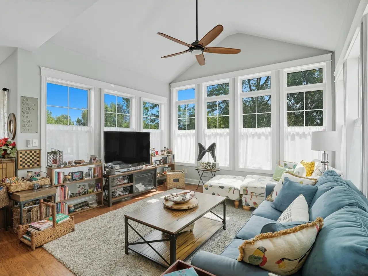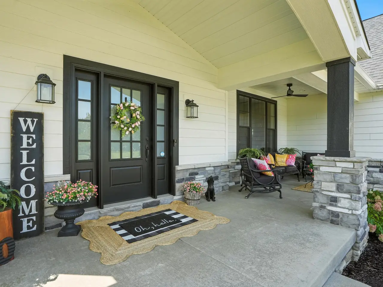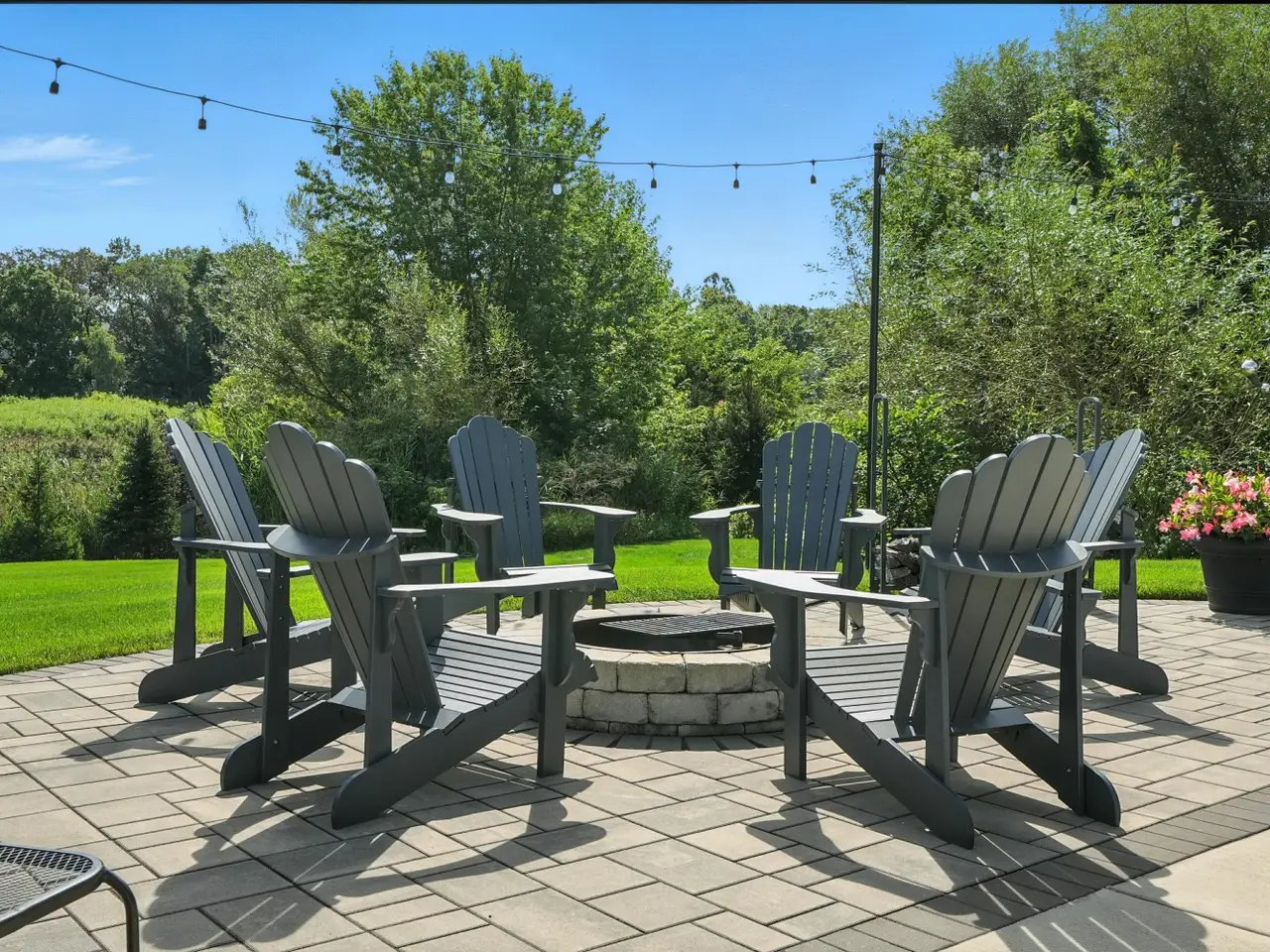 Welcome to this exquisite custom-built two-story home, perfectly situated on a serene .88-acre cul-de-sac lot, offering a peaceful and private wooded view that creates a tranquil atmosphere. As you approach the residence, you'll be greeted by a charming covered front porch, ideal for relaxing with a morning coffee or enjoying evening sunsets. Step inside to find an inviting foyer that seamlessly leads you into the great room, which features a stunning fireplace that adds warmth and ambiance, perfect for cozy evenings with family and friends. This space boasts a perfect blend of elegance and comfort. The open-concept kitchen is a culinary delight, featuring an oversized island that provides ample seating for gatherings, a spacious walk-in pantry, and a convenient mudroom. Sunlight floods the four-season room through an abundance of windows, creating a bright, airy space that's perfect for year-round enjoyment. The luxurious master suite is a true retreat, complete with an enormous walk-in closet, additional storage closets, and a spa-like master bathroom, ensuring your comfort and relaxation. The home also features three generously sized additional bedrooms and a well-appointed full bathroom, making it perfect for family living or entertaining guests. The main level is adorned with beautiful hardwood floors, adding warmth and sophistication. Step outside onto the expansive maintenance-free deck that wraps around the back of the home, complete with a powered awning to provide shade when desired, perfect for outdoor dining and entertaining. The professionally landscaped yard is nothing short of stunning, anchored by an inviting inground pool that serves as the focal point of the outdoor space. This backyard oasis features a cozy fire pit and a charming playhouse, coupled with ample grassy areas for hosting gatherings with friends and family. Unfinished basement is roughed in for future bath and finishing. 3.5 car garage is perfect for all your storage!