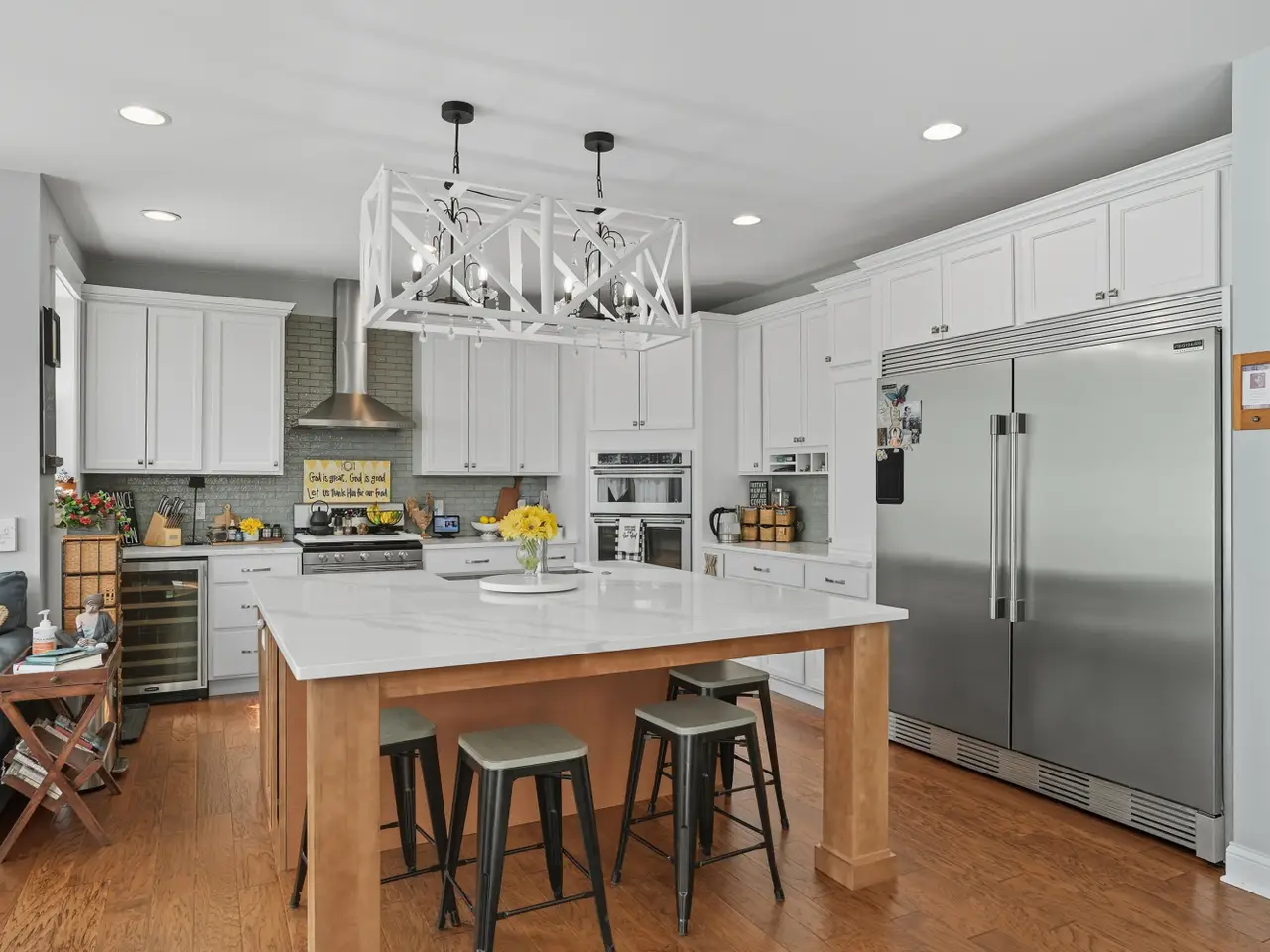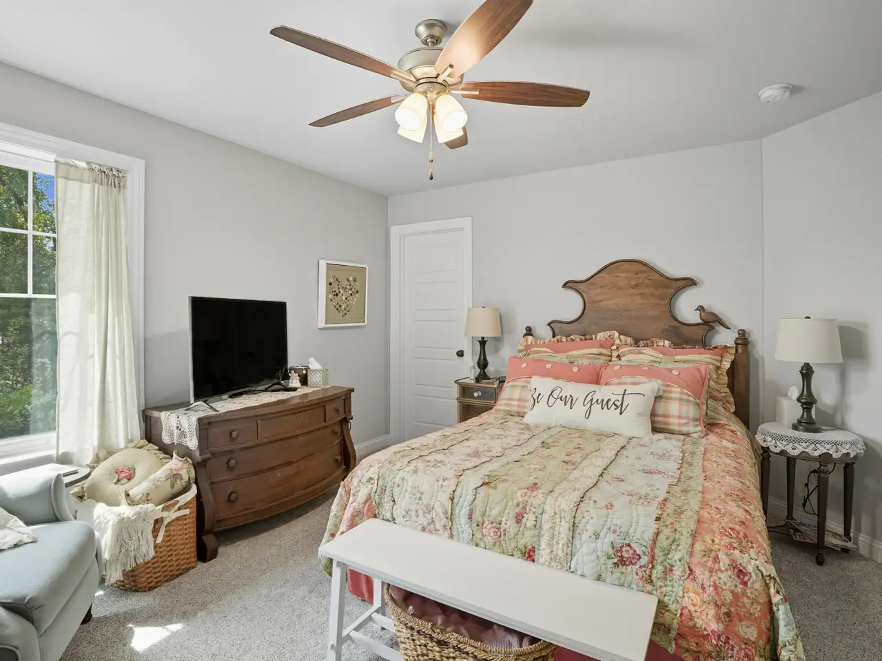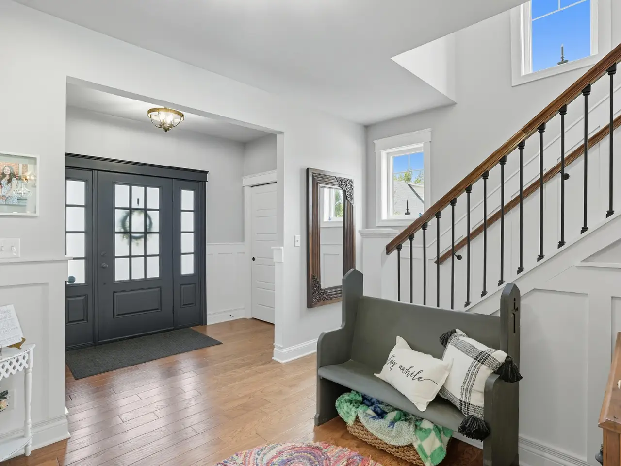 Welcome to this exquisite custom-built two-story home, perfectly situated on a serene .88-acre cul-de-sac lot, offering a peaceful and private wooded view that creates a tranquil atmosphere. As you approach the residence, you'll be greeted by a charming covered front porch, ideal for relaxing with a morning coffee or enjoying evening sunsets. Step inside to find an inviting foyer that seamlessly leads you into the great room, which features a stunning fireplace that adds warmth and ambiance, perfect for cozy evenings with family and friends. This space boasts a perfect blend of elegance and comfort. The open-concept kitchen is a culinary delight, featuring an oversized island that provides ample seating for gatherings, a spacious walk-in pantry, and a convenient mudroom. Sunlight floods the four-season room through an abundance of windows, creating a bright, airy space that's perfect for year-round enjoyment. The luxurious master suite is a true retreat, complete with an enormous walk-in closet, additional storage closets, and a spa-like master bathroom, ensuring your comfort and relaxation. The home also features three generously sized additional bedrooms and a well-appointed full bathroom, making it perfect for family living or entertaining guests. The main level is adorned with beautiful hardwood floors, adding warmth and sophistication. Step outside onto the expansive maintenance-free deck that wraps around the back of the home, complete with a powered awning to provide shade when desired, perfect for outdoor dining and entertaining. The professionally landscaped yard is nothing short of stunning, anchored by an inviting inground pool that serves as the focal point of the outdoor space. This backyard oasis features a cozy fire pit and a charming playhouse, coupled with ample grassy areas for hosting gatherings with friends and family. Unfinished basement is roughed in for future bath and finishing. 3.5 car garage is perfect for all your storage!