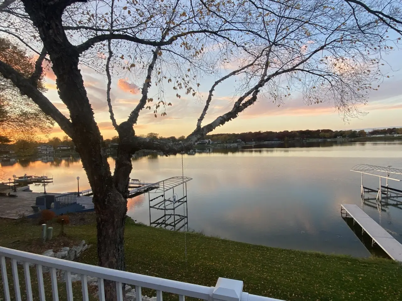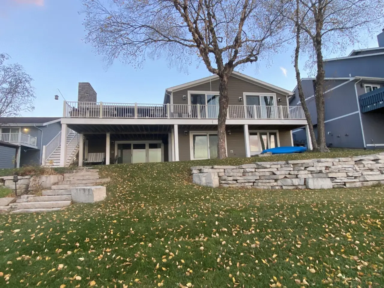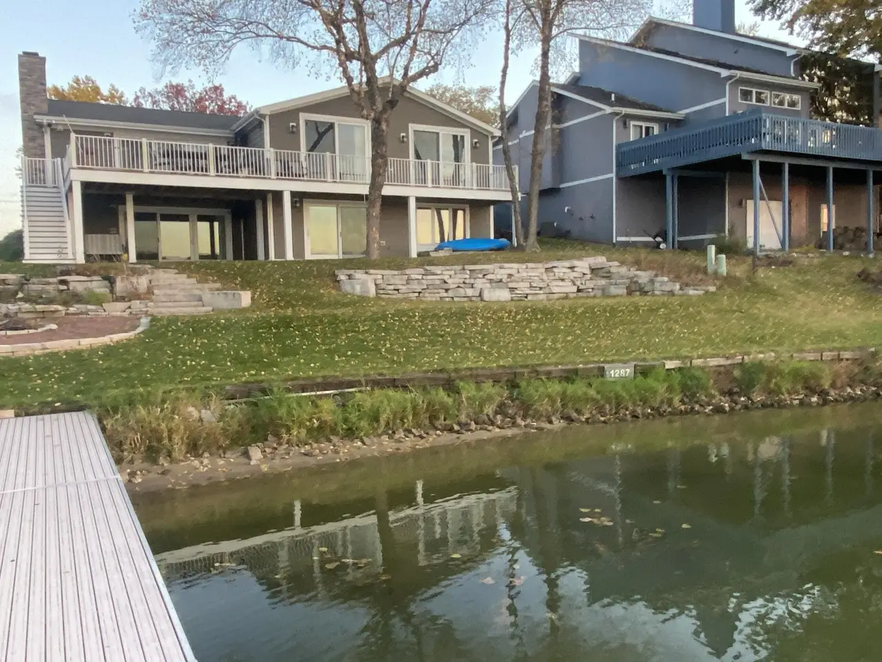 Stunning Lakefront Ranch in Lakes of Four Seasons -Welcome to your dream lake house! This 5-bedroom, open concept ranch home offers breathtaking lake views from most rooms and is professionally designed for relaxation and entertaining. Nestled on Lake Holiday, this home combines quality finishes, thoughtful details, and a seamless indoor-outdoor lifestyle. Step inside to find tall ceilings throughout the main level & living room w/ Hardwood floors,corner fireplace & soaring cathedral ceilings, opening to a huge deck overlooking the water. The dining area features built-in storage window seat, while the kitchen boasts SS appliances, white & gray soft-close cabinetry, and quartz countertops! The main floor primary suite is a peaceful retreat w/ heated ensuite bathroom floor,Big tiled shower w/ jets, double vanity, & walk-in closet & Walk out to deck & Lake views! 2nd main floor bedroom features a plant ledge, Big closet, & walk-out deck & Lake Views! A beautiful 2nd bath w/ floor-to-ceiling tiled shower, big laundry room with cabinetry,utility sink, & a mudroom with closet & garage access complete the main level. The lower level offers even more space with three large bedrooms-each with lake views (one with walk-out to the patio) ,all with big closets. Enjoy movie nights or gatherings in the comfortable Rec room featuring a brick corner fireplace & walkout to the covered patio. A craft room with laundry sink, utility room, and a full bath with separate tub and tiled shower. Additional highlights include: 3-car finished garage with vinyl flooring, 8' doors with windows, and extra side parking pad. Hardwood floors on the main level and staircase;vinyl plank flooring in lower level,LED lights throughout & wired for surround sound upstairs. Plus storm or potential future wine cellar! Landscaped yard w/firepit, sand beach, aluminum dock, & western exposure for glorious sunsets over the lake. This home perfectly blends modern comfort, timeless design & lakefront living.