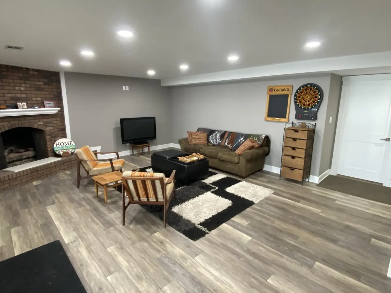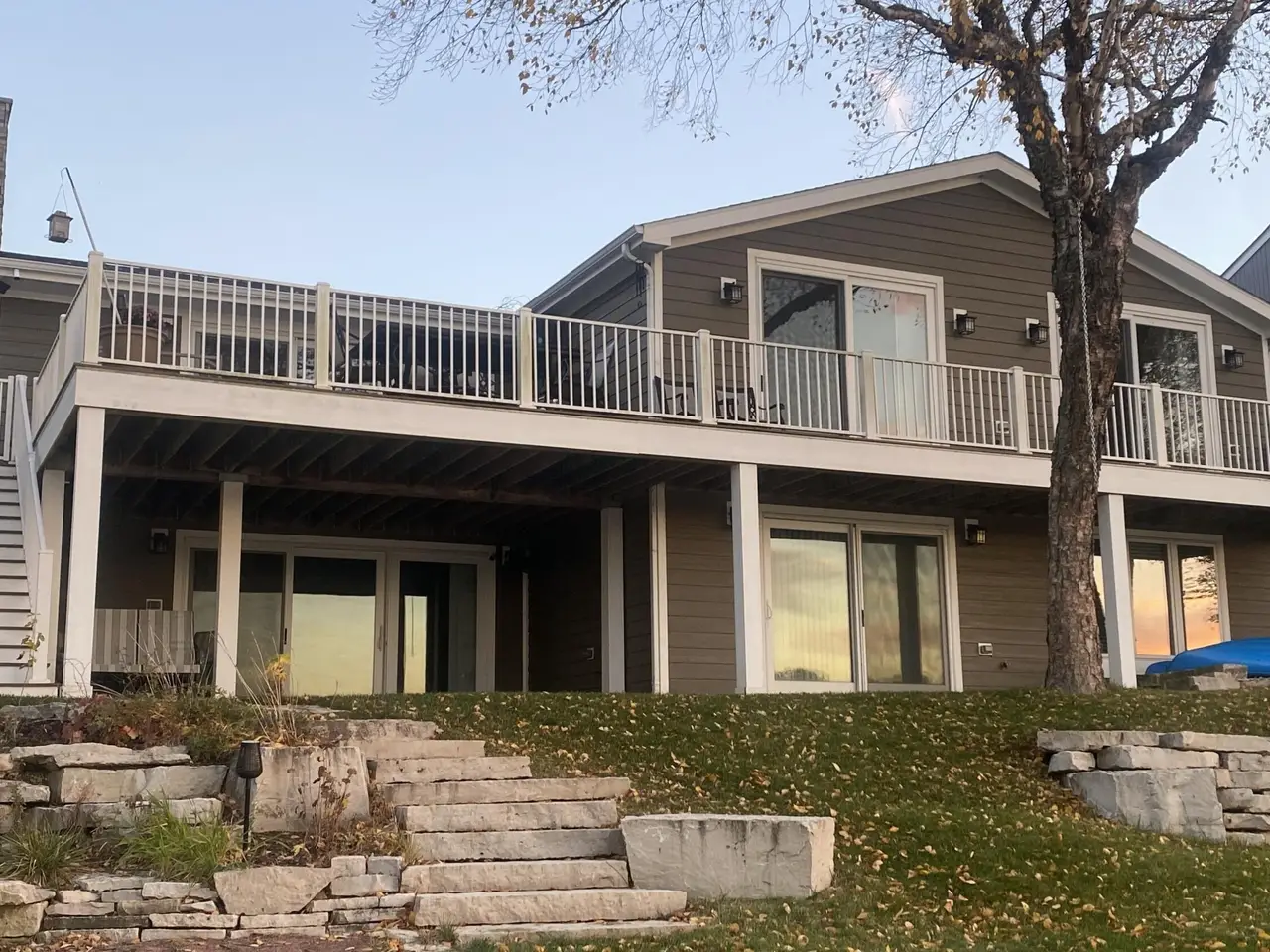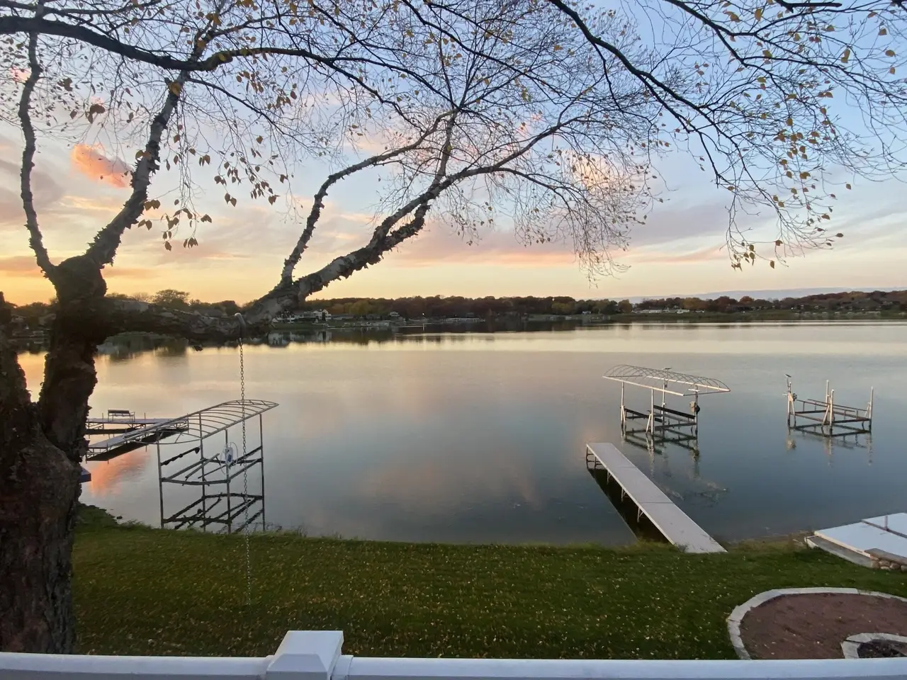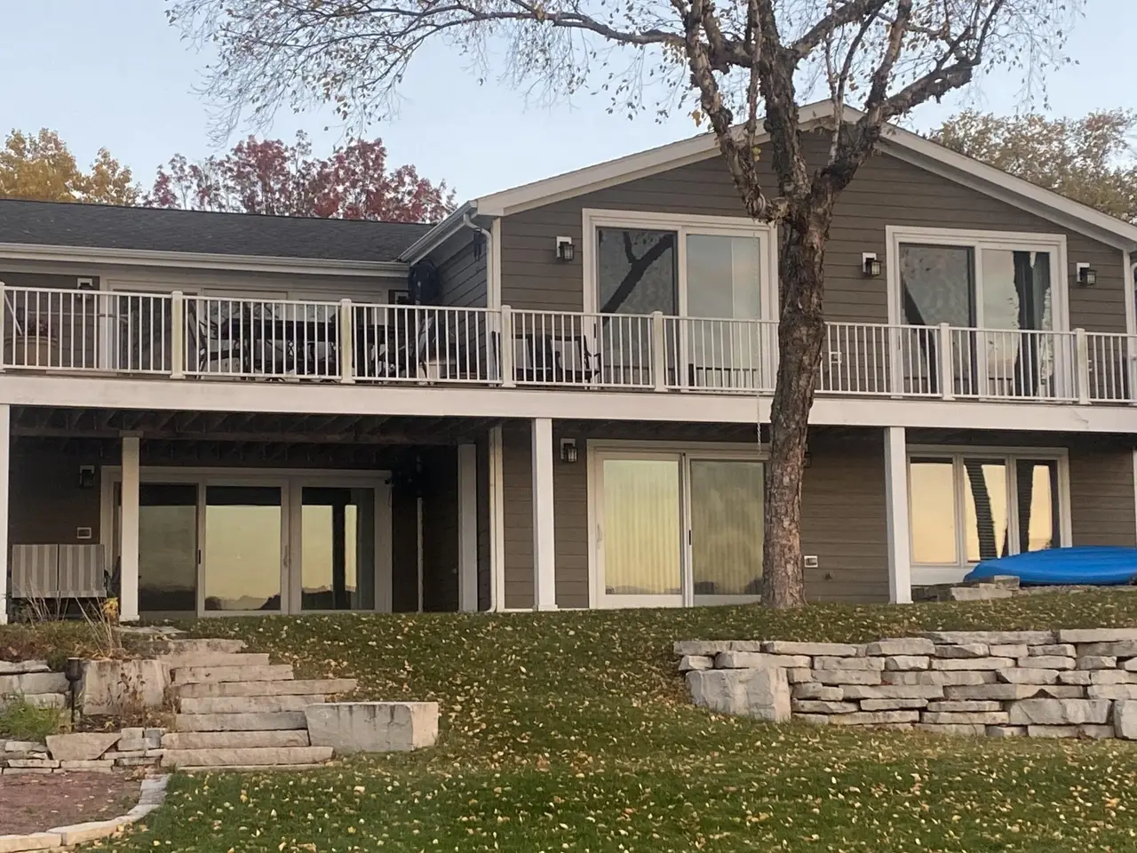 Stunning Lakefront Ranch in Lakes of Four Seasons -Welcome to your dream lake house! This 5-bedroom, open concept ranch home offers breathtaking lake views from most rooms and is professionally designed for relaxation and entertaining. Nestled on Lake Holiday, this home combines quality finishes, thoughtful details, and a seamless indoor-outdoor lifestyle. Step inside to find tall ceilings throughout the main level & living room w/ Hardwood floors,corner fireplace & soaring cathedral ceilings, opening to a huge deck overlooking the water. The dining area features built-in storage window seat, while the kitchen boasts SS appliances, white & gray soft-close cabinetry, and quartz countertops! The main floor primary suite is a peaceful retreat w/ heated ensuite bathroom floor,Big tiled shower w/ jets, double vanity, & walk-in closet & Walk out to deck & Lake views! 2nd main floor bedroom features a plant ledge, Big closet, & walk-out deck & Lake Views! A beautiful 2nd bath w/ floor-to-ceiling tiled shower, big laundry room with cabinetry,utility sink, & a mudroom with closet & garage access complete the main level. The lower level offers even more space with three large bedrooms-each with lake views (one with walk-out to the patio) ,all with big closets. Enjoy movie nights or gatherings in the comfortable Rec room featuring a brick corner fireplace & walkout to the covered patio. A craft room with laundry sink, utility room, and a full bath with separate tub and tiled shower. Additional highlights include: 3-car finished garage with vinyl flooring, 8' doors with windows, and extra side parking pad. Hardwood floors on the main level and staircase;vinyl plank flooring in lower level,LED lights throughout & wired for surround sound upstairs. Plus storm or potential future wine cellar! Landscaped yard w/firepit, sand beach, aluminum dock, & western exposure for glorious sunsets over the lake. This home perfectly blends modern comfort, timeless design & lakefront living.