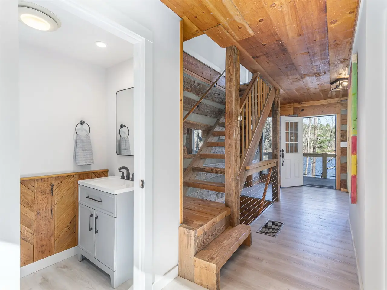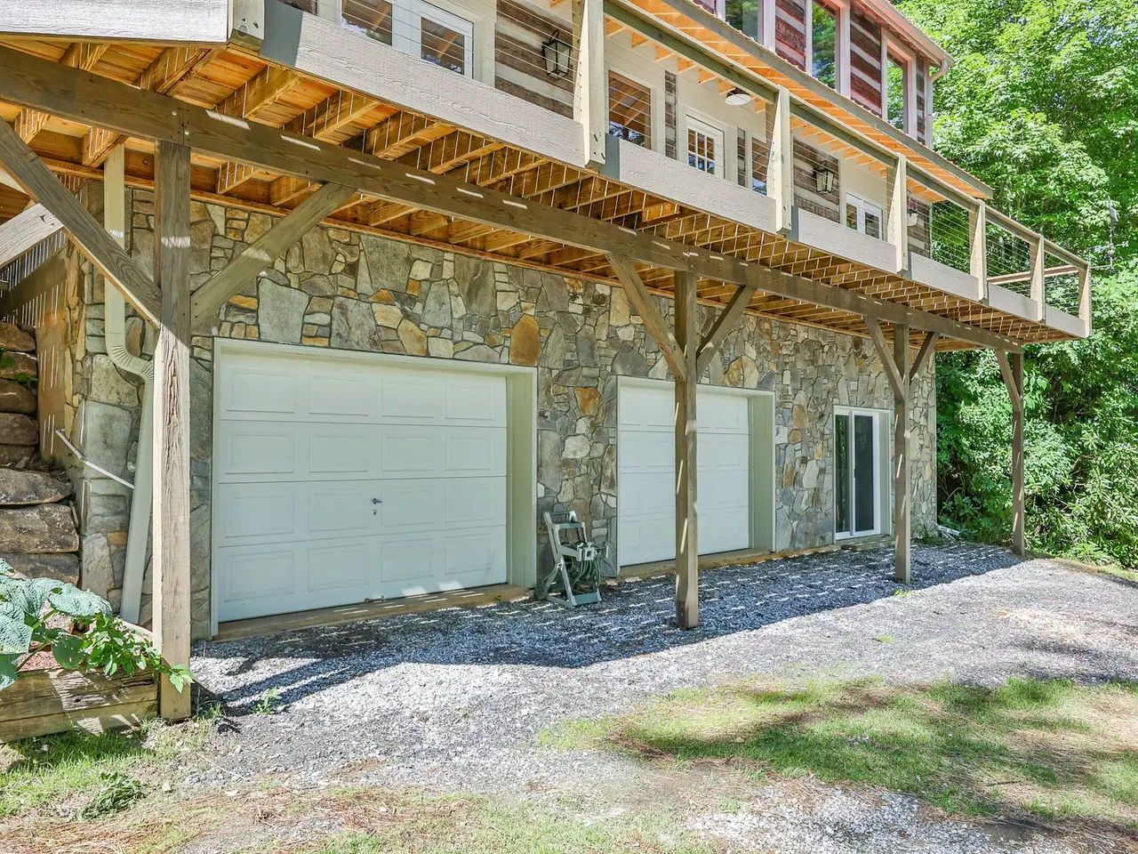 A secluded lakefront retreat nestled on the tranquil shores of Lake Glenville, this reclaimed Chestnut log cabin offers breathtaking views, unmatched serenity, and uncommon privacy. The park-like parcel has both cartpath and step access to the private dock and beach. The spacious living room is anchored by a large wood-burning stone fireplace, creating a warm and inviting atmosphere. The newly updated eat-in kitchen has custom-quality cabinetry and abundant quartz counters, ideal for cooking and entertaining. The primary bedroom is a true sanctuary, with its own private balcony overlooking the lake, a sitting room, ample closet space, and vaulted cathedral ceilings. Downstairs, you'll find a large den with fireplace, and a garage that could be transformed into more living space. The wraparound partially covered deck and a stone fire pit area are perfect for lakeside evenings/dining. Whether a residence or vacation property, this home provides the ultimate lakefront experience.