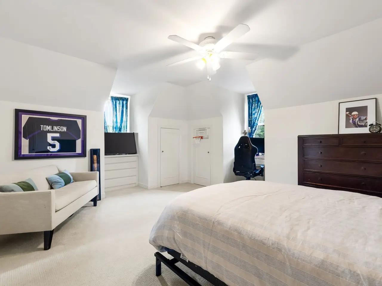 Welcome home! This exquisite beauty is nestled on over half an acre in the highly sought-after Northwood Hills Estates of Dallas! This 5-bedroom home offers an unparalleled blend of charm, luxury, and functionality! Boasting 5 full baths and 4 spacious living areas, including a game room, this home provides ample space for both relaxation and entertainment. The expansive layout spans 4,969 square feet, featuring designer fixtures and finishes throughout. A versatile 5th bedroom is currently being used as a home office, making it perfect for today's modern lifestyle. The gourmet kitchen is a chef's dream, complete with wood floors, a gas cooktop, built-in KitchenAid refrigerator, double stainless steel ovens, and a large eat-at island. Step outside to your private oasis: a beautifully turfed yard with a charming courtyard and sparkling pool, perfect for entertaining or enjoying peaceful afternoons. Separate pool house features an additional 178 square feet! The balcony off the upstairs bedroom offers scenic views and a serene retreat. The property sits on a large corner lot with a pier and beam foundation, ensuring durability and stability. Additionally, a $60K bedrock drain has been installed around the house for added peace of mind. With its combination of classic charm, modern amenities, and prime location, this home is truly a one-of-a-kind gem in Northwood Hills Estates.