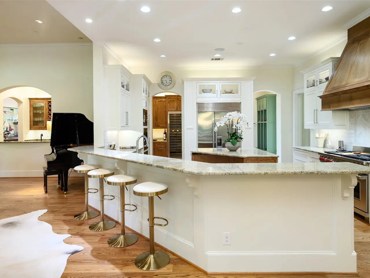 This sterling location near the top private schools in Dallas offers unmatched luxury in this exquisite Edinburgh custom-built estate, nestled on over half an acre in one of Preston Hollow's hottest neighborhoods near Strait Lane. A stately setback and striking Lueders limestone facade create an unforgettable first impression, while the expansive floor plan offers seamless flow for both everyday living and grand entertaining. Inside, painstaking design meets modern convenience. The home boasts five spacious bedrooms, including a serene downstairs primary suite with a spa-like bath, heated floors, a steam and body-spray shower, and a soaking tub. A private downstairs guest suite ensures comfort for visitors. Upstairs, three additional ensuite bedrooms accompany a game room with a wet bar, a state-of-the-art media room, and a dedicated exercise studio with full-length mirrors. At the heart of the home, the gourmet chef's kitchen is a culinary masterpiece, featuring Miele, Wolf, and Sub-Zero appliances, a 6-burner Wolf range with griddle and dual ovens, a built-in Miele coffee maker, a steam oven, and a warming drawer. A butler's pantry with a Sub-Zero wine chiller and Scotsman ice maker makes entertaining effortless. Throughout the home, a Sonos sound system, Crestron home automation, and Lutron lighting create the perfect ambiance. Three fireplaces - including a wood-burning hearth on the patio - add warmth and charm. Step outside to your private backyard retreat, where an outdoor grilling station, sparkling pool, spa, and tranquil water features are surrounded by lush turfed and grassy areas. A swing drive to three EV-ready garage bays creates a terrific hard surface play area equipped with basketball goal, completing this stunning estate. Just steps from the Northaven Trail and minutes from top private schools, world-class shopping, dining, and airports, this home offers the perfect blend of luxury, comfort, and convenience.