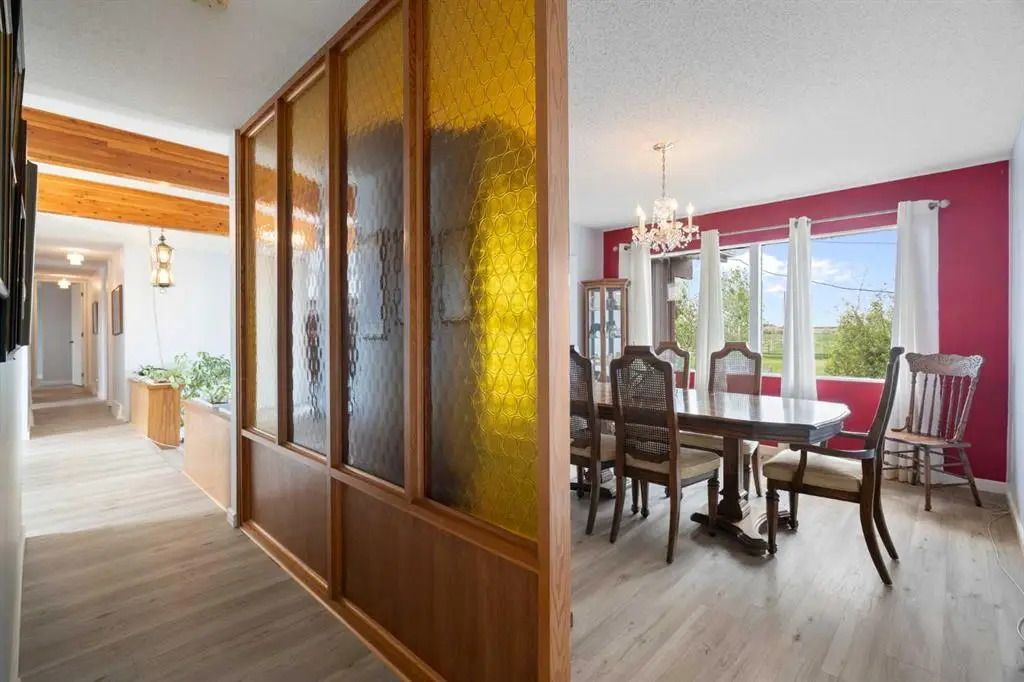 Set on over 66 acres with two convenient entrances and frontage along three roads—Highway 9, Township Road 252, and 252A—this exceptional property is just 10 minutes from Calgary city limits and 15 minutes from the future De Havilland Field. The land features a well-maintained 2,200 sq ft bungalow that has been lovingly cared for by the same family for the past 46 years. With a total of five generously sized bedrooms—four on the main floor including the primary suite with walk-in closet and private ensuite—the home offers a spacious and functional layout. The remaining main-floor bedrooms share a 4-piece bathroom, and the newer luxury vinyl plank flooring throughout the level adds a fresh, modern feel. Outdoors, the property is ideally equipped for equestrian or hobby farm use, with a 3-stall barn and run-in shelter—both with electricity and water—as well as a fenced paddock and riding area. Two additional outbuildings offer flexible use for storage or housing small livestock or poultry. The land is supported by three wells with flow rates between 2.5 and 3 GPM. Township Road 252 is on a school bus route, so snow removal to Highway 9 is prioritized—making year-round access convenient, even in winter. Currently, approximately 55 acres are leased to a local farmer, and a surface lease for a gas well provides additional, steady income. With development booming east of Calgary, the area offers incredible future potential—surrounded by multiple golf courses, future De Havilland Field, and quick routes to city amenities. Zoned A-GEN in Rocky View County, this is an ideal opportunity for those seeking rural living, investment potential, or long-term development possibilities. The insurance claim for siding and roofing has been processed, and seller has contracted someone to make the repairs in August, 2025. There is steel siding for the horse shelter that has been cut to size being stored in the barn, just needs to be installed. An insurance claim is currently in process for roof and siding repairs from hail damage, ensuring peace of mind for the next owner.