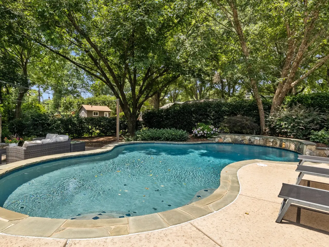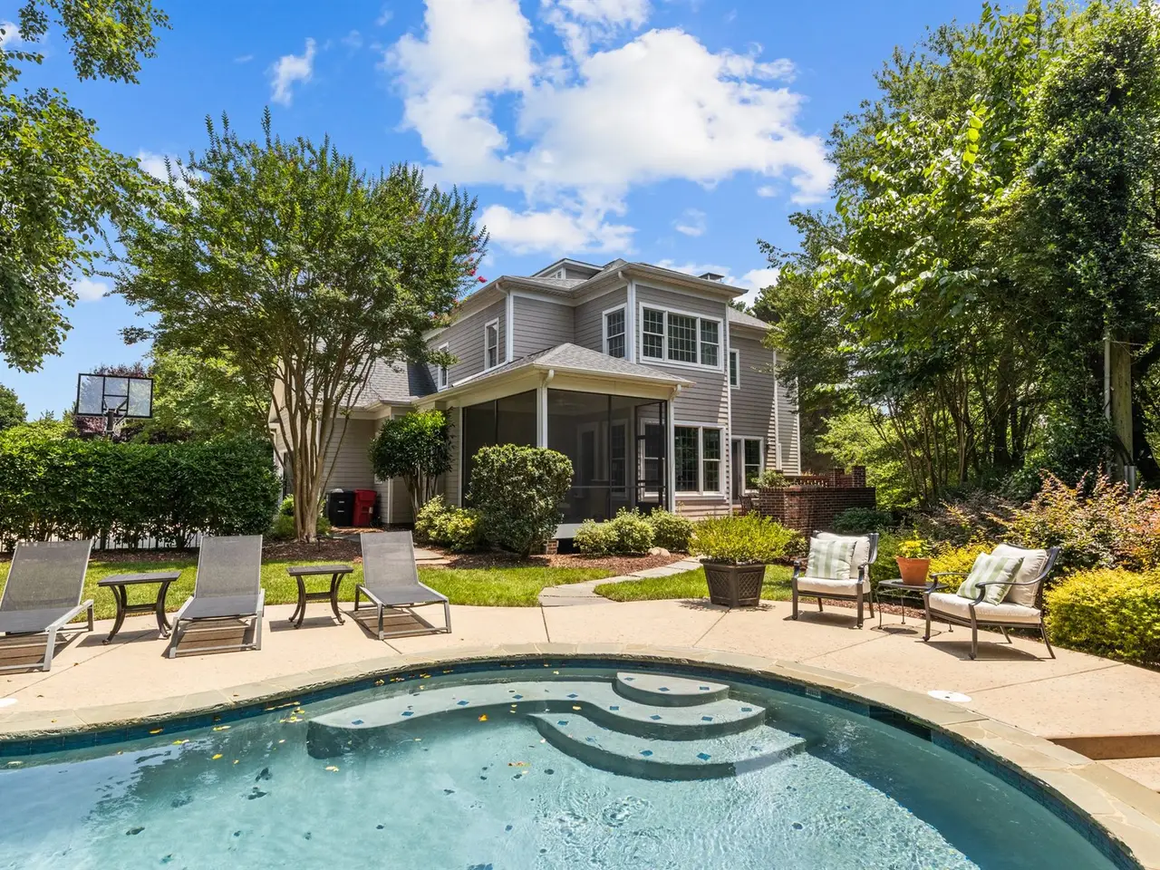 Nestled in the heart of Davidson, this exceptional home offers the rare opportunity to live just a short walk from charming shops, top-rated restaurants, and Davidson College. Thoughtfully designed with quality craftsmanship and superior finishes, this residence seamlessly blends character and modern convenience. Inside, you'll find an inviting open floor plan with abundant natural light, custom millwork, custom wine cellar, and hardwood flooring throughout. The chef's kitchen features a large quartz island, subway tile backsplash, and custom light fixtures - perfect for entertaining. The coffered ceiling great room serves as a stunning gathering space, while the spacious primary suite boasts a luxurious en suite bath. Step outside to enjoy the serene backyard, complete with a custom saltwater pool, exquisite decking, and professionally designed landscaping. Additional features include a two-car garage with epoxy flooring, ample storage, and a beautifully designed outdoor living space.