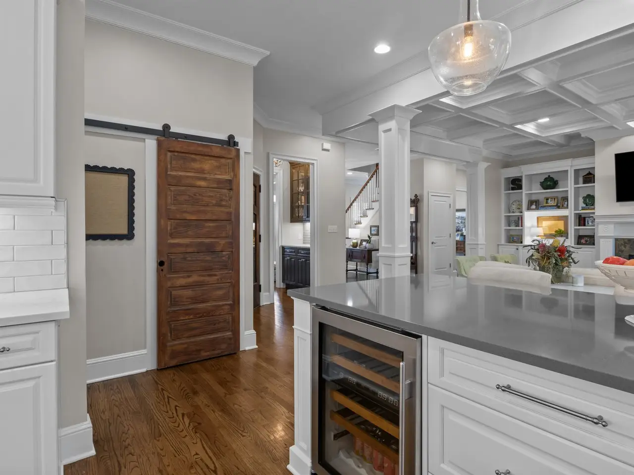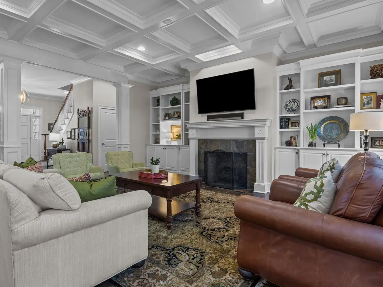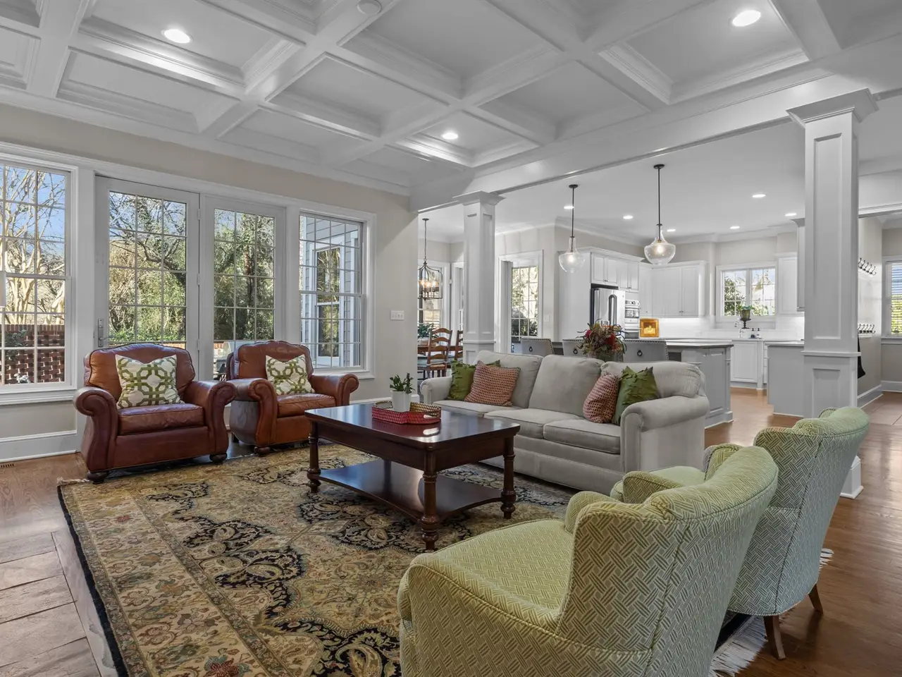 Coffered ceiling great room