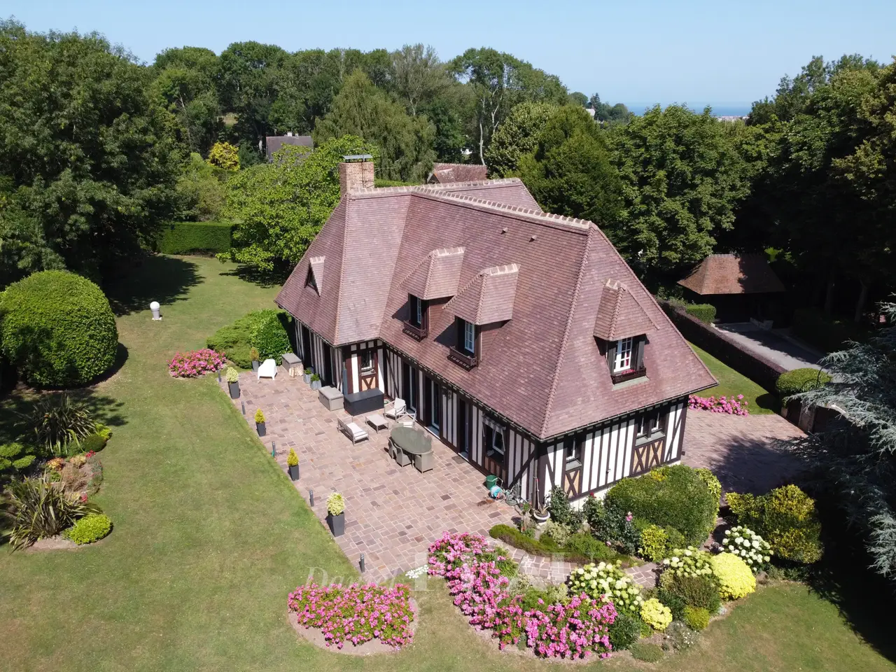 This superb property bathed in sunshine throughout the day is located in Deauville’s peaceful and keenly sought-after residential New Golf neighbourhood. Set in a magnificent 2800 sqm landscaped garden benefiting from direct access to the golf course, it offers about 390 sqm of floor space and 265 sqm of living space as defined by the Carrez Law including a near 100 sqm living/reception room with a fireplace accessing a fully south-facing terrace, a separate kitchen, a utility room, and five bedrooms each with a bath or shower room. With three garages. Information regarding the environment is available on http://www.georisques.gouv.fr In accordance with the Tracfin Law, proof of identity shall be required for visits.