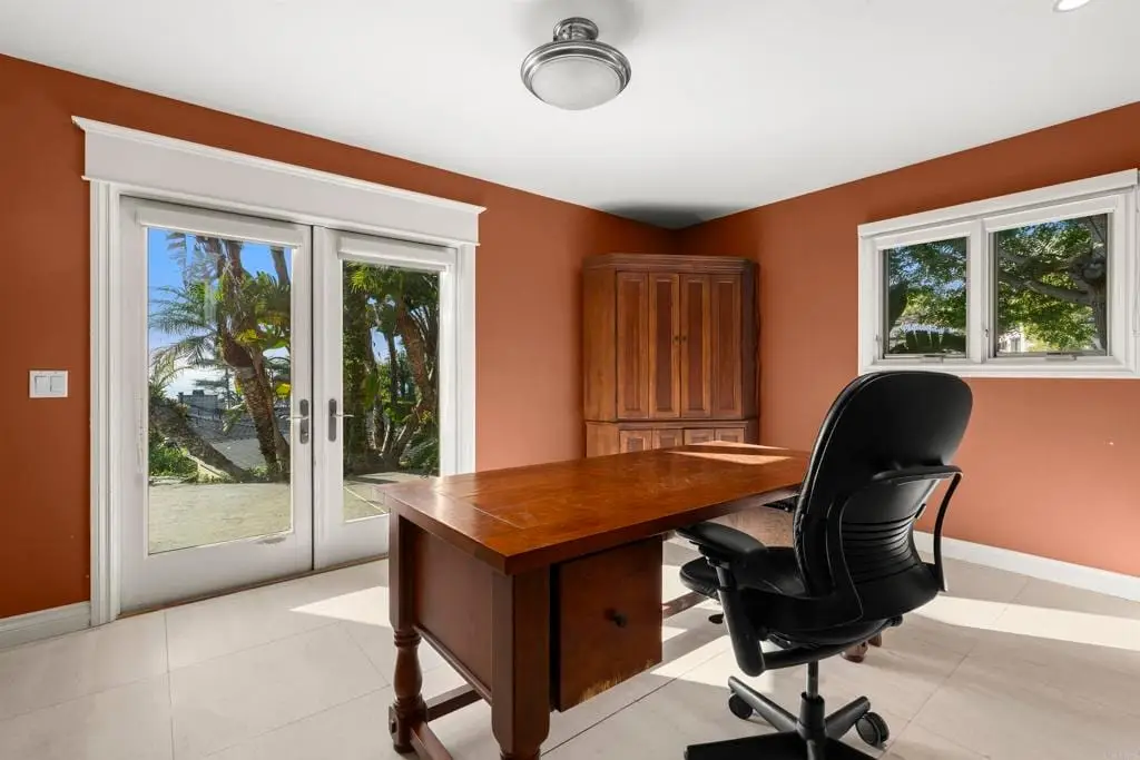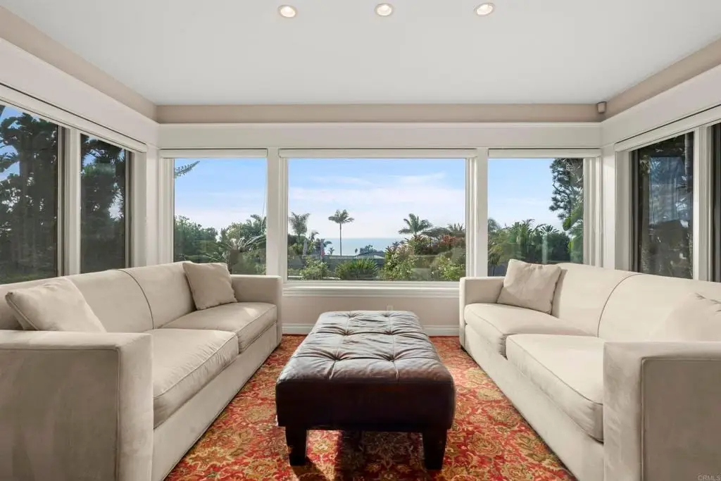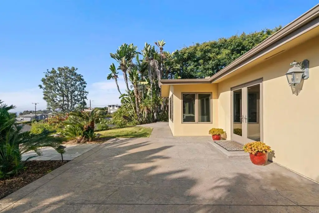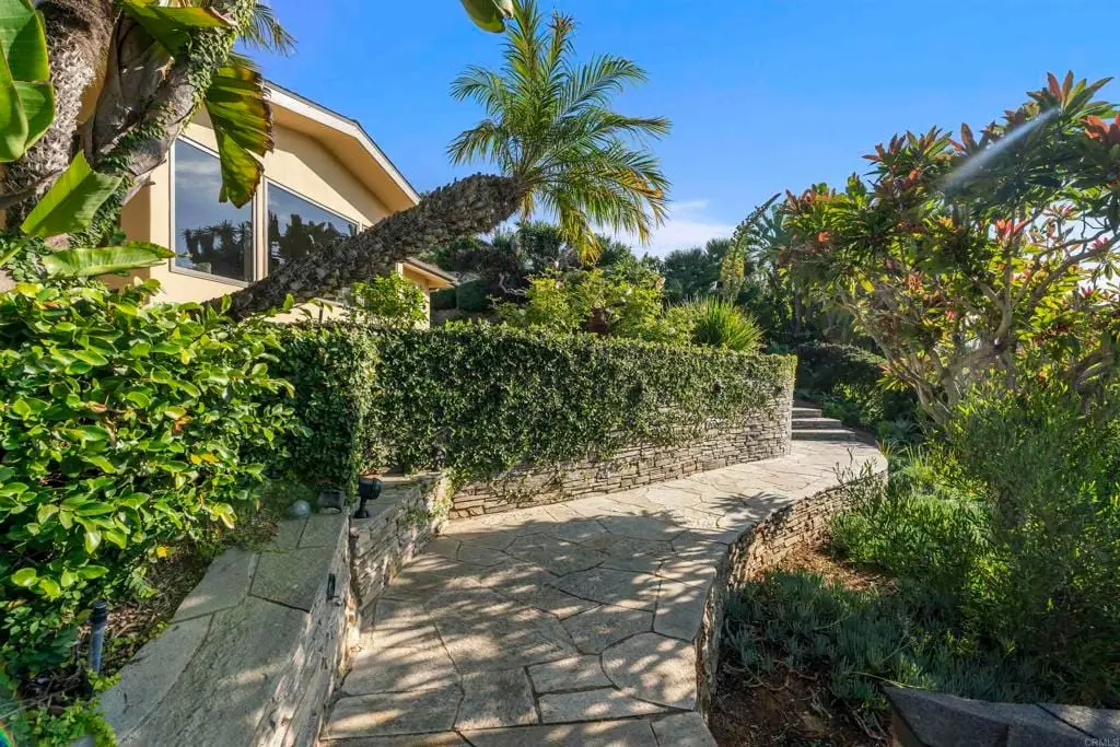 WALK TO EVERYTHING! Village close, beach close, restaurants and shopping easily walked to. OCEAN VIEW, single level living, elevated from the street for a very private feeling. Mature landscaping and a detached two car garage. Original build was 1970 remodel done by others in 2001. One bedroom has been used as an office. French doors from every room for easy outside access. Primary bedroom has a huge walk-in closet. Beautiful sit down views from the great room, office and kitchen areas. A cozy fireplace will warm you in a lovely seating area which is part of the great room. This is a special property with access to all that Del Mar has to offer. Bedrooms are virtually staged in some of the photos