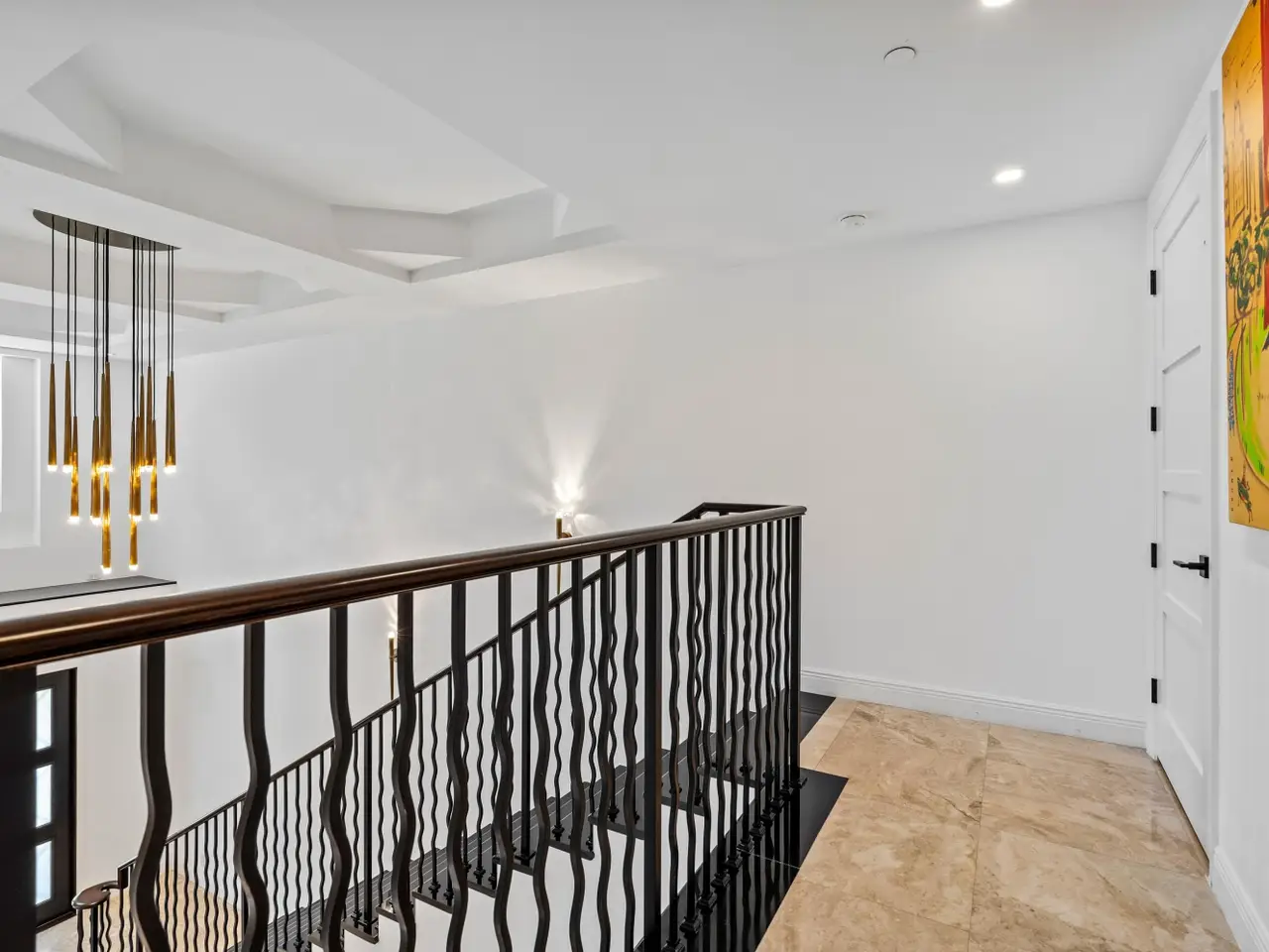 Palm Trail, Delray Beach, Florida. On tree-lined Palm Trail, across from the Intracoastal Waterway's shore, this is one of just six courtyard townhomes in an exclusive enclave offering resort-style living close to the beach, minutes from famous Atlantic Avenue's bistros and boutiques. Going beyond every expectation, this luxury townhome is an exquisite showplace by Leighton Design Group. Casual elegance is expressed with sophisticated modern ease in select finishes and bespoke elements that come together in a calm neutral palette with a textural look and touches of subtle glamour. Creating an estate-like environment in the Mediterranean-inspired architectural design, this light-filled end-position townhome opens to loggias around the private, tropically landscaped courtyard.
