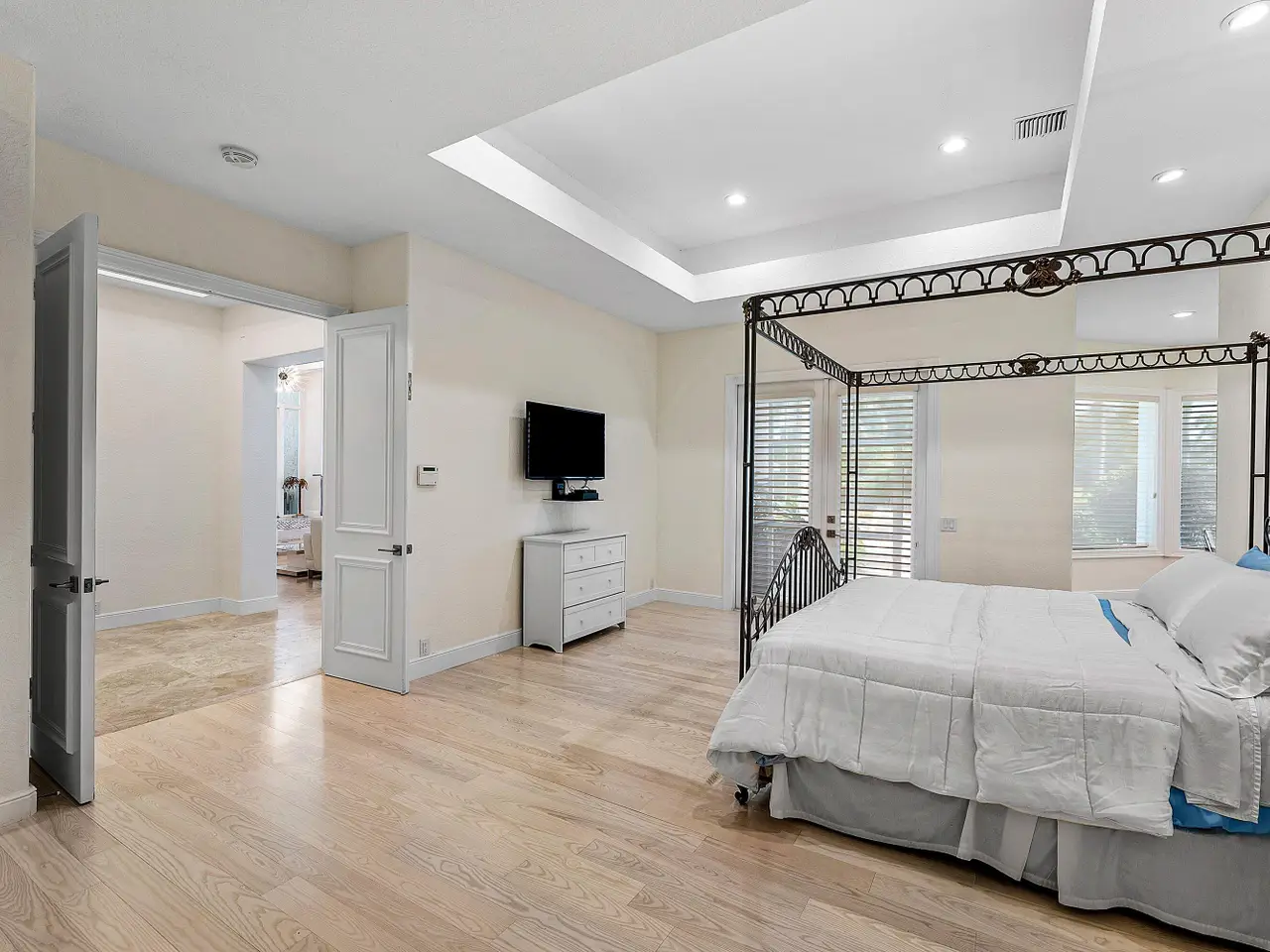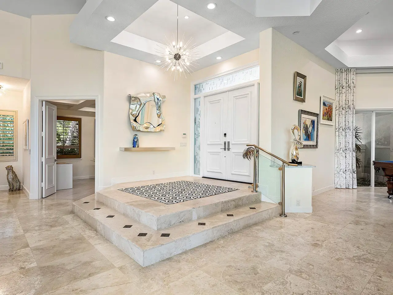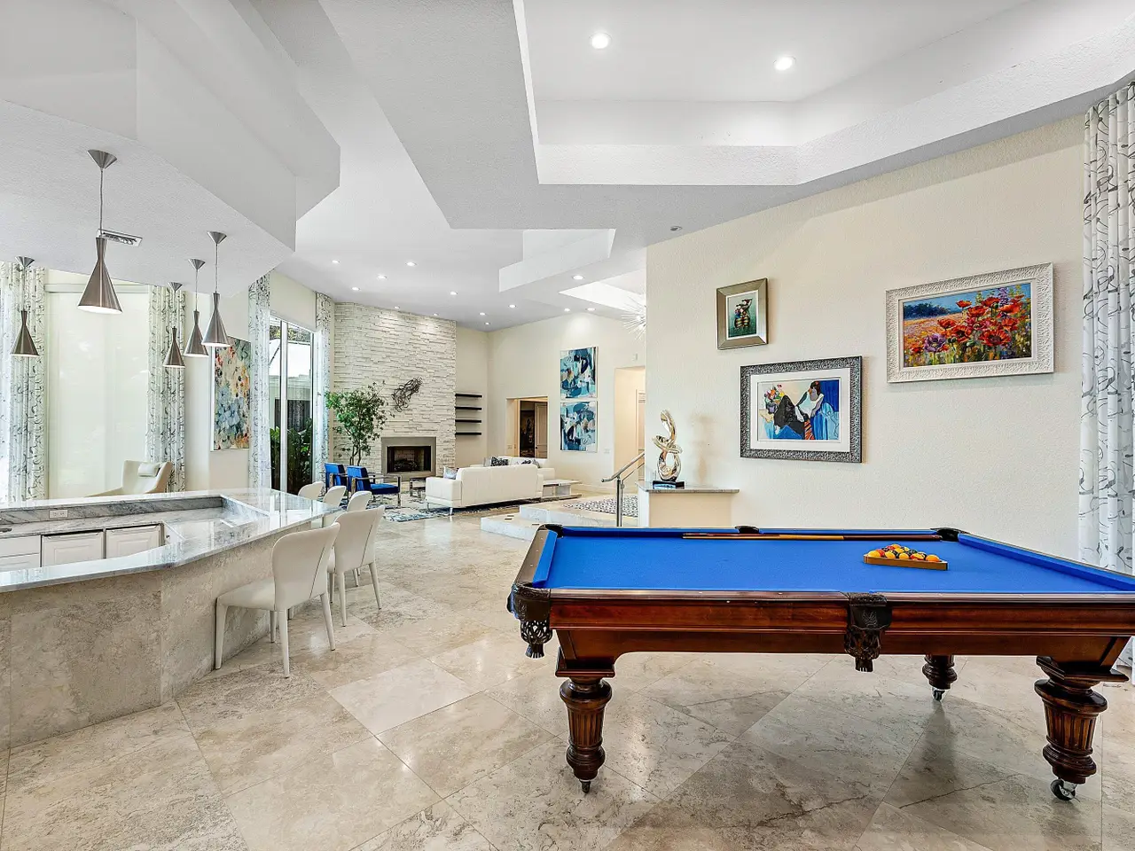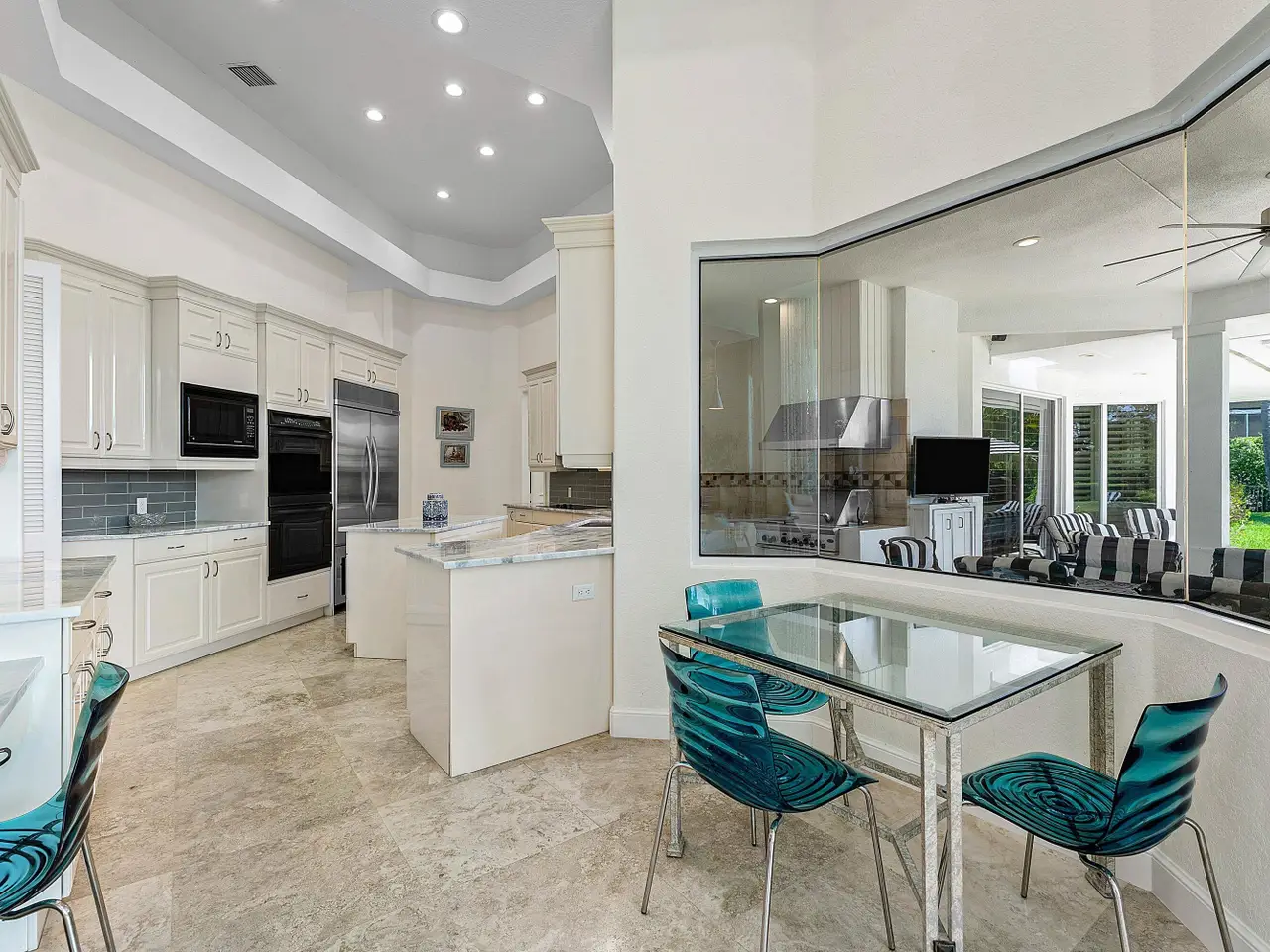 Custom-Built Estate in Seagate Country Club! Nestled in the prestigious Estates Section of desirable Seagate Country Club, this custom-built home spans over 1.33 acres with breathtaking golf course and lake views. Designed for both elegance and comfort, this residence features a split floor plan with 4 spacious bedrooms plus 2 offices. The primary suite, located in its own private wing, offers a luxurious walk-in closet, dual bathrooms, and a cozy sitting area overlooking the pool, golf course, and beyond. Highlights include: Marble and wood flooring throughout. An impressive bar with striking blue marble stone. A chef's kitchen with matching blue marble, custom cabinetry, walk-in pantry, and a picture window framing the expansive patio & outdoor kitchen.