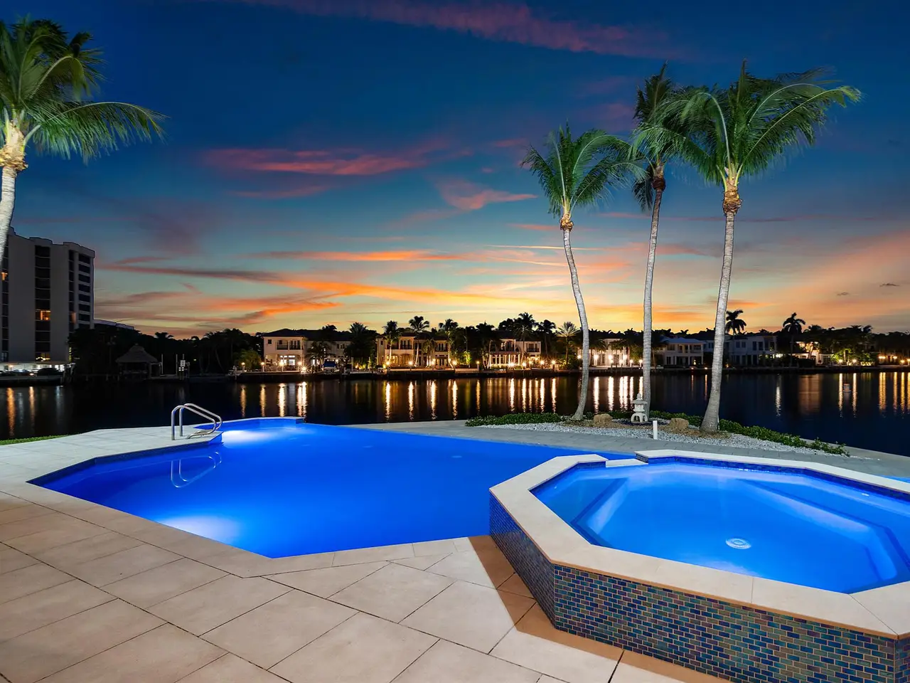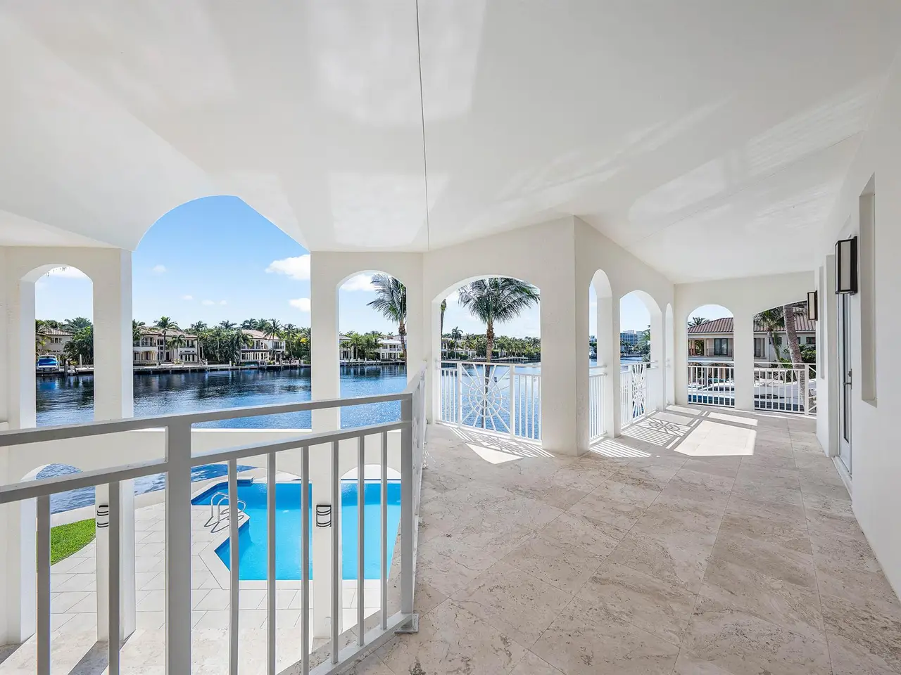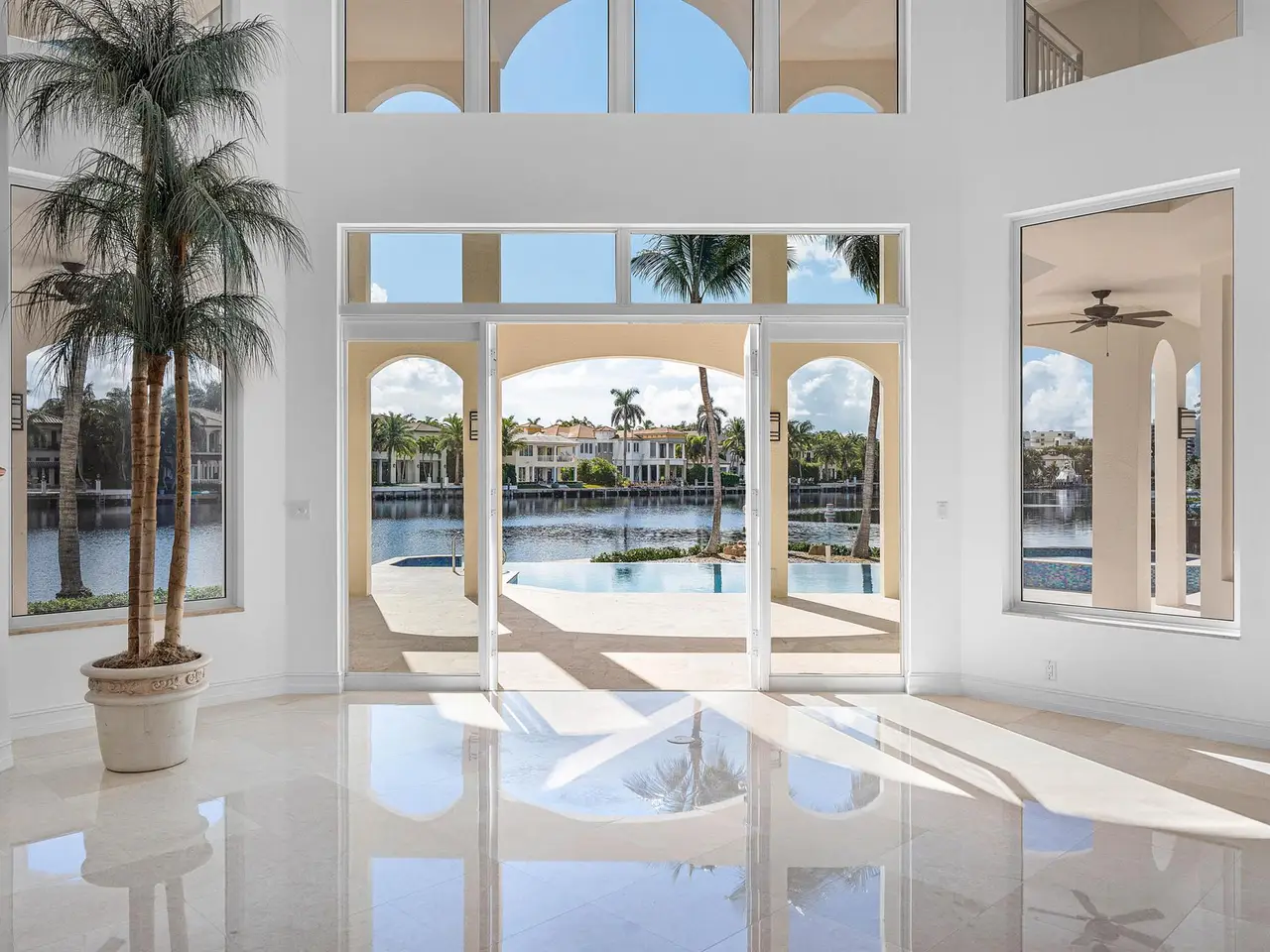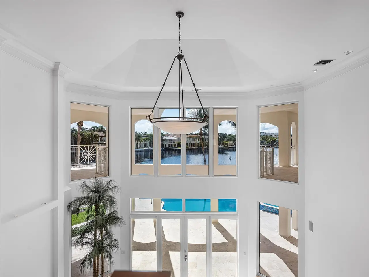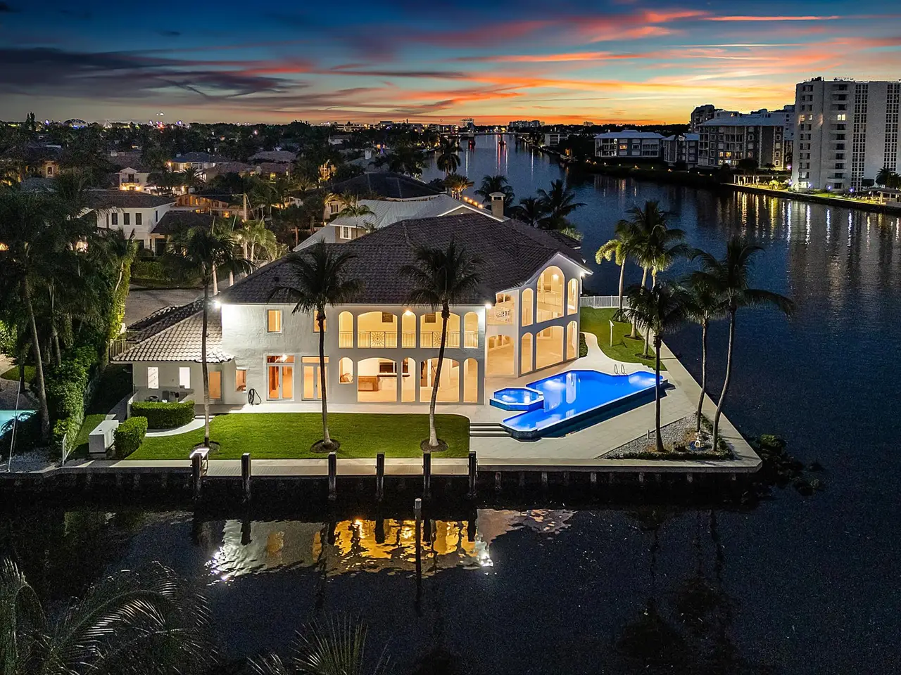Exceptional Waterfront Estate | Intracoastal Point Lot. This extraordinary residence offers over 7,300 ft under air plus an additional 2,000 ft of covered outdoor living space and balconies, creating the perfect blend of indoor-outdoor living. Featuring 5 bedrooms and 9 baths, this estate is thoughtfully designed for both elegance and comfort, with two primary suites, one on each floor. Situated on a coveted point lot in Delray Beach Florida, the home enjoys 126 ft of direct Intracoastal frontage and 125 ft of canal frontage, with direct ocean access and no fixed bridges. A 50 ft dock with electric service and a 100 ft canal width allow for effortless yacht maneuvering and docking. From the moment you enter, you're captivated by panoramic water views from every room. The