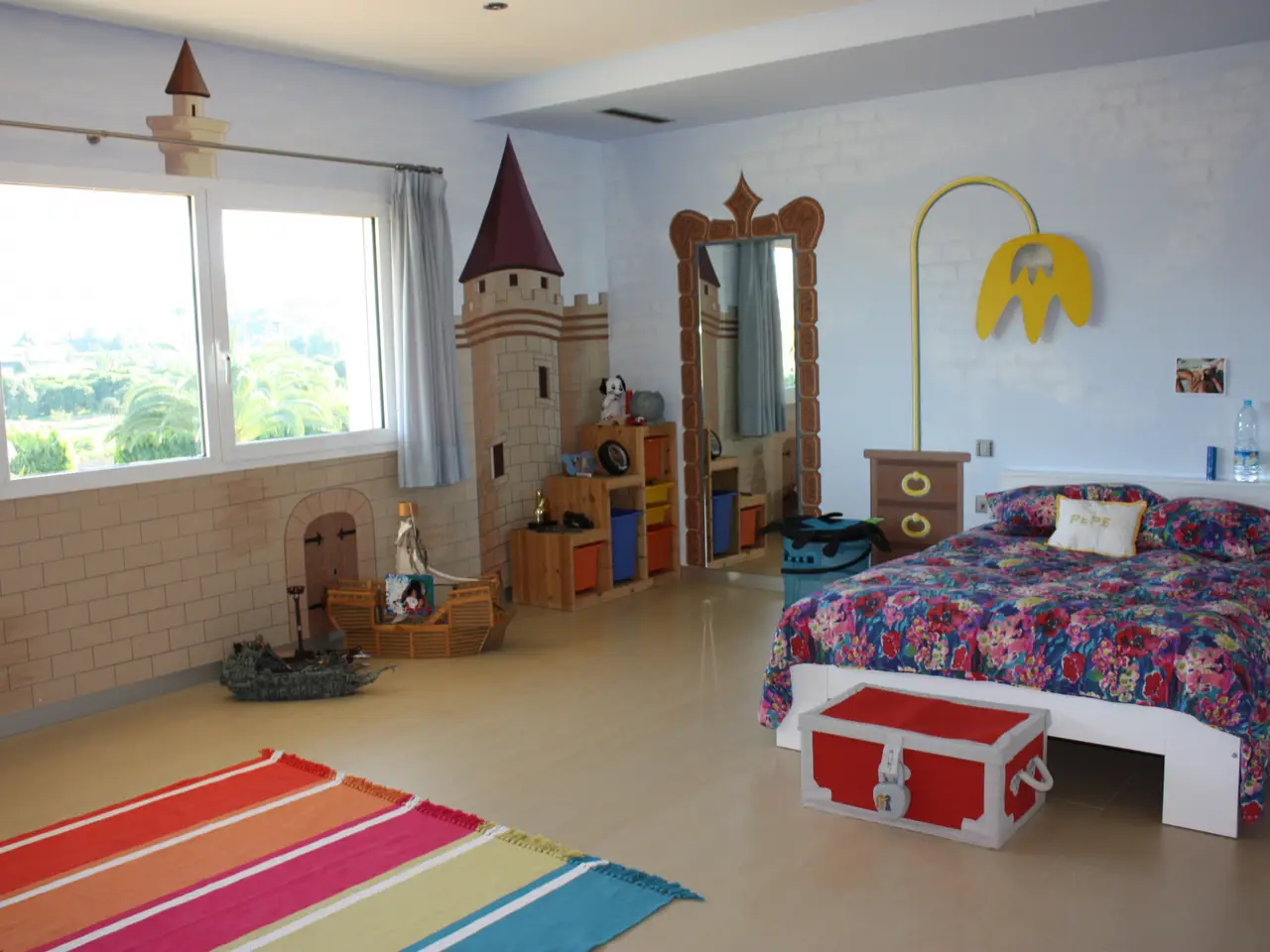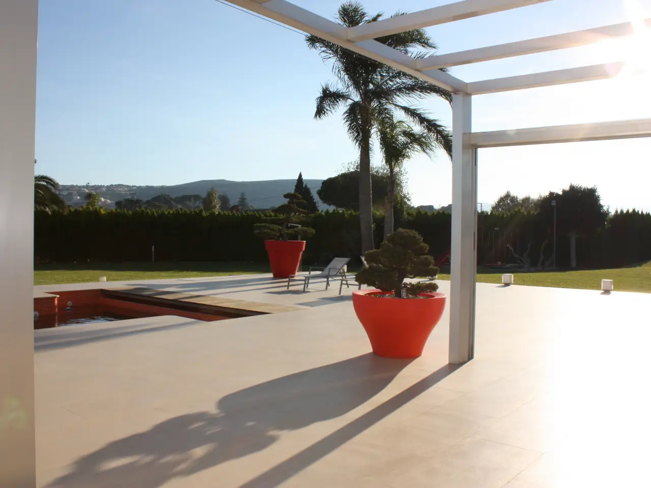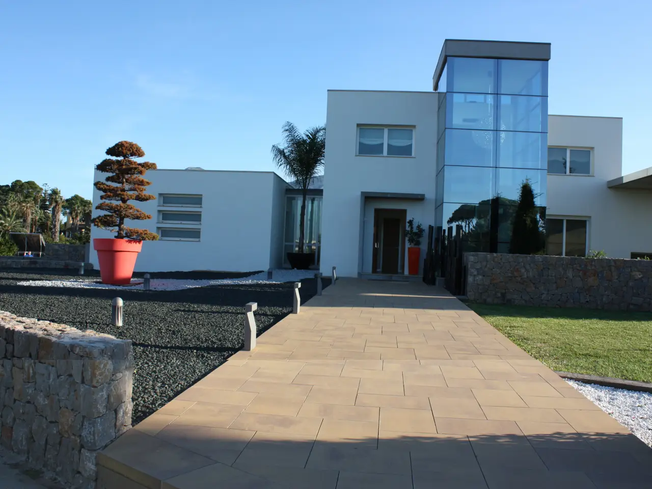 Stunning modern design villa located on a huge plot of 10,000 m2 in the prestigious area of Tosalet, Denia. This impeccable villa built in 2006 was designed incorporating modern architectural features with local traditional materials, such as coughing and slate masonry, mixed with large panoramic windows, ensuring the property a great lighting and offers magnificent views over the large green gardens. The house itself consists of three bedrooms, four bathrooms, a large semi-open floor and a magnificently equipped kitchen with living/dining room, many covered and uncovered terraces and a huge swimming pool. Other extras of the property include a children's play area, a modern roundabout, a huge games room, a separate laundry area, garage with automatic doors, ethnic design features such as a huge glass lobby and a charming wooden cottage for guests. An impressive work of modern art that should not be lost.