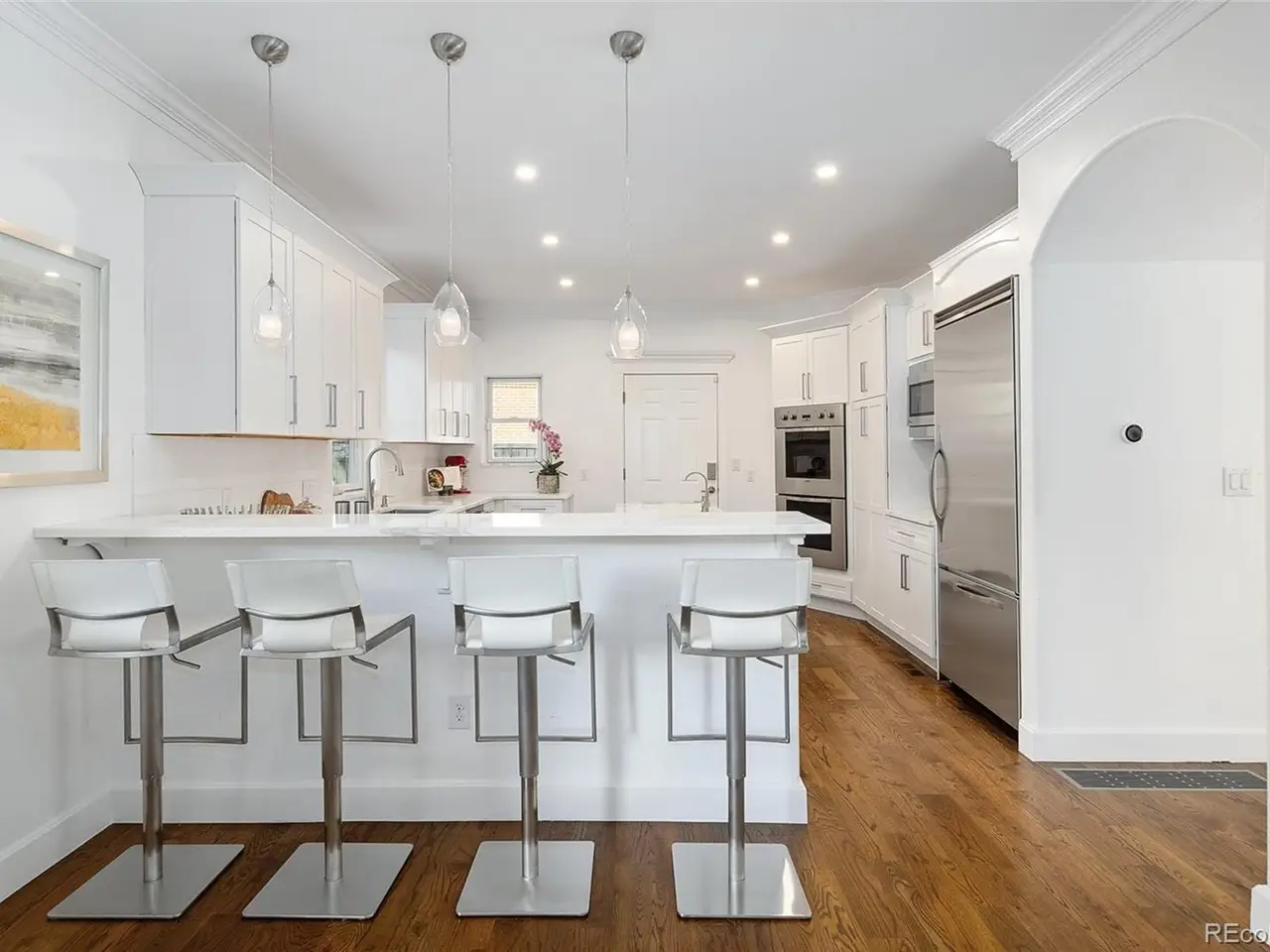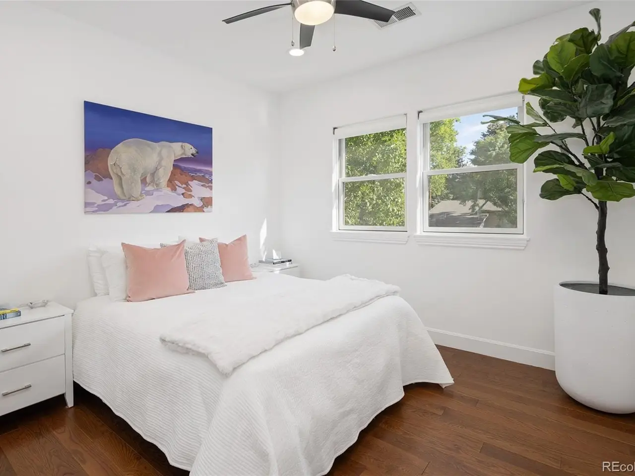 Rebuilt in 2009 with timeless craftsmanship and thoughtful updates, this residence blends elegance with everyday comfort in one of Denver's most desirable neighborhoods. With five bedrooms and an office, it offers value unmatched in the neighborhood. Southern exposure fills each room with natural light, while tree-lined streets, nearby parks, and vibrant dining create the perfect mix of neighborhood charm and city convenience. Inside, new oak floors and an open layout center around a welcoming fireplace, balancing comfort and style. The renovated chef's kitchen features custom cabinetry, quartz countertops, Bosch and Viking appliances, and an island with prep sink and seating - ideal for gatherings. A main floor office with French doors and a spacious main-floor bedroom with en-suite bath make everyday living effortless. Upstairs, the primary suite boasts a cozy fireplace, spa-like bath, and generous walk-in closet, accompanied by two sunlit bedrooms, a full bath, and a convenient laundry room. A finished basement with bedroom, a bath and fireplace provides flexible space for guests, a gym, or media. Outdoors, a tranquil water feature, two flagstone patios, and a firepit combine to create a private backyard oasis. All this in an unbeatable location with preferential waiting list to the Crestmoor Swim & Tennis Club. New furnace and A/C for main floor & basement installed 2022. New furnace & A/C for upstairs installed 2020.