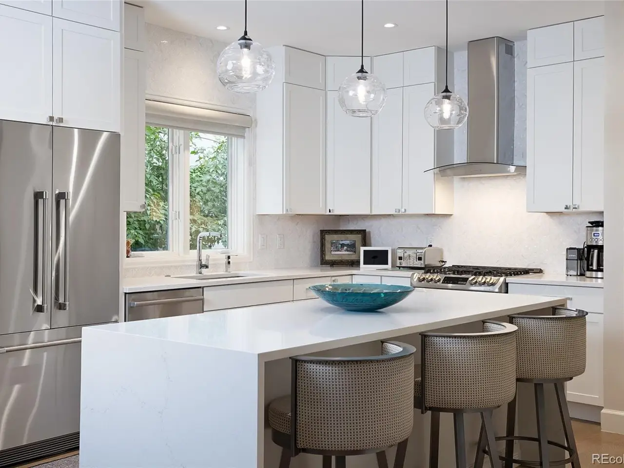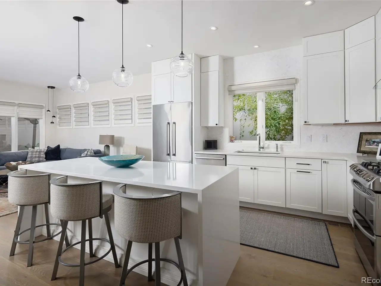 Perfectly situated in the heart of Cherry Creek North, this completely renovated townhome combines sophisticated design with thoughtful updates inside and out. Sun-drenched open living spaces flow seamlessly into a beautifully refreshed kitchen, showcasing a 2022 facelift with a striking waterfall island, new backsplash, and stylish pendant lighting. The inviting main level opens to a private stone patio, enhanced with newly added stained wood walls (2023) - creating a serene retreat for both entertaining and relaxation.The upper level boasts a luxurious primary suite with vaulted ceilings, a Romeo and Juliet balcony, spa-like bathroom with herringbone marble tile, and a spacious walk-in closet. A second bedroom with oversized windows, a full bathroom, and a convenient upstairs laundry complete this level.The fully finished lower level offers flexibility with a generous entertainment area, a bathroom and a private third bedroom which is ideal for guests, a home office, or gym.This home has been meticulously maintained with numerous recent improvements: a new air conditioner (2022), added drywall, insulation, and cabinetry in the garage (2022), a new garage door (2023), a new hot water heater (2024), and fresh exterior paint (2024).Just a stone's throw away from the best dining, shopping, and amenities Cherry Creek North has to offer, this home pairs modern luxury with everyday conveniencedelivering the perfect lifestyle in one of Denver's most coveted neighborhoods.