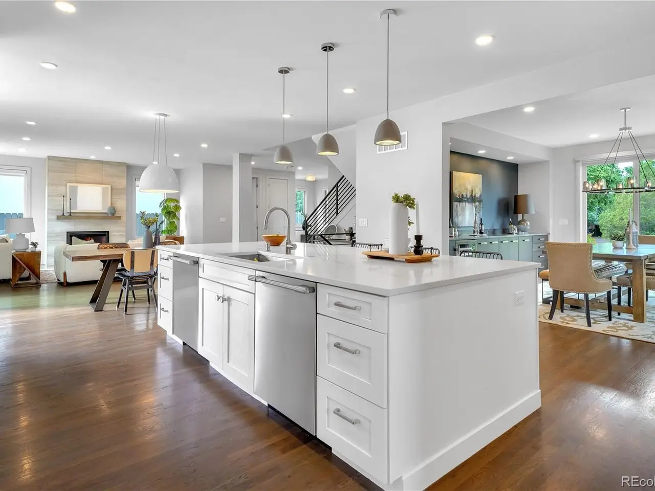 Custom-built in 2019, this home features a light-filled open-concept main floor perfect for everyday living and entertaining. The expansive living room is flooded with natural light and connects seamlessly to a casual dining area and gourmet kitchen. Sliding glass doors open to a covered outdoor living space with a built-in gas fireplace, ideal for year-round entertaining. The kitchen features a massive center island, professional-grade stainless steel appliances, custom cabinetry, quartz countertops, and a walk-in pantry. The kitchen also flows seamlessly into the formal dining room, which includes a built-in buffet and wine refrigerator, perfect for hosting and entertaining. A dedicated home office with a fireplace and private patio completes the main floor. Upstairs, the primary suite is a true retreat, with a private balcony, fireplace, a spa-style marble bathroom with a soaking tub, dual vanities, Juliet balcony, and a custom-designed spacious walk-in closet. Two additional upstairs bedrooms each offer en-suite bathrooms and walk-in closets, and the second-floor laundry room adds everyday convenience. The fully finished lower level features a large family room with a wet bar, two conforming bedrooms, a spacious shared bathroom with dual sinks, and ample storage throughout. Additional sought-after features include a three-car garage, mudroom, professional landscaping, and luxury finishes at every turn. Located just a few blocks from the High Line Canal Trail, Eisenhower Park and Rec Center, Happy Canyon Shopping Center, and Wellshire Golf Course, with convenient access to light rail, I-25, and top-rated schools, this home offers the perfect combination of lifestyle and location.