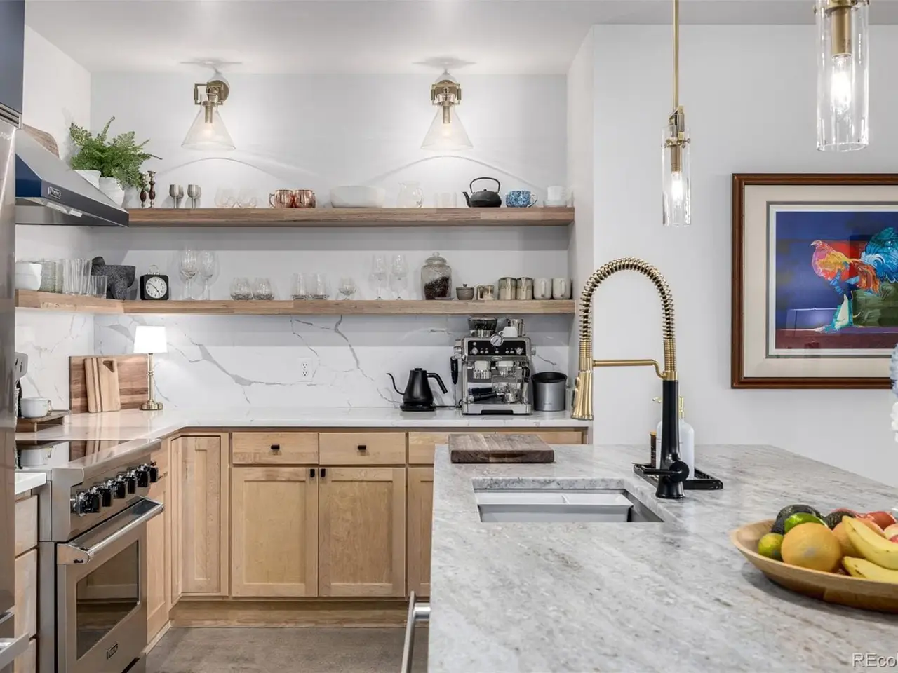 Completely Remodeled Luxe Penthouse Living with Sweeping Mountain Views a must see! Welcome to Unit 602 at the Greenhouse Residences, a fully remodeled 2 bed, 2 bath penthouse corner unit offering unobstructed mountain views and two expansive west-facing balconies. This one-of-a-kind home is perched atop one of Denver’s most sought-after addresses, just moments from Cherry Creek's world-class shopping and dining, with effortless access to Colorado Boulevard and I-25. From the moment you step inside, an abundance of west-facing windows flood the space with natural light, framing panoramic views of Colorados iconic Front Range. The luxe kitchen, remodeled in 2023, boasts high-end Viking appliances, quartz counters and backsplash, attractive open-concept white oak shelving, and a statement leathered granite waterfall island that sets the stage for elevated entertaining. The adjoining living room flows seamlessly on either side to both balconies, creating indoor-outdoor experiences perfect for al fresco dining, sunset cocktails, or quiet mornings above the tree line. The primary suite is a true retreat with private balcony access, a custom walk-in closet, and a spa-inspired remodeled bathroom featuring dual vanities and premium Kohler fixtures. A spacious second bedroom, also with custom closet shelving, and beautifully remodeled 3/4 bath provide versatility for guests or a home office. A formal dining area with oversized wine fridge completes the thoughtful floorplan, designed for both intimate evenings and gatherings that impress. As a resident of the Greenhouse Residences, you’ll enjoy amenities including a fitness center, business lounge, bike storage, and curated common areas that artfully blend indoor and outdoor living - all with a comparatively low HOA fee for the area. If you’ve been searching for a luxury penthouse in Denver with mountain views, private balconies, and proximity to Cherry Creek, #602 delivers an unmatched lifestyle.