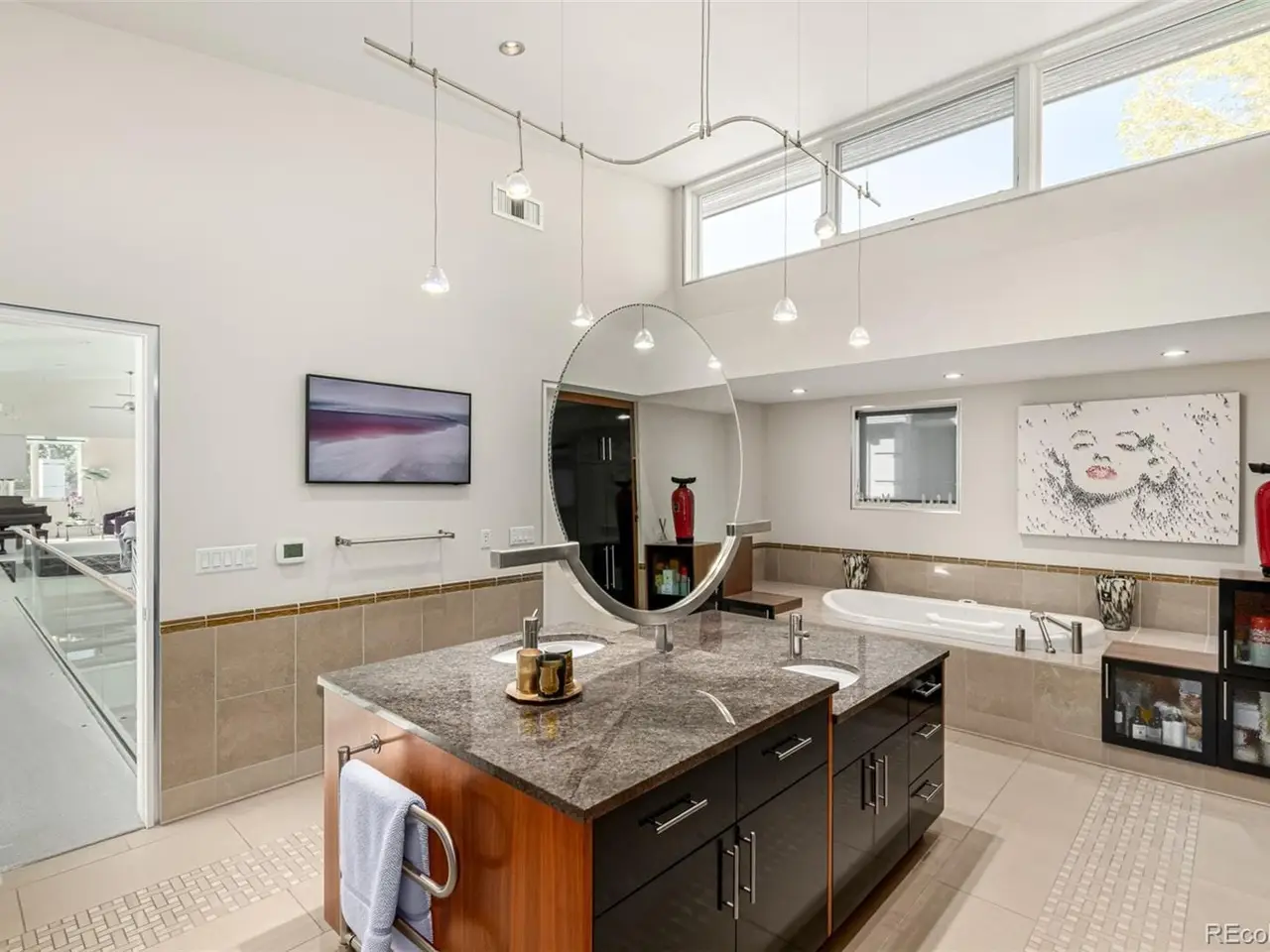 This modern Cherry Creek masterpiece is a true work of art. Sleek, sophisticated and contemporary styling pairs with extraordinary design and exceptional craftsmanship. Including a very rare walk-out level, this home showcases a dramatic entrance, soaring 20-foot ceilings that flows to the great room with a three-story sunny south facing curtain wall. This open-concept layout seamlessly connects the great room anchored by a striking fireplace, honed slate flooring and exquisite finishes. At the heart of the home is a state-of-the-art Bulthaup kitchen, featuring a spacious center island, custom cabinetry, adjoining pantry, kitchen planning desk and room for casual dining. The west facing terrace, has heaters, automatic sunshade, built-in grill and ample space for outdoor dining and seating. Additionally on the main level are two guest bedrooms with en-suite baths, guest powder room and stylish home office with cozy fireplace and museum style glass display shelving. A modern style glass elevator offers access to all three levels. The upper-level luxurious primary retreat includes a sitting area, private covered balcony with mountain views and glass fire tube fireplace. The spa-inspired 7-piece bath with enclosed toilet & bidet, infra-red sauna, jetted tub, steam shower, sink island, custom walk-in closet, and dedicated laundry. The walk-out lower level offers flexible living with glass wall sun-filled recreation rooms with side yard access, gym/4th bedroom with lock off closet & glass wall and a game room/5th bedroom with armoire storage. There is a three-quarter bath, second laundry room, ample storage & utility room. The two-car garage also accesses this level. Nice extras include a backup Generac Generator & exterior snow melt system. Located just blocks from the vibrant heart of Cherry Creek, this one-of-a-kind property is an iconic expression of modern Denver luxurydesigned for comfort, style, and spectacular living.