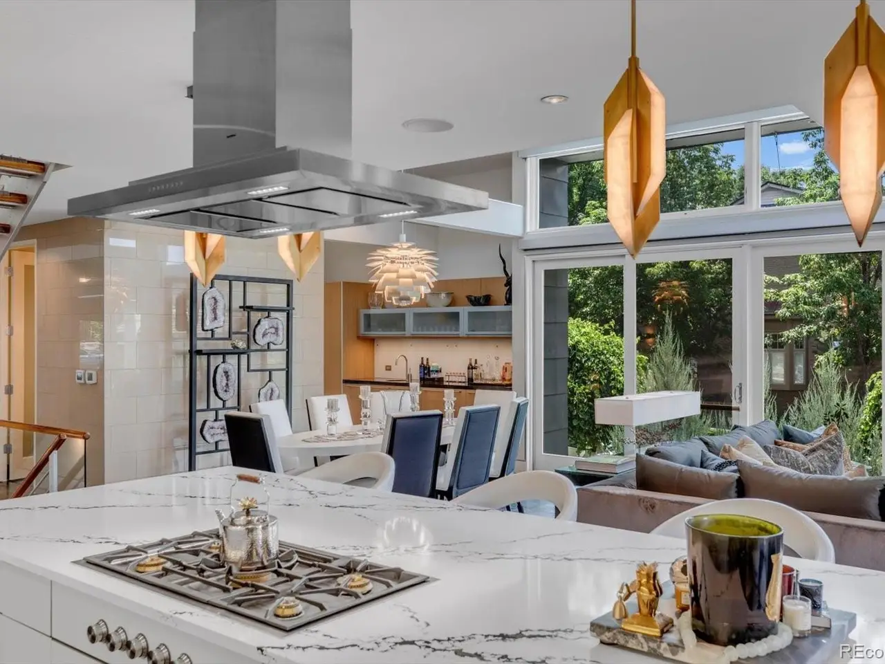 This modern Cherry Creek masterpiece is a true work of art. Sleek, sophisticated and contemporary styling pairs with extraordinary design and exceptional craftsmanship. The home showcases a dramatic entrance, soaring 20-foot ceilings that flows to the great room with a three-story sunny south facing curtain wall. This open-concept layout seamlessly connects the great room anchored by a striking fireplace, honed slate flooring and exquisite finishes. At the heart of the home is a state-of-the-art Bulthaup kitchen, featuring a spacious center island, custom cabinetry, adjoining pantry, kitchen planning desk and room for casual dining. The west facing terrace, has heaters, automatic sunshade, built-in grill and ample space for outdoor dining and seating. Additionally on the main level are two guest bedrooms with en-suite baths, guest powder room and stylish home office with cozy fireplace and museum style glass display shelving. A modern style glass elevator offers access to all three levels. The upper-level luxurious primary retreat includes a sitting area, private covered balcony with mountain views and glass fire tube fireplace. The spa-inspired 7-piece bath with enclosed toilet & bidet, infra-red sauna, jetted tub, steam shower, sink island, custom walk-in closet, and dedicated laundry. The RARE walk-out lower level offers flexible living with glass wall sun-filled recreation rooms with side yard access, gym/4th bedroom with lock off closet & glass wall and a game room/5th bedroom with armoire storage. There is a three-quarter bath, second laundry room, ample storage & utility room. The two-car garage also accesses this level. Nice extras include a backup Generac Generator & exterior snow melt system. Located just blocks from the vibrant heart of Cherry Creek, this one-of-a-kind property is an iconic expression of modern Denver luxurydesigned for comfort, style, and spectacular living.