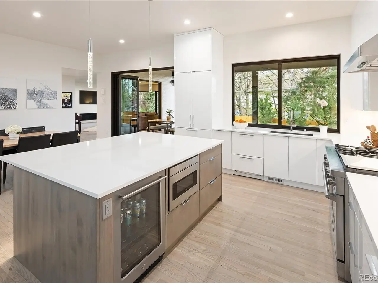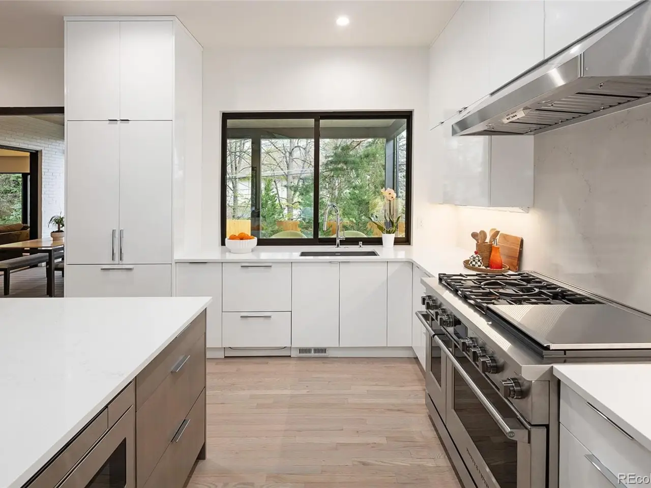 Modern masterpiece in the heart of sought-after Crestmoor neighborhood. The home was designed with a spacious open floor plan to seamlessly connect the front yard to the rear yard via two large folding accordion doors. When opened, the dining room/living space acts as a breezeway, allowing for effortless flow through the home. Extensive renovation & addition completed in 2020. Sleek modern kitchen boasts Zonavita custom cabinetry, Pental Quartz countertops, Fisher & Paykel gourmet appliances & large center island. Sunlit stair tower offers all day natural lighting. Main floor family room with gas fireplace. Upper-level features spacious primary suite with 5-piece spa-like bath & open loft area perfect for home gym or office area. Views of Crestmoor Park from the primary suite. Main floor bedroom with en-suite bath that could be converted to primary suite. Two additional main floor bedrooms with a full bath. Light filled lower level with family room, bath & large storage/laundry room. Private backyard oasis offers covered & uncovered deck areas plus Canadian cedar hot tub perfect space for outdoor entertaining. The large lot features mature trees, privacy fence & professional landscaping. Amazing location close to Crestmoor park, Locanda Del Borgo, Park Burger, Petes Market, Lowry Town Center & Boulevard One shops & restaurants. Preferential waiting list for the Crestmoor Swim & Tennis club. Visit www.crestmoor.org for more information. Architecturally designed by AIA Colorado Architect of the Year Tomecek Studios.