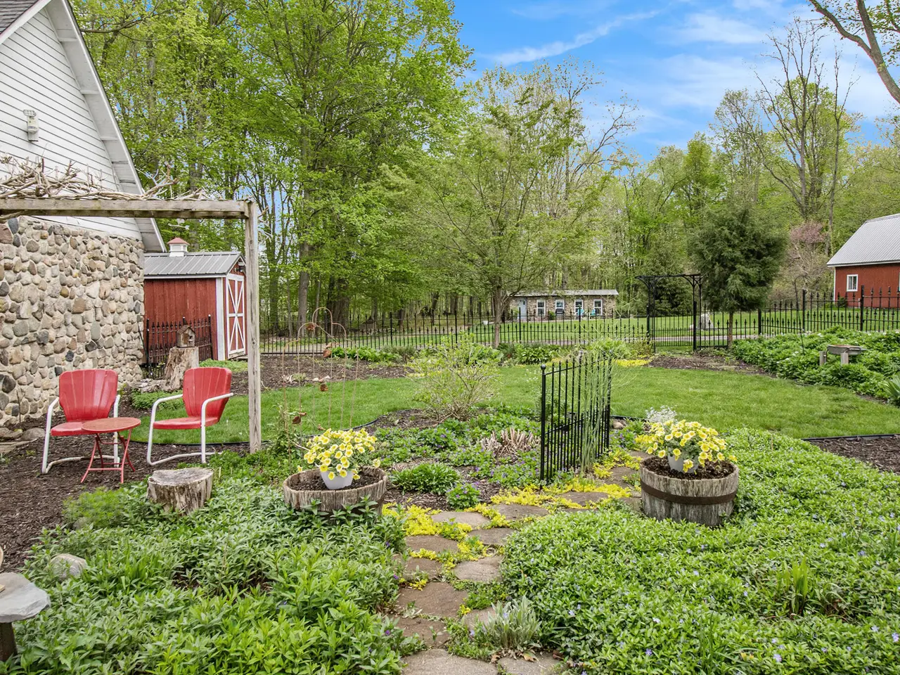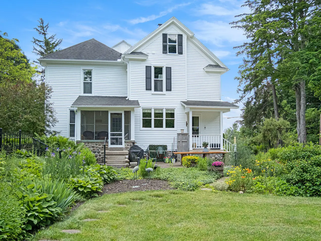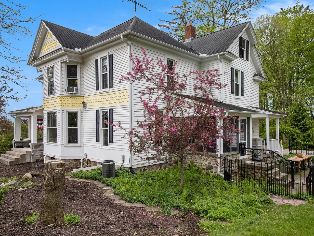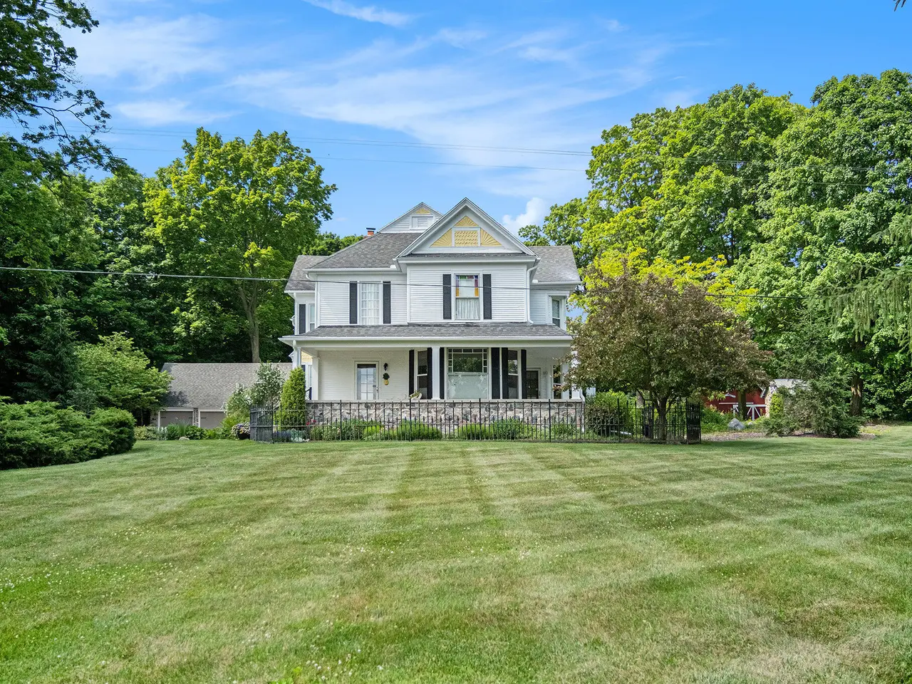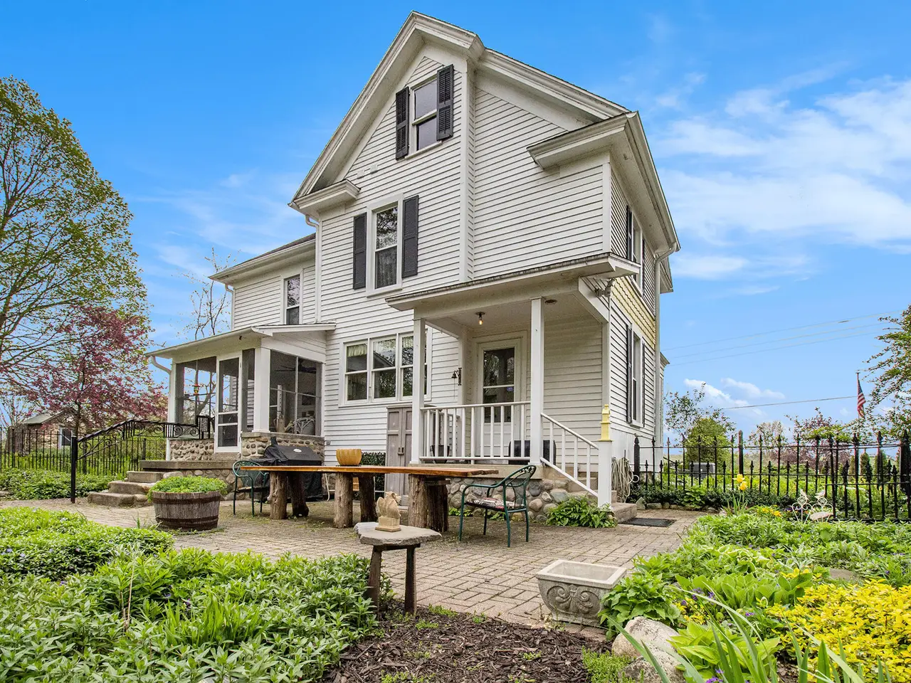 ''Sugar Maple Ridge'': Historical charm blends graciously with new-age comfort and quality in this classic Victorian home on gated 5 acres. *Minutes from Ann Arbor and Brighton and moments to Dexter. *Natural stone wraparound porch. *Spacious foyer with oversized case and base featuring elegant stairwell. *Light-filled living and dining rooms with coved detail. *Beautifully updated kitchen with copper sink, stainless appliances, and custom walnut counters opening onto family room/office with cozy gas fireplace. *Upstairs featuring 4 spacious bedrooms, 2 of which with original pine plank floors revealed, and 2 updated full baths with laundry. *Screen porch opening onto brick patio in secluded fenced back yard with garden house.*Stone 3 car garage. *2800 sq. ft. heated 5 car garage/workshop barn with studio apartment. *Fully restored stone outbuilding with half bath. Exterior completely repainted spring 2025.