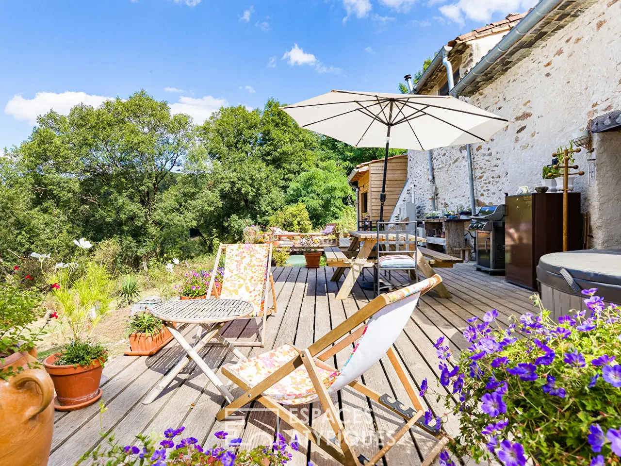 A haven of peace in the heart of the Montagne Noire with 360° panoramic views. For lovers of nature and wide open spaces, discover this exceptional estate nestled at an altitude of 650 m, in a small, unspoiled hamlet overlooking the Tarn Valley. The accommodation was completely renovated between 2018 and 2024 using eco-friendly materials. It offers a unique setting where well-being, comfort, and contemplation blend harmoniously. On a 3 hectare wooded plot, this place with a preserved ecosystem houses:- A renovated farm and barn (298 sqm of living space) divided into 3 independent dwellings 90 sqm of interior annexes- A natural ecological pond (approx. 11 mx 5 m) with an aquatic plant filtration area, clear water and chemical-free swimming- A diversified orchard, a generous vegetable garden, a maintained undergrowth and a forest- A large barn/garage with a floor for workshop or storage- Three panoramic terraces totaling nearly 138 sqm. Inside:- 6 bedrooms, including a 60 sqm loft suite with open bathroom and breathtaking view- 5 bathrooms and 7 toilets (including 6 independent)- 3 equipped kitchens, 3 living rooms and 3 independent entrances (with the possibility of combining two dwellings to create a large complex of 230 sqm)- Office dedicated to wellness sessions, linen room, technical room. Heating by pump heat pump (installation 2021), spring water, rainwater recovery system. A turnkey project: Ideal for a large family, a real estate company or a professional activity, this estate is currently operated as a wellness and rejuvenation center. It is offered furnished in its reception areas, with the website, its excellent SEO and a loyal clientele. A rare place, where every detail has been thought out to live in harmony with nature. A 360° panorama, a healthy and preserved environment, and quality services. A privileged location: 15 min from Dourgne and its shops 30 min from major cultural and natural sites (Soreze, Revel, Lac du Lampy, En Calcat Abbey, etc.)1h15 from the Mediterranean and 2h15 from Spain Castres-Mazamet Airport: 33 min (daily lines to Paris)Carcassonne Airport: 50 min Toulouse Airport: 1h25ENERGY CLASS: C / CLIMATE CLASS: A Estimated average amount of annual energy expenditure for standard use, based on 2021 energy prices: between 4,040 euros and 5,520 euros. Information on the risks to which this property is exposed is available on the Georisques website: http://www.georisques.gouv.frREF. 12246Additional information* 10 rooms* 6 bedrooms* Floor : 2* 2 floors in the building* Outdoor space : 29078 SQM* Property tax : 1 587 €Energy Performance Certificate Primary energy consumptionc : 156 kWh/m2.yearHigh performance housing*A*B*156kWh/m2.year5*kg CO2/m2.yearC*D*E*F*G Extremely poor housing performance* Of which greenhouse gas emissionsa : 5 kg CO2/m2.yearLow CO2 emissions*5kg CO2/m2.yearA*B*C*D*E*F*G Very high CO2 emissions Agency fees The fees include VAT and are payable by the vendor Mediator Mediation Franchise-Consommateurswww.mediation-franchise.com29 Boulevard de Courcelles 75008 ParisInformation on the risks to which this property is exposed is available on the Geohazards website : www.georisques.gouv.fr