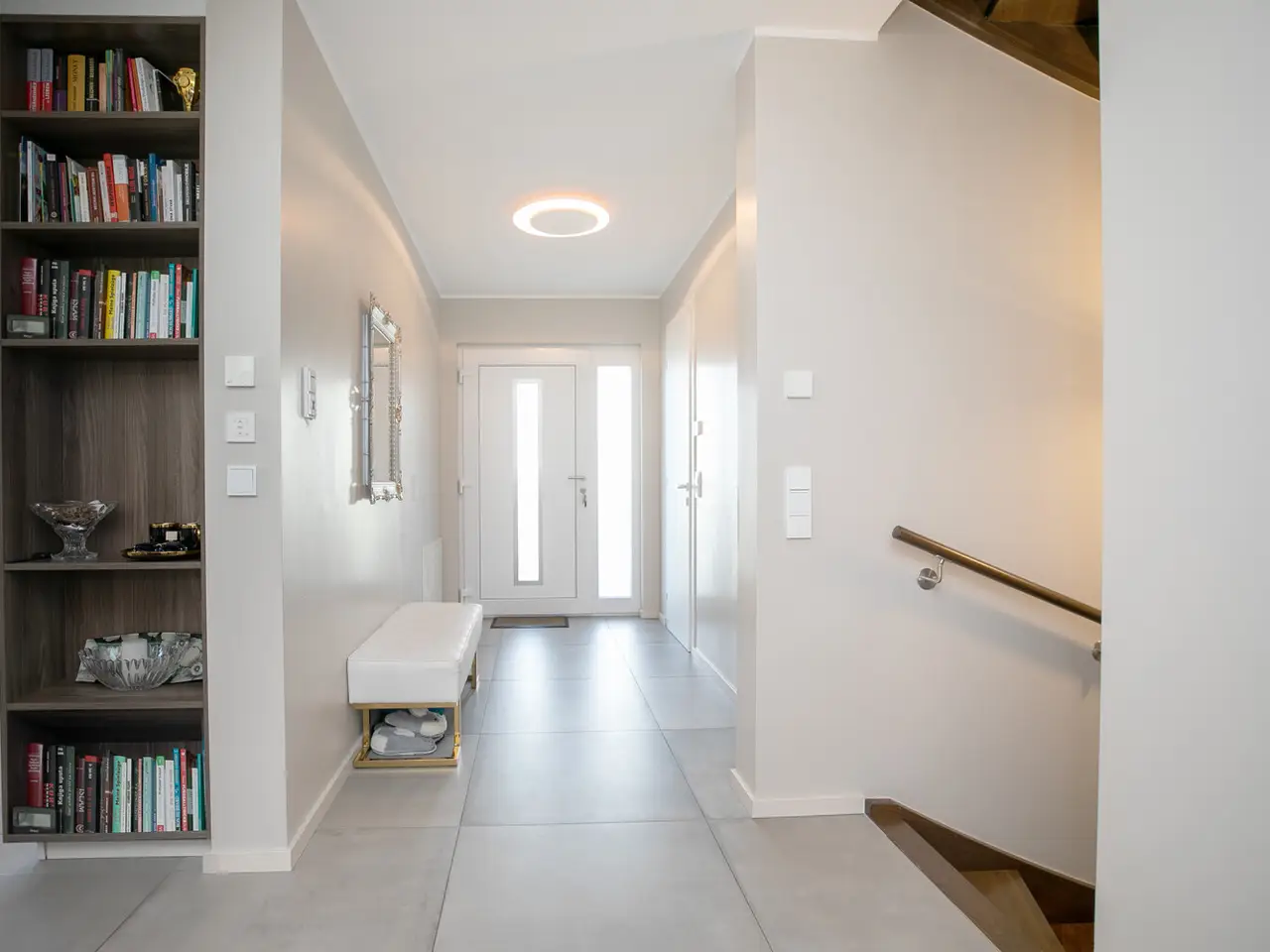 This modern detached house from 2016 is located in a quiet and family-friendly development area in Götzenhain. With a living area of approx. 185 m², it offers generous space for the whole family and impresses with its high-quality fittings, well thought-out floor plans and a pleasant living atmosphere with plenty of light and space to live. An open, bright living and dining area awaits you on the first floor, into which the high-quality fitted kitchen is harmoniously integrated. Cooking, eating and living merge seamlessly here and create a communicative center of the house. The living area is slightly separated and offers a cozy retreat with direct access to the sunny terrace and the south-facing garden - ideal for relaxing hours outdoors. There are three well-designed rooms on the upper floor, which can be used flexibly as children's rooms, guest rooms or home offices. A stylishly designed daylight bathroom with bathtub and separate shower completes this floor. High-quality parquet flooring has been laid in all living areas, giving the house a warm, inviting atmosphere. The converted top floor serves as a private retreat and has a spacious bedroom with an adjoining, custom-made dressing room and a modern shower room. From up here, you can enjoy an impressive distant view, even as far as the Frankfurt skyline on a clear day. An adjoining roof terrace extends the living space outdoors and invites you to linger over the rooftops of Götzenhain. The basement of the house offers plenty of storage space and numerous possible uses - whether as a hobby room, utility room or additional storage space. A large garage and a further outdoor parking space provide convenient and secure parking right next to the house. This house is ideal for families or couples looking for stylish living with a high quality of life. The location in Götzenhain offers a successful mix of tranquillity, a good neighborhood and quick connections to the Rhine-Main area - an ideal home for anyone who wants to live close to the city and yet close to nature.