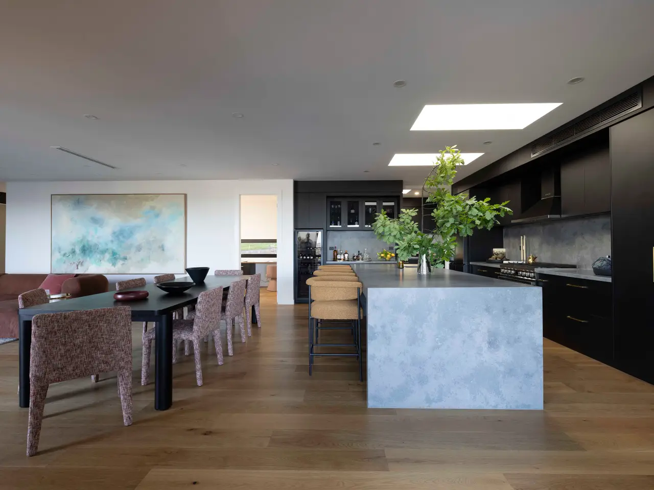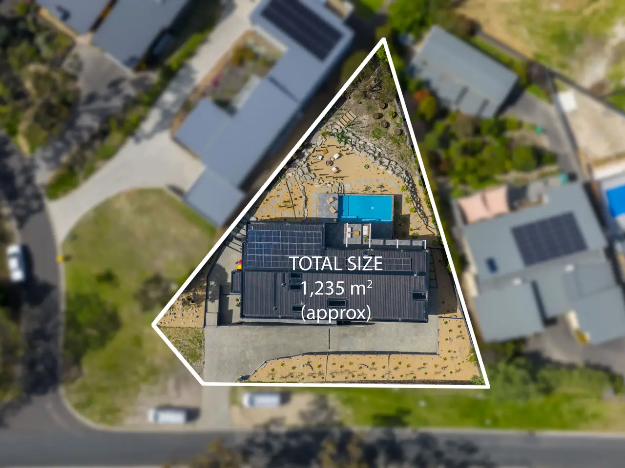 Capturing 180-degree, panoramic views across the coastline to the pristine waters of Port Phillip Bay and beyond, this brand new, architect-designed masterpiece offers more than 60 squares (approx.) of unparalleled luxury in a prized hillside location. Set against the dramatic backdrop of Arthurs Seat State Park, a truly exceptional lifestyle awaits those fortunate enough to secure this incredible property positioned on 1235m2 (approx.) with an 8m x 4m self-cleaning, solar-heated swimming pool and a fire pit area set amongst stunning gardens designed by The Block's Colin Hyett. Evoking sophistication and warmth with premium finishes and exquisite attention to detail throughout, the home boasts a showpiece kitchen with stone benchtops and splashbacks, Smeg appliances plus a large butler's pantry and bar, alongside a vast, ambient living/dining zone anchored by a striking feature wall and wood-burning heater. Designed for indoor/outdoor living, this space flows seamlessly onto a broad balcony with a built-in barbecue area and alfresco / lounge areas that set the scene for sunset drinks, entertaining in style or simple relaxing and enjoying the tranquil surrounds. Enjoy the twinkle of evening lights across the Peninsula from the private master suite which also has balcony access, a generous walk-in robe and a sumptuous ensuite with a bathtub and walk-in shower with a light well. Two additional bathrooms and a powder room are equally well-appointed with floor-to-ceiling tiles, timber accents and brushed brass tapware. Other highlights include an integrated home office and a downstairs second living zone that opens to the pool and outdoor shower with its own entrance and an adjoining bedroom and bathroom, making it ideal for further entertaining or a self-contained teenage / guest retreat. Tinted bronze toughened, double-glazed windows, skylights, two oversized pivot entry doors and electric curtains in the living areas and master suite are quality inclusions along with ducted refrigerated cooling / heating, 15kw solar panels with 24kw batteries, full security system with phone tracking plus a remote double garage, storage room, fruit trees and a vegetable garden. Just minutes to shops, restaurants, cafes, beaches and world-class wineries, hot springs and golf courses, this unique offering is truly one of a kind.