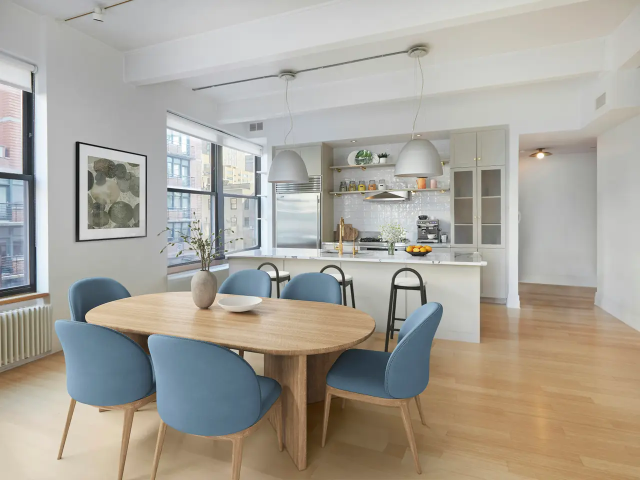 70 Washington Street - 3 Bedroom - Full service loft building in Dumbo. This renovated 1675' corner loft has 11'+ ceilings with huge windows and great light with views North and East. 2 full bedroom plus home office which functions as 3rd bedroom with three full baths is an amazing home in a full service 24-hour concierge building in the heart of Dumbo. Great amenities including new state-of-the-art gym, package room and large beautiful common roof deck. Renovated open kitchen and 3 full bathrooms with separate laundry room with storage and washer/dryer. The open windowed kitchen with fabulous light has Sub-Zero refrigerator, Viking cook-top, Thermador oven, Bosch dishwasher, wine cooler and Dornbracht fixtures. The primary bedroom features an en-suite bath with limestone tiles, a deep-soaking Jacuzzi tub, a separate glass-enclosed shower and a double-sink vanity with custom cabinetry storage below. 2nd bedroom has an en-suite bathroom and full bathroom outside the home office/3rdbedroom. Plenty of storage for strollers, bikes, etc. Oversized closets throughout, central air, bamboo wood floors throughout this spacious sunny home. DUMBO features charming cobblestone streets, Empire Stores, DUMBO market, restaurants, cozy cafes, art galleries, and much more. Proximity to the A/C/F trains, Citi Bike, and the water ferry located in Brooklyn Bridge Park.