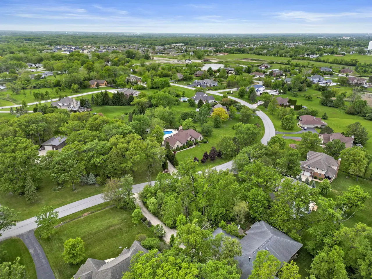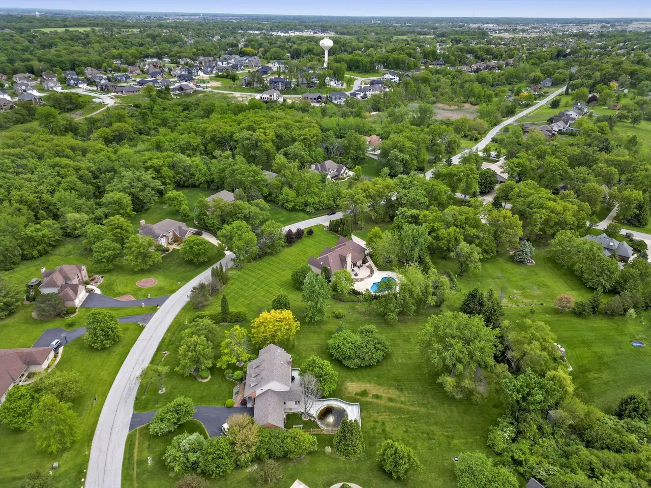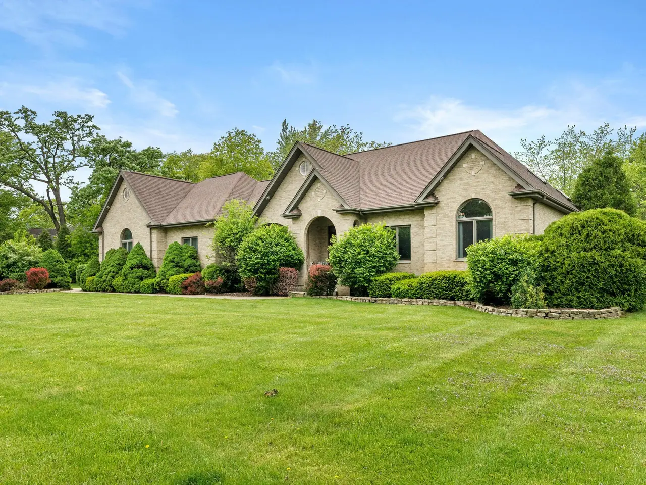 An entertainer's dream comes to life at this Whispering Woods retreat! Set on 1.38 wooded acres, this 4 bed, 4 bath walk-out ranch offers a resort-style lifestyle just minutes from the Illinois border for an easy Chicago commute. The backyard is your private oasis, featuring a heated in-ground pool, professional landscaping, Sonos speakers inside and out, a shed, new fence, and new pool cover-perfect for gatherings or quiet relaxation. Inside, the main level boasts 10' ceilings and cherrywood flooring, a vaulted great room with a dramatic floor-to-ceiling brick fireplace, and a built-in wet bar. The chef's kitchen includes quartz counters, matching backsplash, cherry cabinetry, walk-in pantry, stainless steel appliances, and a Wolf cooktop. A private office with French doors sits just off the entry. The primary suite is a true retreat with heated floors, jetted tub with built-in TV, dual granite vanities, walk-in shower, and oversized walk-in closet. The finished walk-out basement elevates entertaining with a home theater (all media stays), a rec room with tray ceilings and second fireplace, full wet bar with dishwasher and beverage fridge, climate-controlled wine cellar, and a 500-gallon saltwater aquarium. A poker room or potential 4th bedroom with hidden passage and a steam shower bath complete this luxurious space. Additional highlights include a heated 3.5-car garage with epoxy floors, battery backup sump pump, whole-house Generac generator with new battery, in-ground sprinklers, and recent updates to roof, HVAC, and water heater. This is a rare opportunity to own a luxury ranch designed for unforgettable entertaining, resort-style outdoor living, and serene acreage privacy.