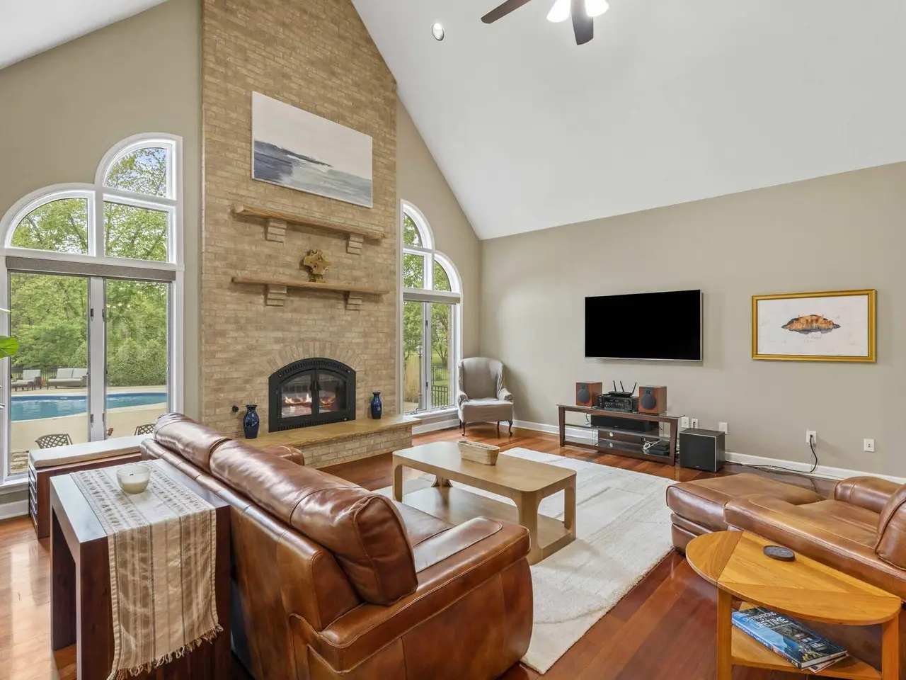 • Floor-to-ceiling brick fireplace