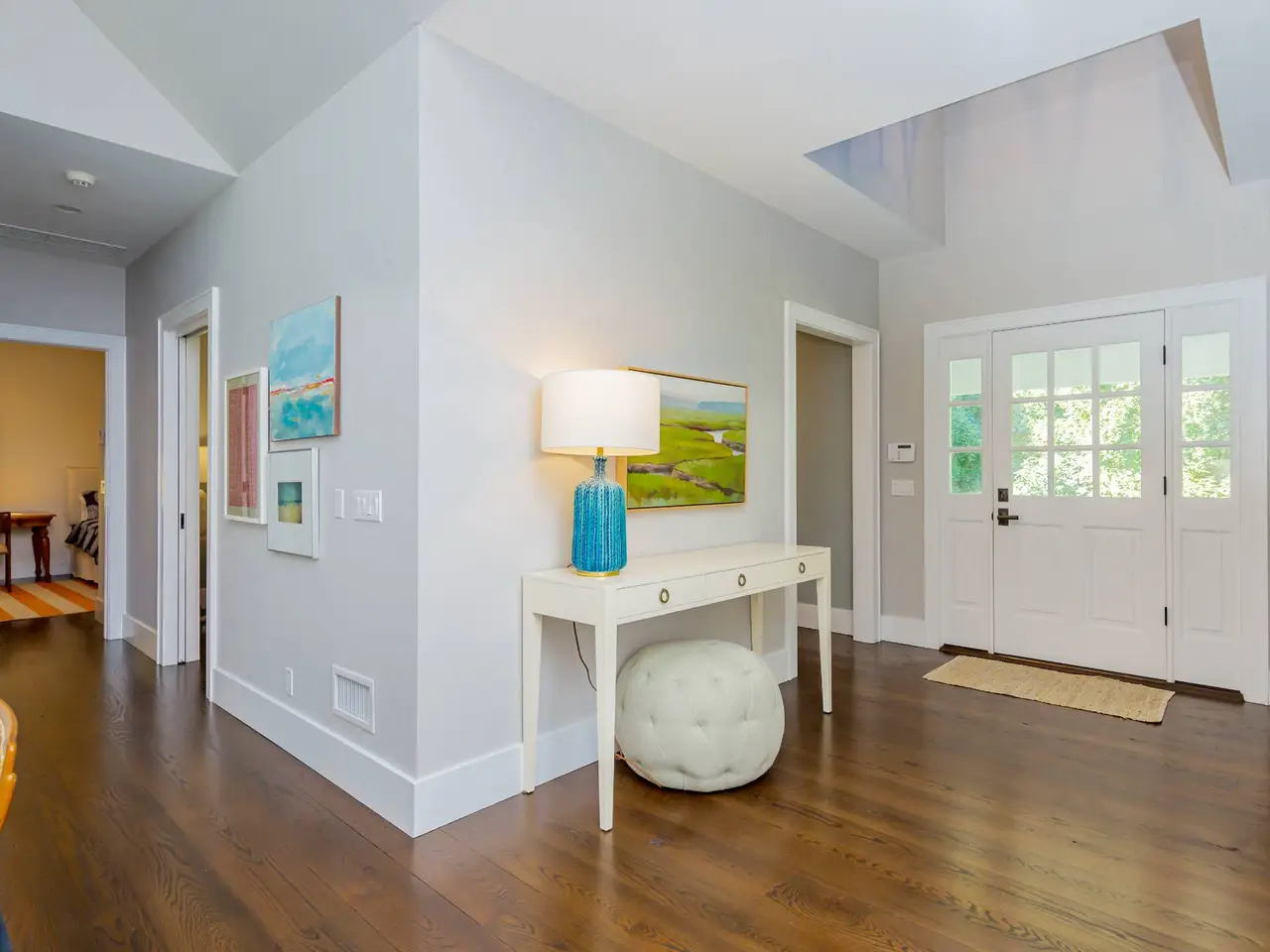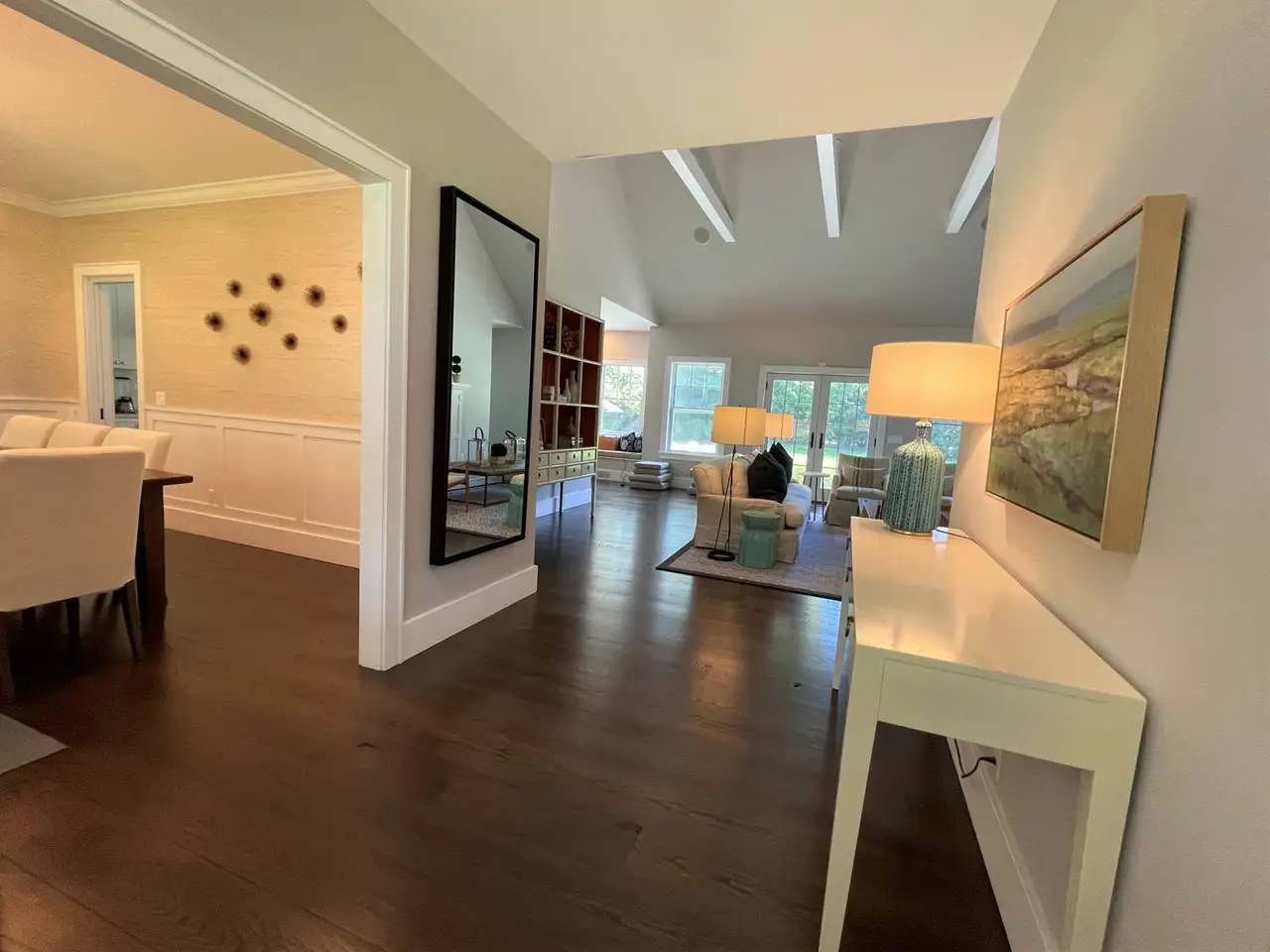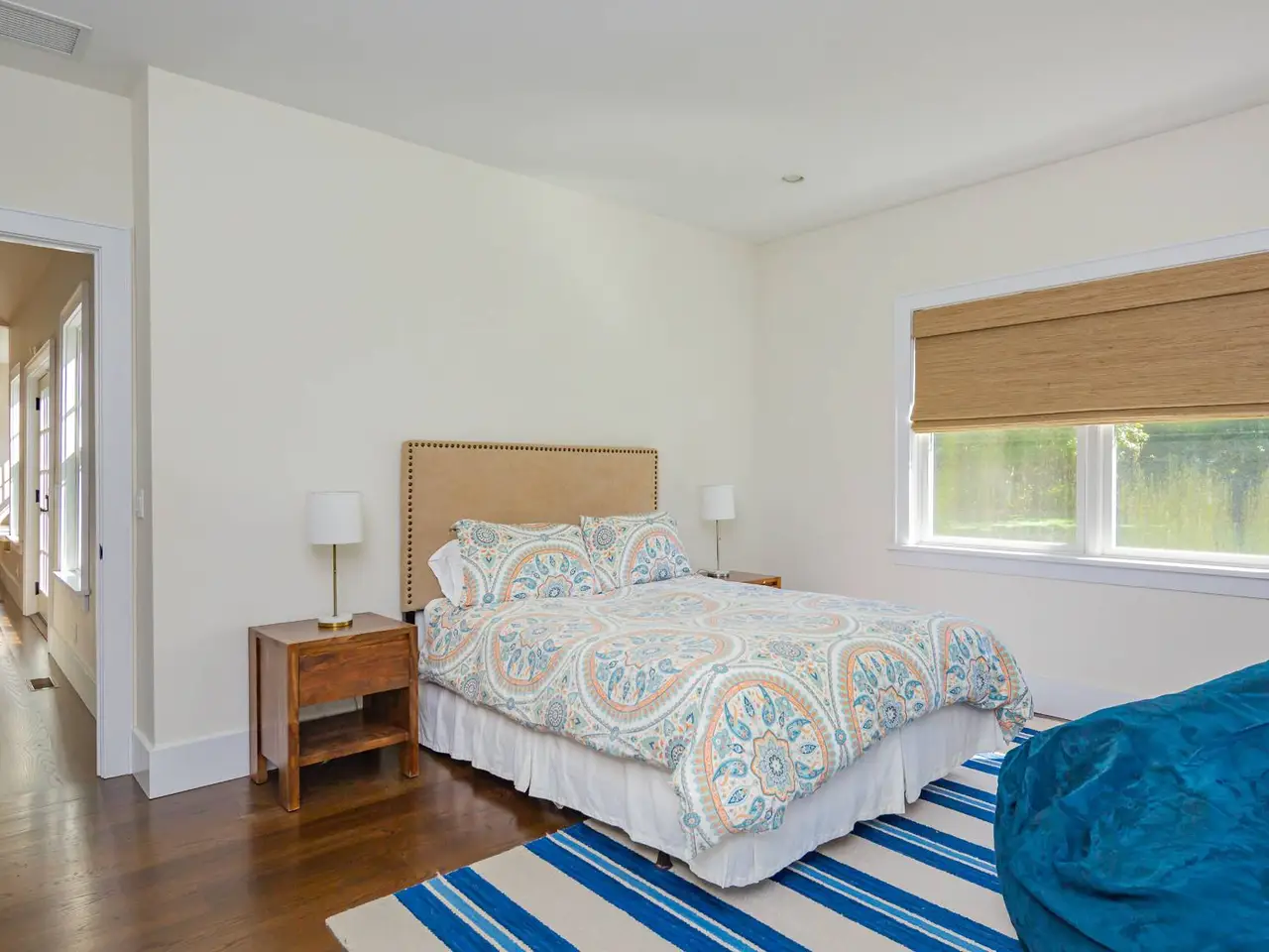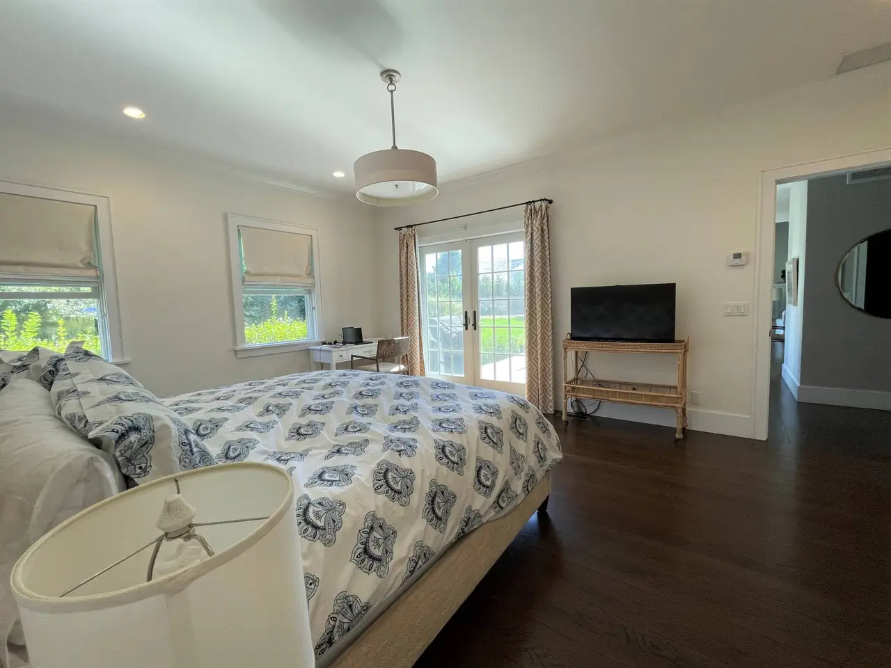 Rental Registration # 21-1,189 - Located within short distance to East Hampton village is this well-kept postmodern home. The home was built in 2013 by a Hampton top notch builder and offers five bedrooms and three and one half bathrooms on just about 3,000 square feet of living space. Upon arrival at the property, you are welcomed by a classic front porch that leads to the entry hall where the high ceiling living room with fireplace overlooks the heated salt water pool and manicured grounds. Additionally, the main floor includes a gourmet kitchen with marble countertops, stainless steel appliances, island, and breakfast nook, formal dining room with paneled wainscoting, den/TV room, powder room, two guest bedrooms, and a Jack-n-Jill bathroom. On the opposite side is the primary suite with walk-in-closet and bath with double stone vanity. The 12-foot lower level is finished with two additional bedrooms, a full bath and rec room. Additional amenities include an outdoor shower, central air-conditioning, a heated pool, and a two-car garage. Come experience the summer of a lifetime.