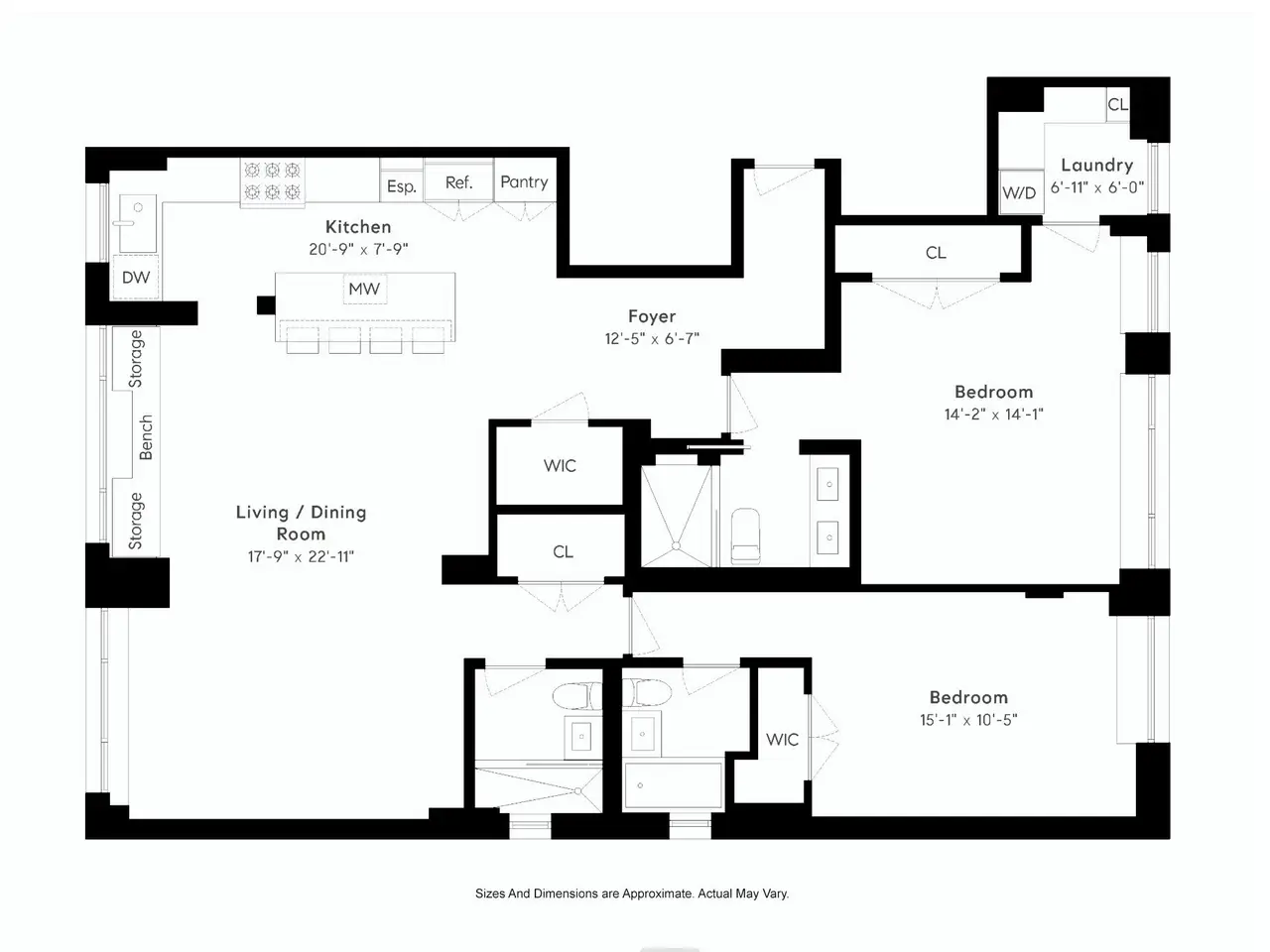 Experience expansive living and refined design in this beautifully renovated two-bedroom, three-bath residence, set within one of the Village's most sought-after full-service co-ops-The St. Mark. This impressive home is the product of a thoughtful transformation from a three-bedroom layout into an airy, open-concept space perfect for both everyday living and entertaining. A formal entry leads into a sweeping great room, where a wall of north-facing windows, a custom window seat, and expansive art walls create a serene and stylish ambiance. The chef's kitchen is a true showpiece, outfitted with sleek Italian Cucine Composit cabinetry, luxurious quartzite countertops and backsplash, and top-of-the-line appliances including a Miele gas range, dishwasher, built-in coffee system, a Sub-Zero French door refrigerator, and a Wolf microwave. A large picture window, The Galley sink, and a ZIP hot/cold/carbonated water system enhance functionality, while a dramatic waterfall island with designer pendant lighting anchors the space. A windowed guest bathroom featuring a soaking tub and shower completes the main living area with sophistication and charm. The exceptional primary suite features a king-sized bedroom with southern exposures, a spacious closet, and a large windowed laundry room with a stacked Miele washer-dryer and abundant built-in storage. The en-suite bath is a spa-like retreat with floor-to-ceiling Calacatta Gold and Bardiglio marble, a custom double walnut vanity, an oversized walk-in rain shower, and a Toto Neorest toilet. The second bedroom suite offers generous closet space and a renovated bathroom with a rain shower. Additional highlights include wide-plank hickory flooring, two walk-in closets, custom PTAC built-ins with added storage, and integrated Sonance speakers throughout the living room, kitchen, and primary suite for elevated comfort and convenience. The St. Mark is a meticulously maintained white-brick co-op. Residents enjoy 24-hour doorman and live-in resident manager service, central laundry, a playroom, storage, bike room, and direct-access on-site parking. Pets, 75% financing, and gifting are permitted with board approval. Please note: pieds- -terre, co signers, and co-purchasing are not allowed. A capital assessment of $289.50/month through December 2025 is for capital funding projects. Situated in one of Manhattan's most dynamic neighborhoods, you'll find world-class dining, shopping, and nightlife nearby. From Michelin-starred restaurants to buzzing caf s and bars, entertainment abounds. Tompkins Square Park, Washington Square Park, and Union Square are all nearby, along with Wegmans, Trader Joe's, Whole Foods, and high-end boutiques. NYU, Cooper Union, and top cultural venues like Webster Hall and Irving Plaza are just minutes away. Transit is a breeze with the N/Q/R/W, 4/5/6, L, PATH, multiple bus routes, and CitiBike stations all within close proximity.