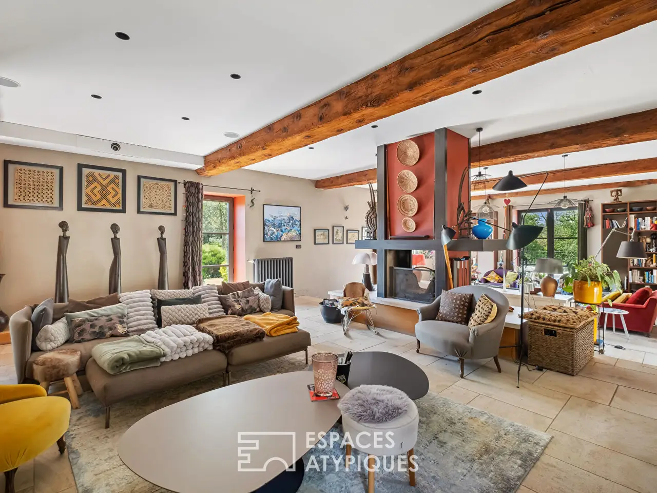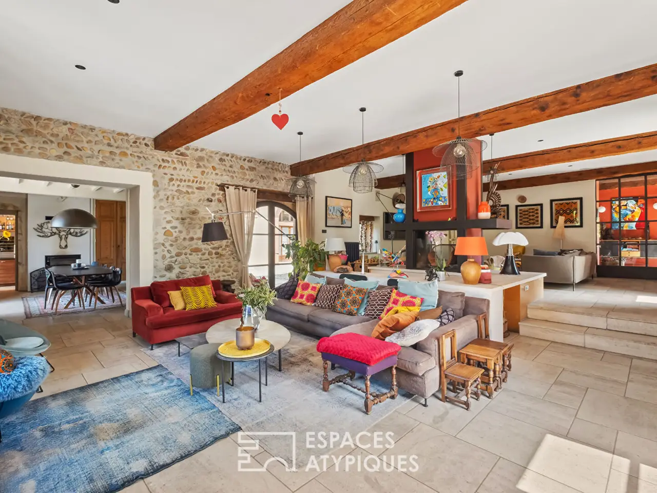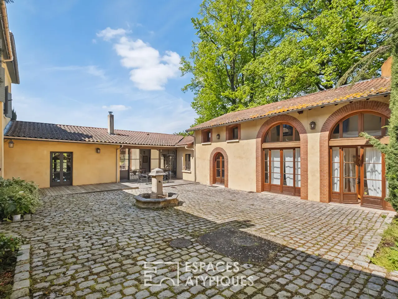 In Écully, in the heart of a green and preserved environment, this former castle outbuilding built in 1850 offers more than 380 sqm of living space. Set on a 1.5 hectare plot of land, 8,000 sqm of which is fenced, the property benefits from a 4,000 sqm landscaped garden, a swimming pool, and a unique atmosphere, combining historic charm and contemporary comfort.