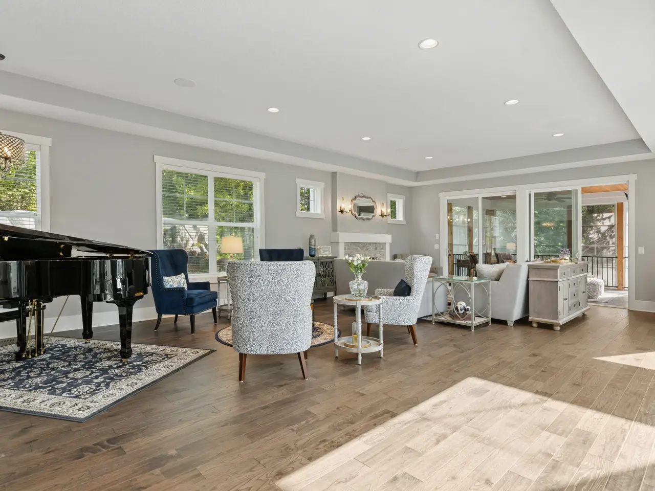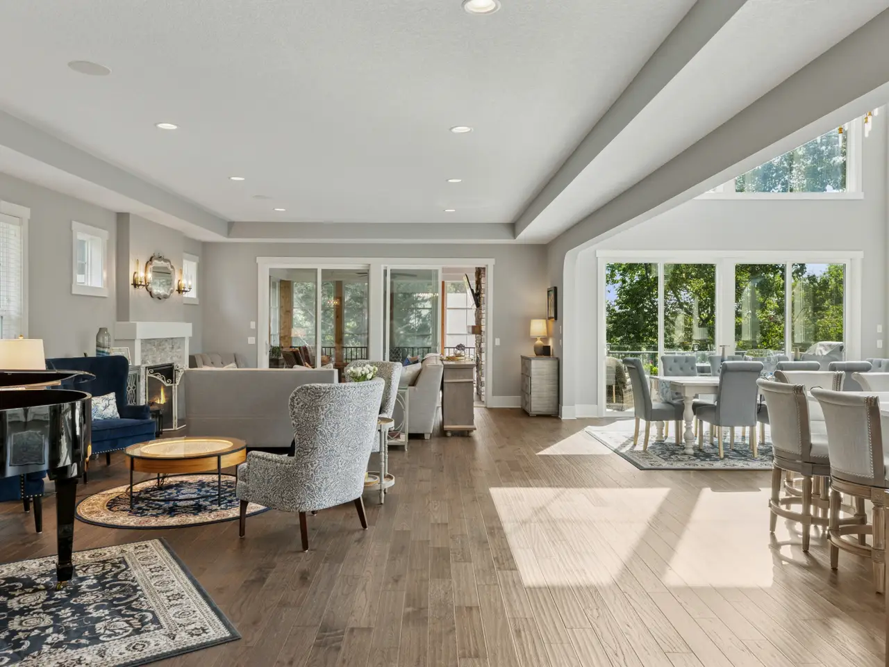 A true standout in the desirable neighborhood of The Enclave at Old Shady Oak. Custom-built and completed in 2019, with precise selections made at every stage, ensuring a home that’s both architecturally striking and thoughtfully tailored for real living. Perched on a prominent corner lot, the residence makes a lasting impression from the moment you arrive – with dramatic landscaping, elegant exterior lighting, and sweeping, tree-lined views that create a sense of privacy and presence rarely found in a newer home. Inside, the floor plan is designed for entertaining and everyday comfort alike. The heart of the home is the spectacular chef’s kitchen, boasting high-end appliances, a spacious island, and an adjoining prep kitchen that makes hosting effortless. The vaulted dining room, wrapped in windows and filled with natural light, sets the stage for memorable gatherings, while the elegant living room offers refined relaxation with seamless access to an inviting screened porch featuring a cozy fireplace, perfect for quiet mornings or enjoying fall evenings. Four luxurious bedrooms and five well-appointed baths ensure everyone has space to unwind, including a private primary suite with spa-like bath and oversized walk-in closet. The finished walkout lower level is built for fun, with generous space for media, games, casual gatherings, and guest visits. Additional highlights include smart home features, an oversized heated garage, and a location just minutes from parks, trails, and all the conveniences.