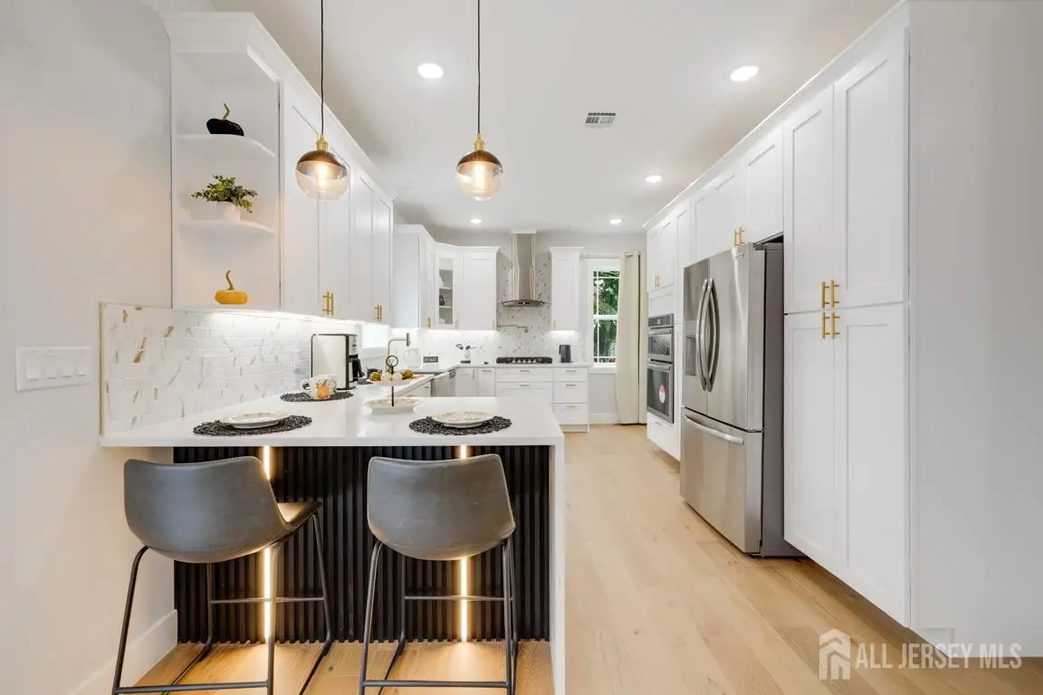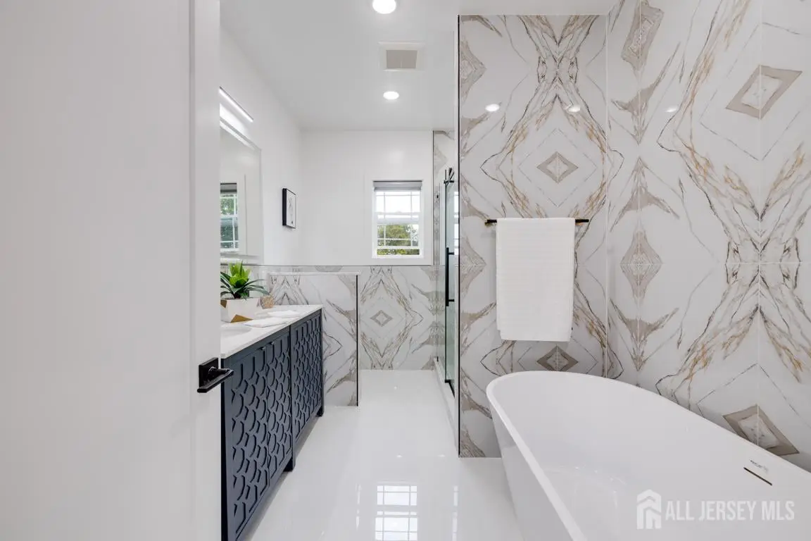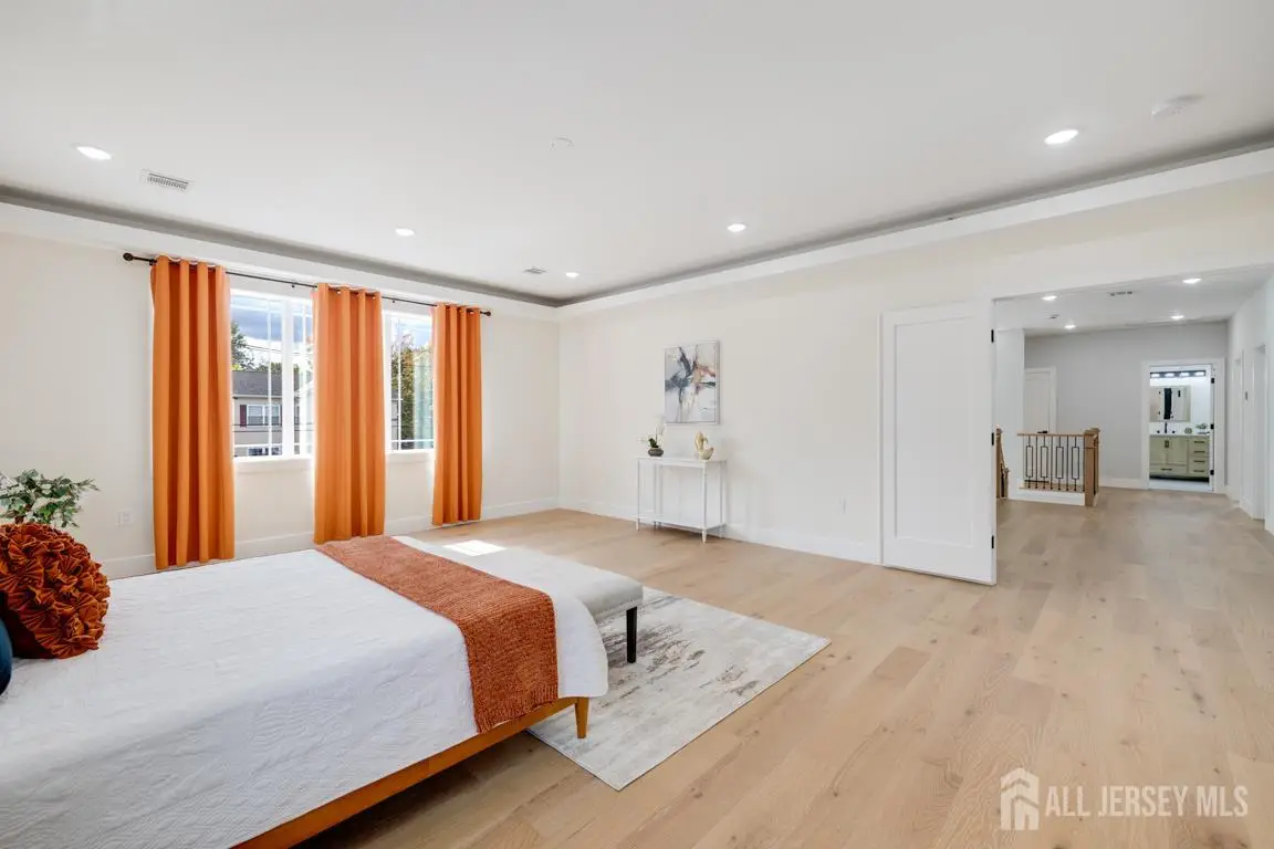 Welcome to this exquisite 5-bedroom, 5-bathroom home with a fully finished exterior access basement in Edison offering over **5,100 sq ft** of total living space, including the basement with a full bath. *** Experience luxury living with spacious interiors, modern design, and top-tier finishes throughout. The inviting floor plan features **9-foot ceilings on both levels** and a **first-floor bedroom with a full bath**, ideal for guests. *** The **gourmet kitchen** is a chef's delight equipped with a cooktop, high-end appliances, custom cabinetry, and a convenient breakfast bar perfect for casual dining. The **family room** exudes warmth and sophistication with an elegant electric fireplace and refined deco. *** Upstairs, the **primary suite** offers a spacious closet and a spa-like ensuite bath with a soaking tub for ultimate relaxation. An additional **ensuite bedroom** plus two more generous bedrooms sharing a full bath provide flexibility and comfort for family or guests. The **second-floor den** makes an ideal office, library, or extra lounge area, complete with access to a private balcony. *** Additional premium features include **Pella windows**, **dual-zone HVAC**, **EV charger setup**, and **security camera readiness**. The **finished basement**, with ceilings over 8 feet and a full bath, provides endless possibilities for a home theater, gym, or recreation space. *** Nestled in a sought-after Edison neighborhood, this home offers **easy access to major highways, top-rated schools, shopping centers, dining, parks, and the Edison NJ Transit station** ( and #8776;50 minutes to NYC). Close to **Rutgers University, RWJ Hospital**, and major supermarkets and malls, this property delivers the perfect blend of **luxury, convenience, and location**. **Truly one of the finest homes in South Edison a rare opportunity not to be missed!**