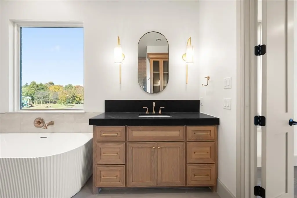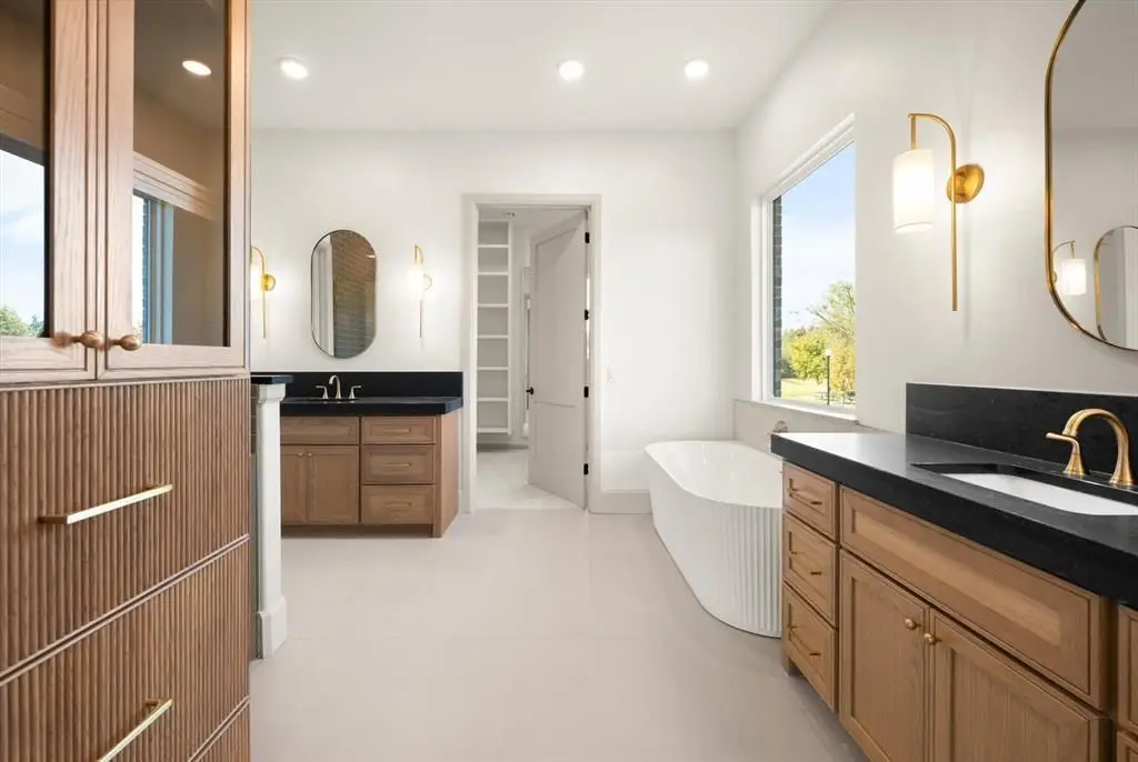• Spa-like primary suite with walk-in shower and free-standing tub