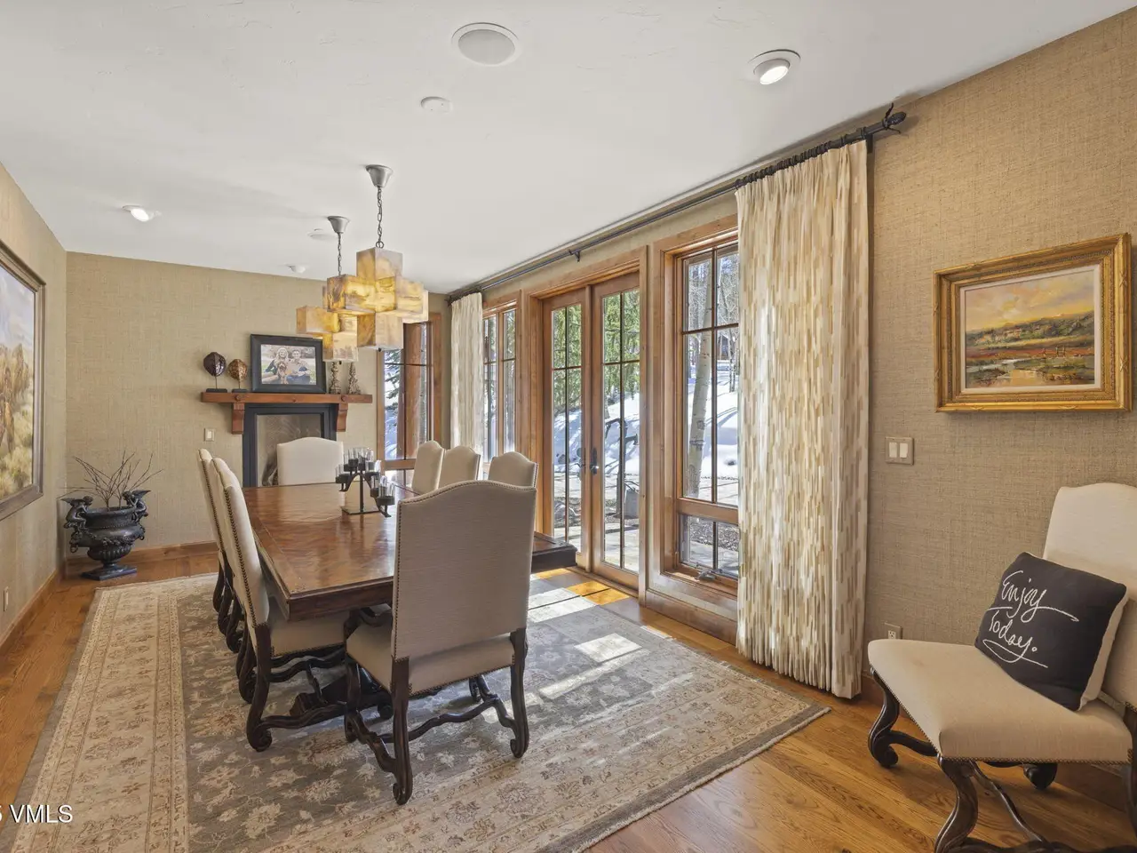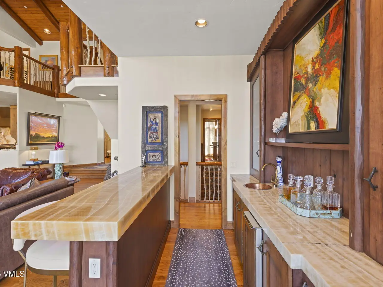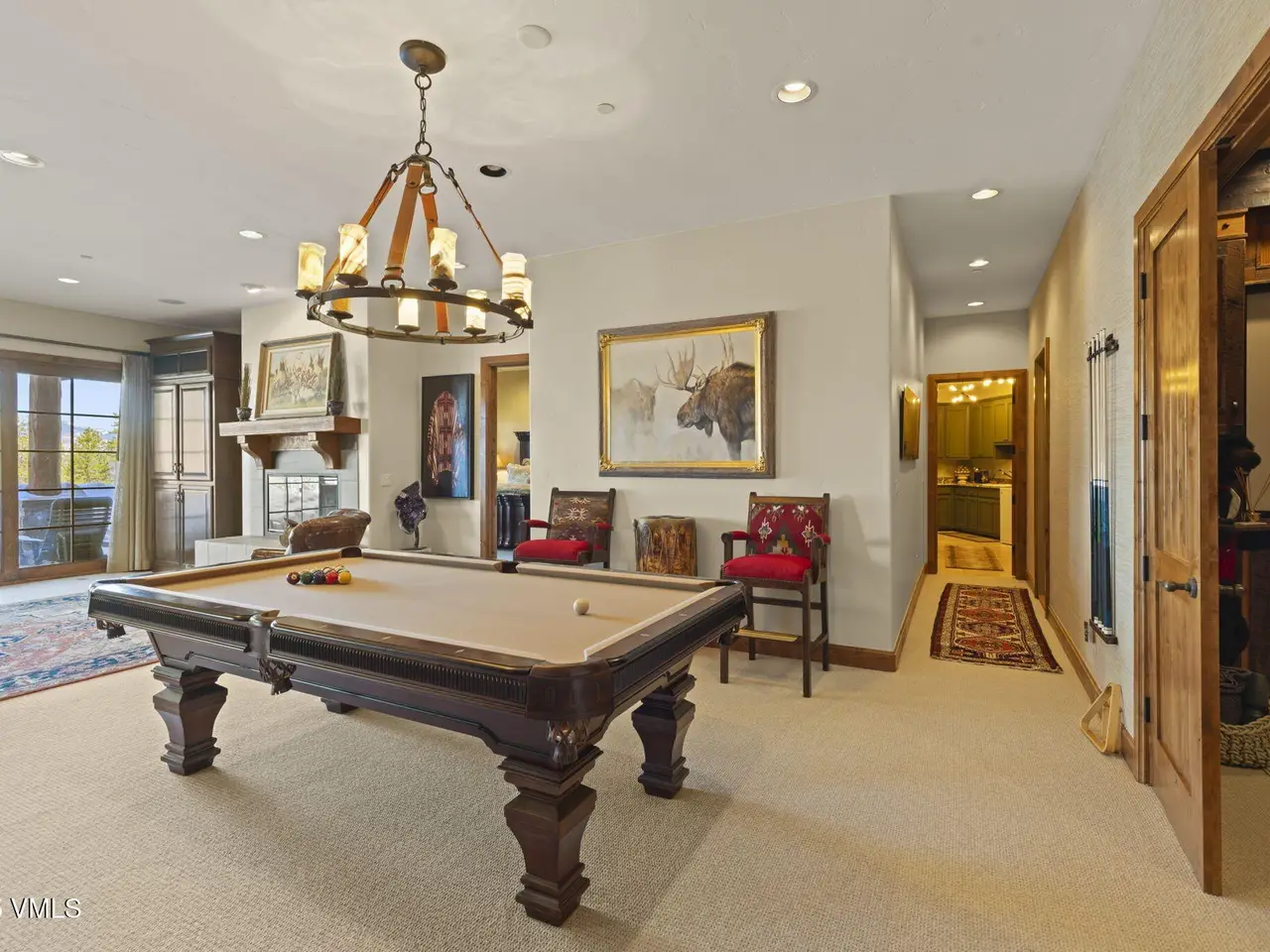 Perched on a premier, elevated site just beyond the gates of The Ranch, this remarkable mountain estate embodies the spirit of Colorado living. Crafted with massive hand-peeled log accents and warm, natural materials throughout, the home blends rustic elegance with thoughtful, sophisticated design. Inside, expansive living spaces are tailored for both grand entertaining and quiet retreat, featuring dedicated areas for movie nights, fitness, soaking under the stars in the outdoor hot tub, game days, billiards and a well appointed wine tasting enclave. The heart of the home is a beautiful chef's kitchen, complete with high-end appliances and an adjacent morning room filled with natural light-the perfect place to start your day. For those who work remotely or need a quiet place to create, there are two private offices. The layout includes two luxurious primary suites, four additional guest suites, and a custom-built bunk room that can comfortably sleep a crowd. Panoramic views stretch out to the Gore Range, completing this one-of-a-kind alpine retreat.