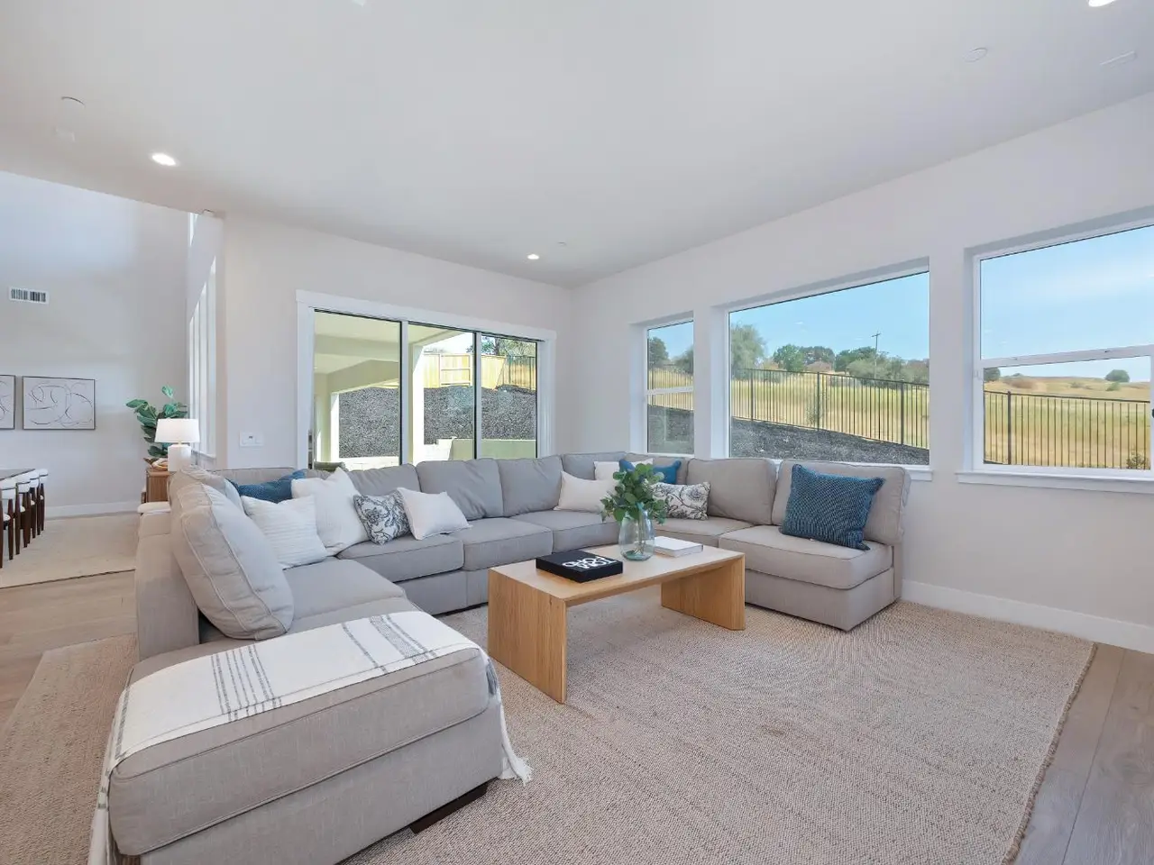 Beautifully designed, Toll Brothers' home, purchased in March is welcoming with soaring ceilings and an abundance of natural light. Chef-inspired kitchen features modern appliances, spacious island, generous counter space, and a walk-in pantry perfect for everyday living and entertaining. Adjacent to the kitchen, the casual dining area is ideal for family meals, while the formal dining room offers an elegant setting for hosting and holiday celebrations. The expansive Great Room invites relaxation, with large windows that open to the California Room, creating a seamless indoor-outdoor living experience. A downstairs bedroom with an ensuite bath offers privacy and comfort for overnight guests or multigenerational living. The three-car garage provides ample parking and storage options and OWNED 15KW solar system. Retreat upstairs to the luxurious primary suite, complete with dual vanities, a soaking tub, a separate oversized shower, and a spacious walk-in closet and covered deck perfect for a cozy morning or romantic evenings. Two additional bedrooms each enjoy their own private baths, while a versatile loft offers flexible space for a home office, media room, or play area. Additional highlights include an expansive upstairs laundry room.