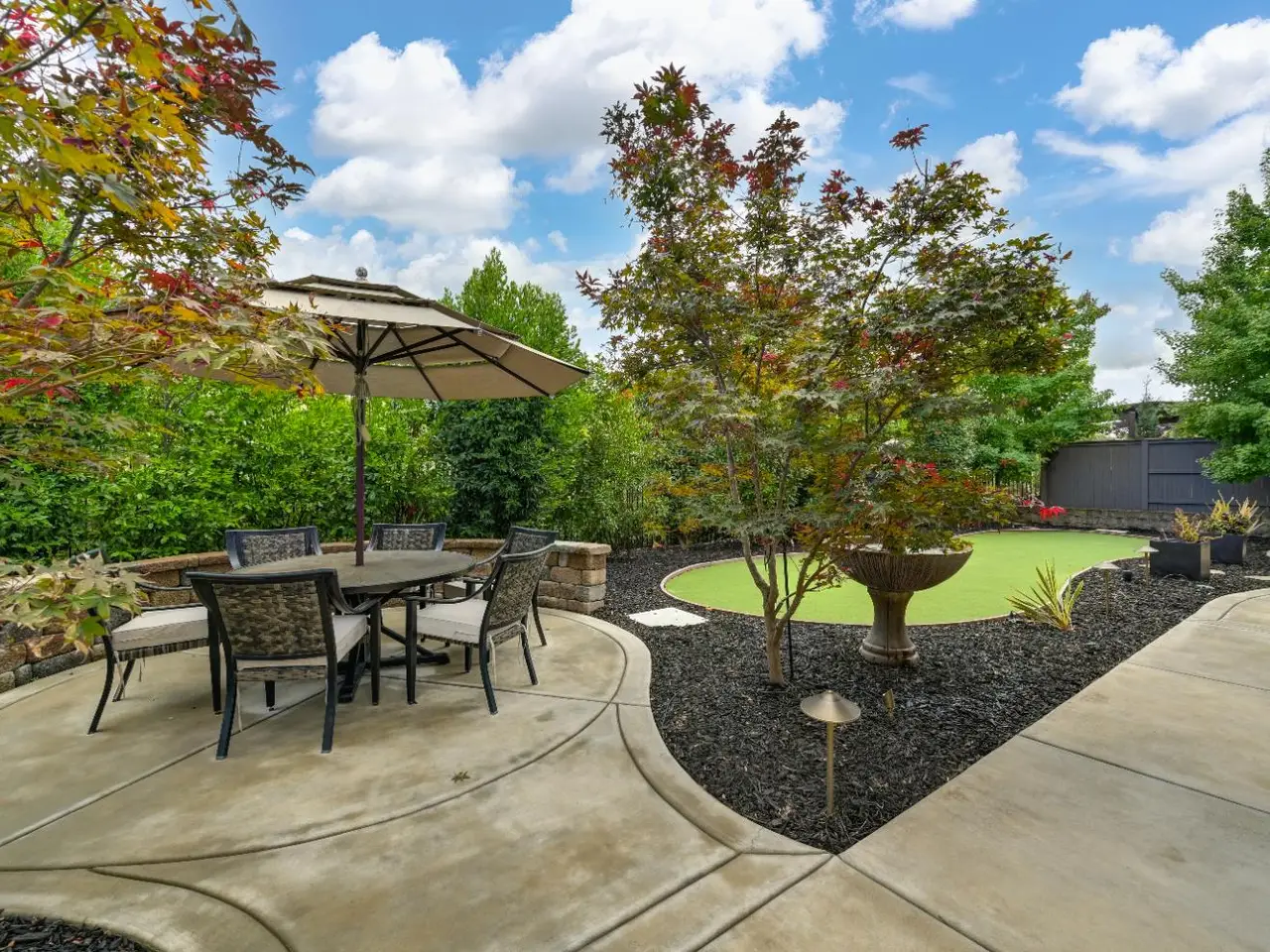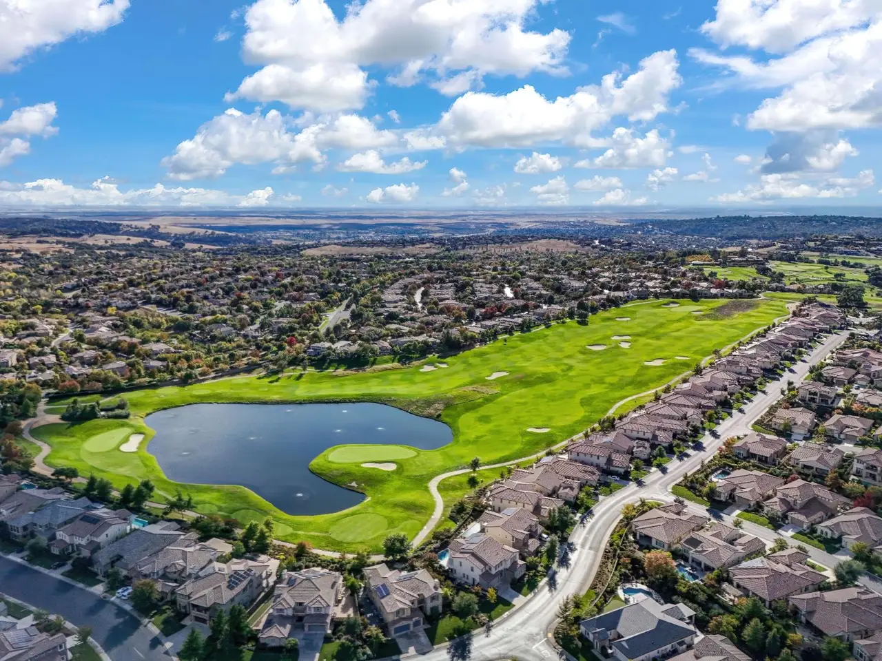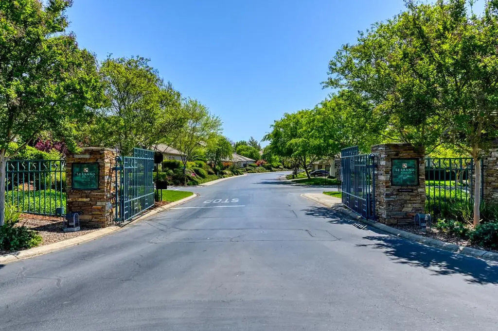 Your dream home in the prestigious 24-hour guard-gated community of Serrano Golf & Country Club awaits. This elegant residence features an open floor plan with hardwood floors, designer accents, and expansive living spaces. The main level offers a private office with French doors, guest suite with full bath, 1/2 bath, living room, pantry, formal dining room with custom lighting and a chef's kitchen which includes high-end appliances, and an oversized island perfect for cooking and entertaining. Upstairs you'll find a loft with balcony and panoramic views, two en-suite bedrooms with walk-in closets, and a luxurious primary suite with private balcony, spa-like bath, and dual walk-in closets. Enjoy indoor-outdoor living with large sliders opening to a Bocce court, private putting green, and outdoor dining areas. Additional features include a mudroom, 3-car tandem garage with epoxy flooring, and house is pre-plumbed for solar. Close proximity to parks, trails, Folsom Lake, and top-rated schools. Serrano Country Club offers world-class amenities: an 18-hole championship golf course, multiple dining venues, fitness center, junior Olympic pool, wading pool, four lighted tennis courts, and a spa.