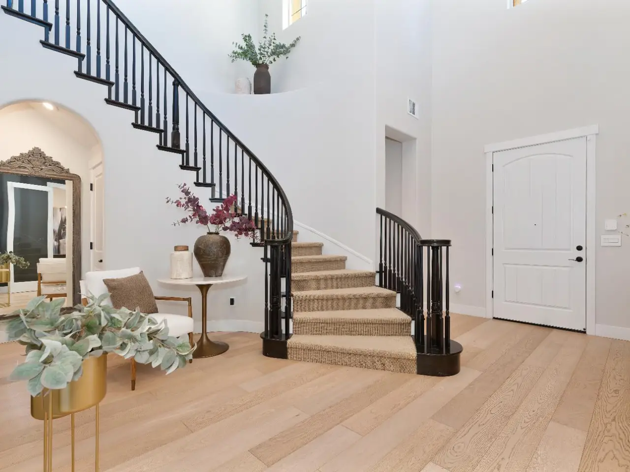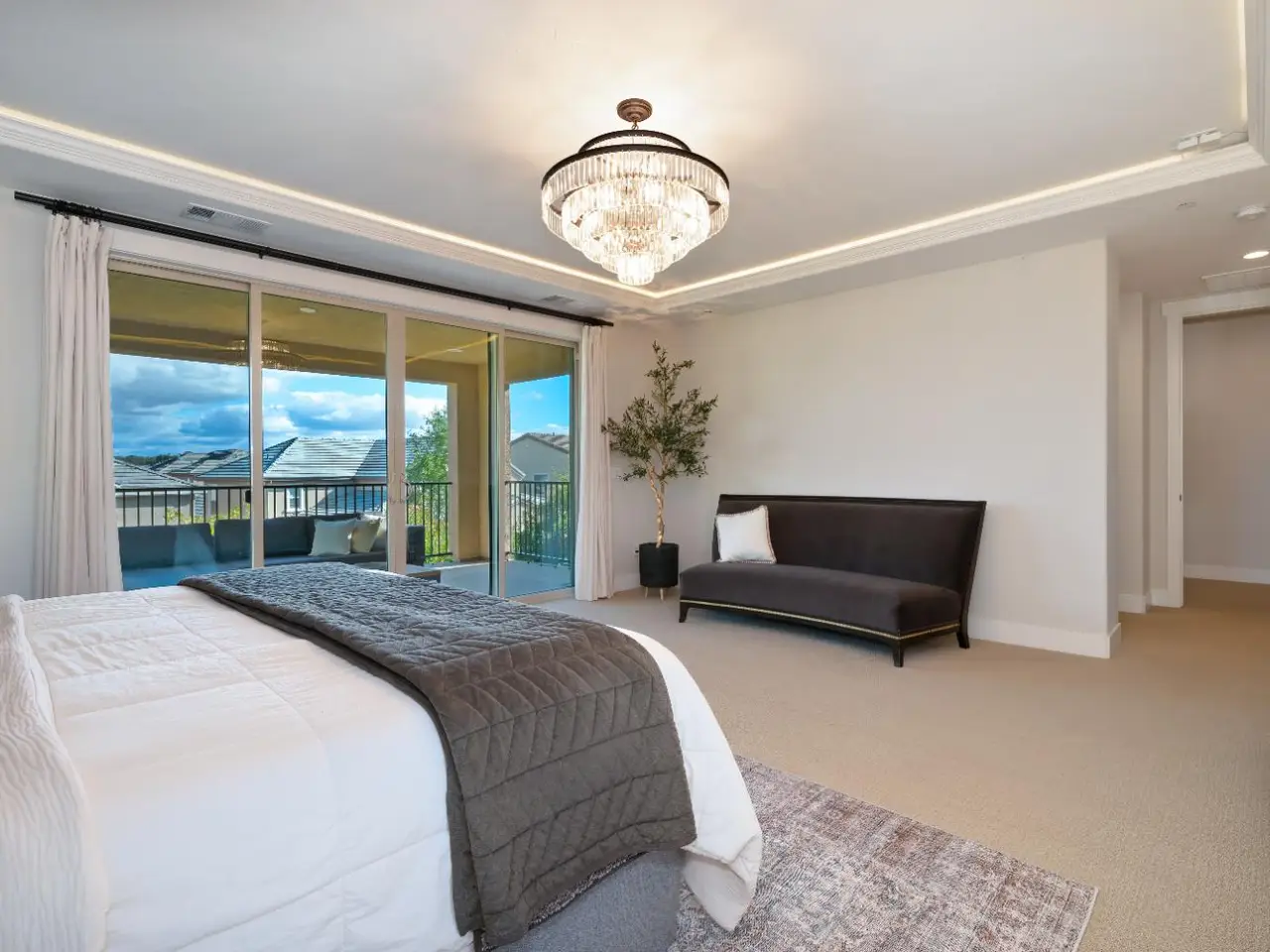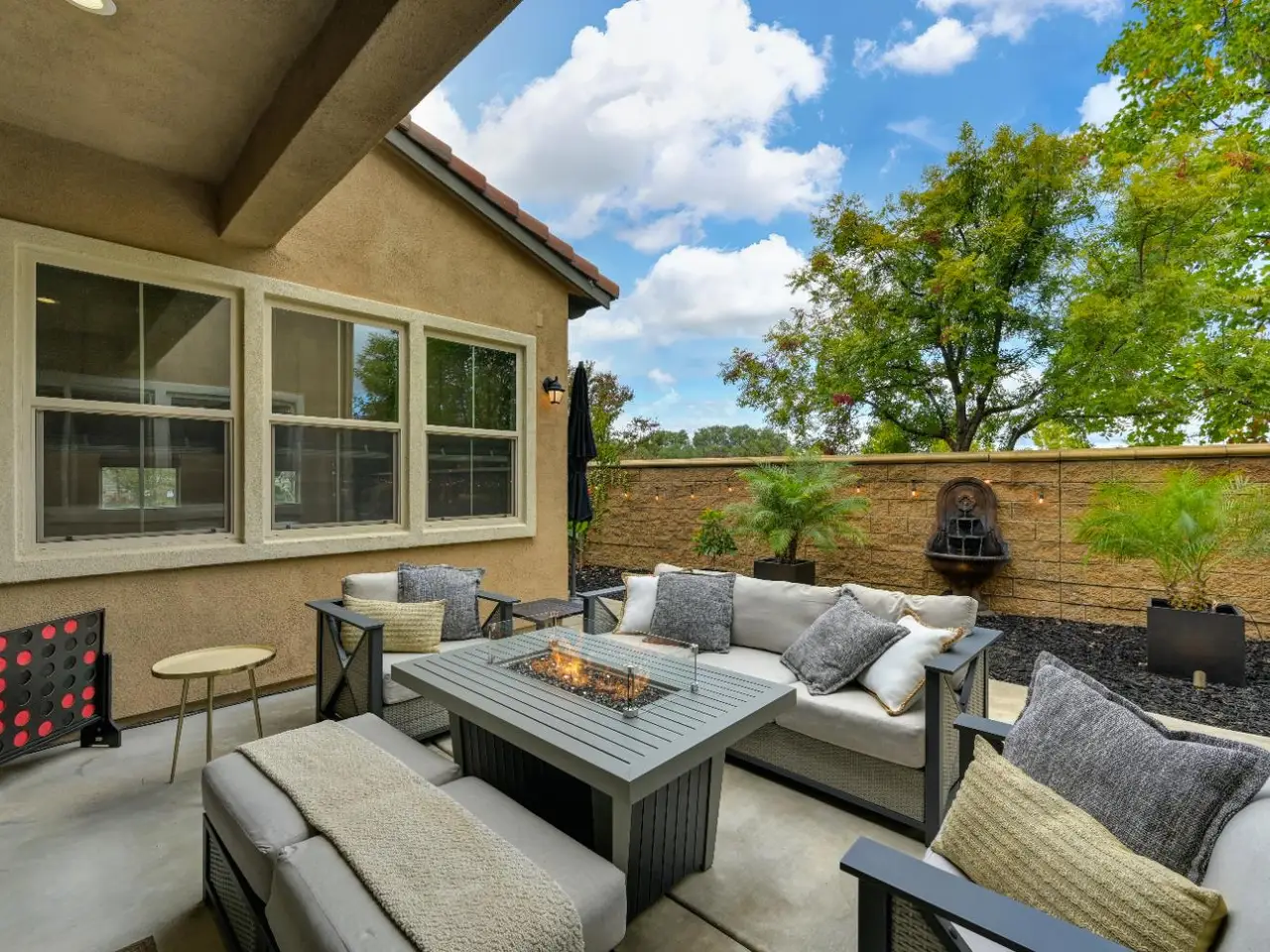 Your dream home in the prestigious 24-hour guard-gated community of Serrano Golf & Country Club awaits. This elegant residence features an open floor plan with hardwood floors, designer accents, and expansive living spaces. The main level offers a private office with French doors, guest suite with full bath, 1/2 bath, living room, pantry, formal dining room with custom lighting and a chef's kitchen which includes high-end appliances, and an oversized island perfect for cooking and entertaining. Upstairs you'll find a loft with balcony and panoramic views, two en-suite bedrooms with walk-in closets, and a luxurious primary suite with private balcony, spa-like bath, and dual walk-in closets. Enjoy indoor-outdoor living with large sliders opening to a Bocce court, private putting green, and outdoor dining areas. Additional features include a mudroom, 3-car tandem garage with epoxy flooring, and house is pre-plumbed for solar. Close proximity to parks, trails, Folsom Lake, and top-rated schools. Serrano Country Club offers world-class amenities: an 18-hole championship golf course, multiple dining venues, fitness center, junior Olympic pool, wading pool, four lighted tennis courts, and a spa.