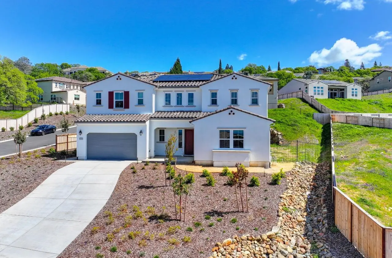 Nestled in the highly sought-after Ridgeview Village of El Dorado Hills, this brand-new, meticulously crafted home offers 3,984 square feet of elegant living space. Featuring 4 spacious bedrooms and 4.5 beautifully appointed bathrooms, this residence effortlessly blends comfort with modern sophistication. The upstairs Great Room provides an ideal secondary space for entertaining, with panoramic views that create the perfect backdrop for family gatherings and special events. The gourmet kitchen is a chef's dream, showcasing a large center island, custom white cabinetry, a fully equipped rear prep kitchen, and premium stainless steel Caf appliances. Step outside to the expansive California Room, a peaceful oasis perfect for alfresco dining or simply relaxing in style while enjoying the tranquil views. The private downstairs guest suite offers a quiet, secluded retreat for family or visitors, ensuring comfort and privacy. With abundant natural light flowing throughout, this home strikes a flawless balance of style and functionality. It stands as a true gem in the Ridgeview community, offering an unparalleled lifestyle in a serene setting.