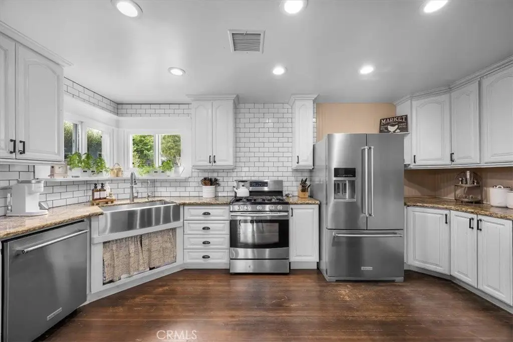 Discover a property that beautifully blends classic charm with modern design, offering 2,708 sq. ft. of versatile living space across a 3 bedroom, 2 bath main residence, a newly built (2024) ADU, a finished recreation room with loft, and an upgraded two-car garage with studio. The main home exudes farmhouse warmth with original hardwood floors, remodeled bathrooms (2020 & 2025), a spacious kitchen with farmhouse sink, subway tile, and granite countertops, plus cozy touches like an electric fireplace. Thoughtful upgrades include central heat and A/C, tankless water heater, copper/PEX plumbing, new roof, solar, and a 200-amp panel (2023). Outdoor living is highlighted by a gated front yard, mature landscaping, automated sprinklers, a new 200 sq. ft. deck, and backyard plumbing for a future fire feature. The newly built (2024) two-story ADU offers a sleek modern contrast, with 2 bedrooms, 2 bathrooms, polished concrete floors, 10’ ceilings, a custom kitchen with new appliances, gas fireplace, upstairs bedrooms with ceiling fans, luxury laminate flooring, and independent solar and utilities. A finished rec room with half bath, kitchenette, and vaulted loft provides additional living or creative space. The polished concrete garage impresses with a full glass high-lift door, beverage refrigerator, custom storage, and a finished studio with wired speakers and A/C. Perfect for multi-generational living, private retreat, or rental income, this unique property blends rustic comfort with modern convenience, all within walking distance to Main Street dining, shops, and the beach, with easy freeway access.