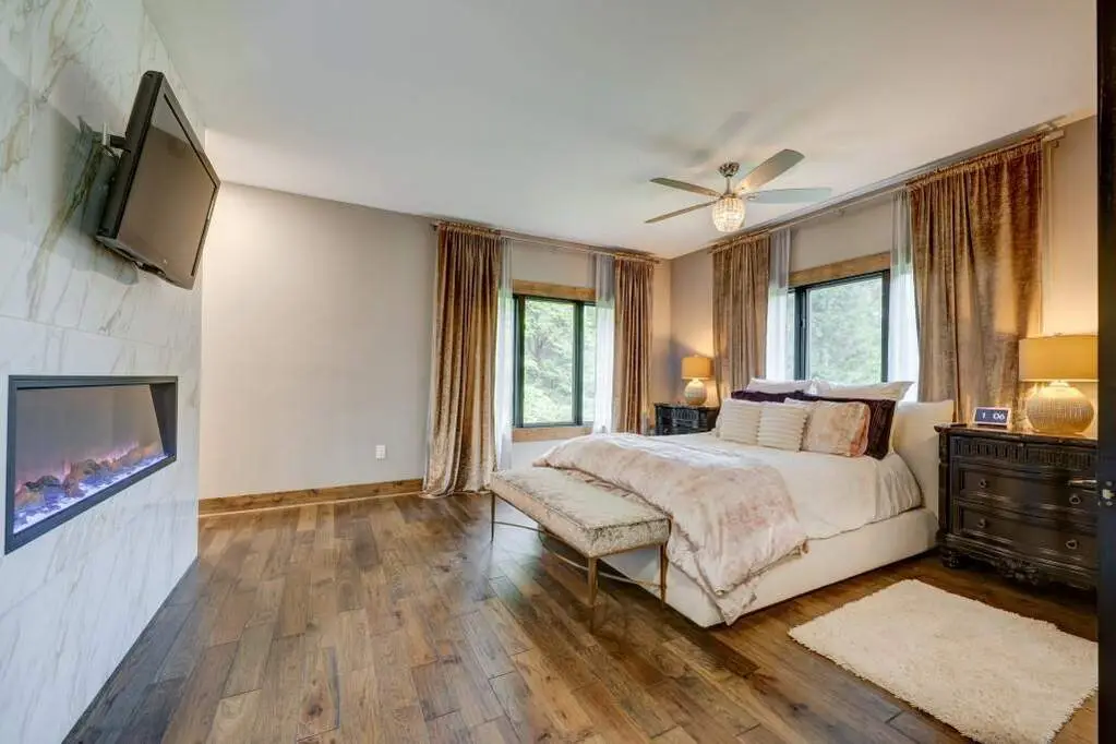 Main level linear fireplace