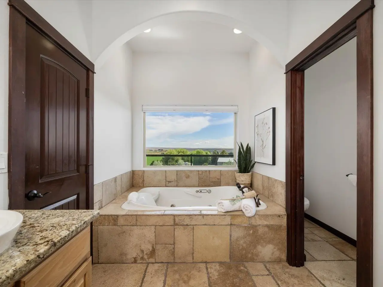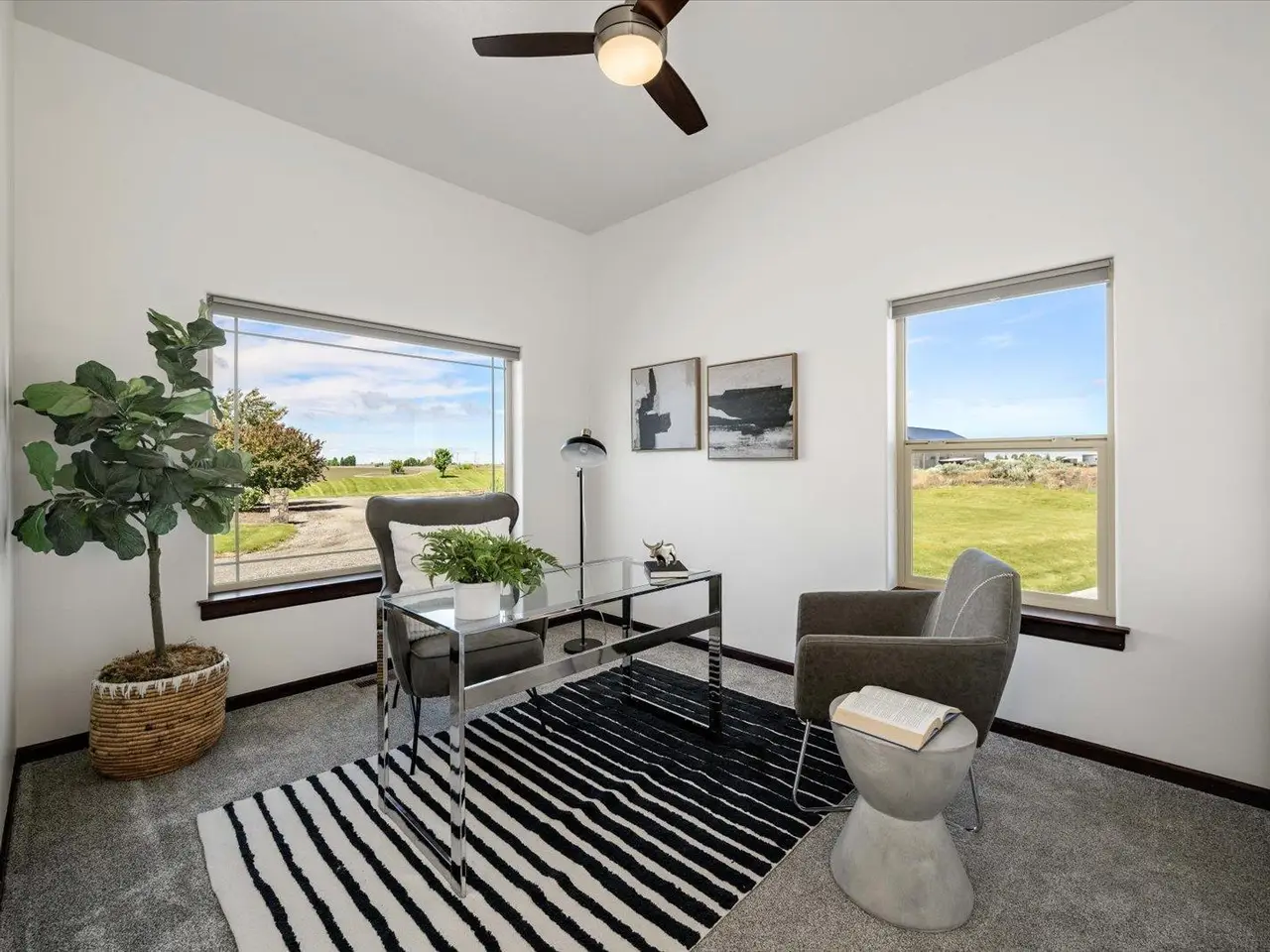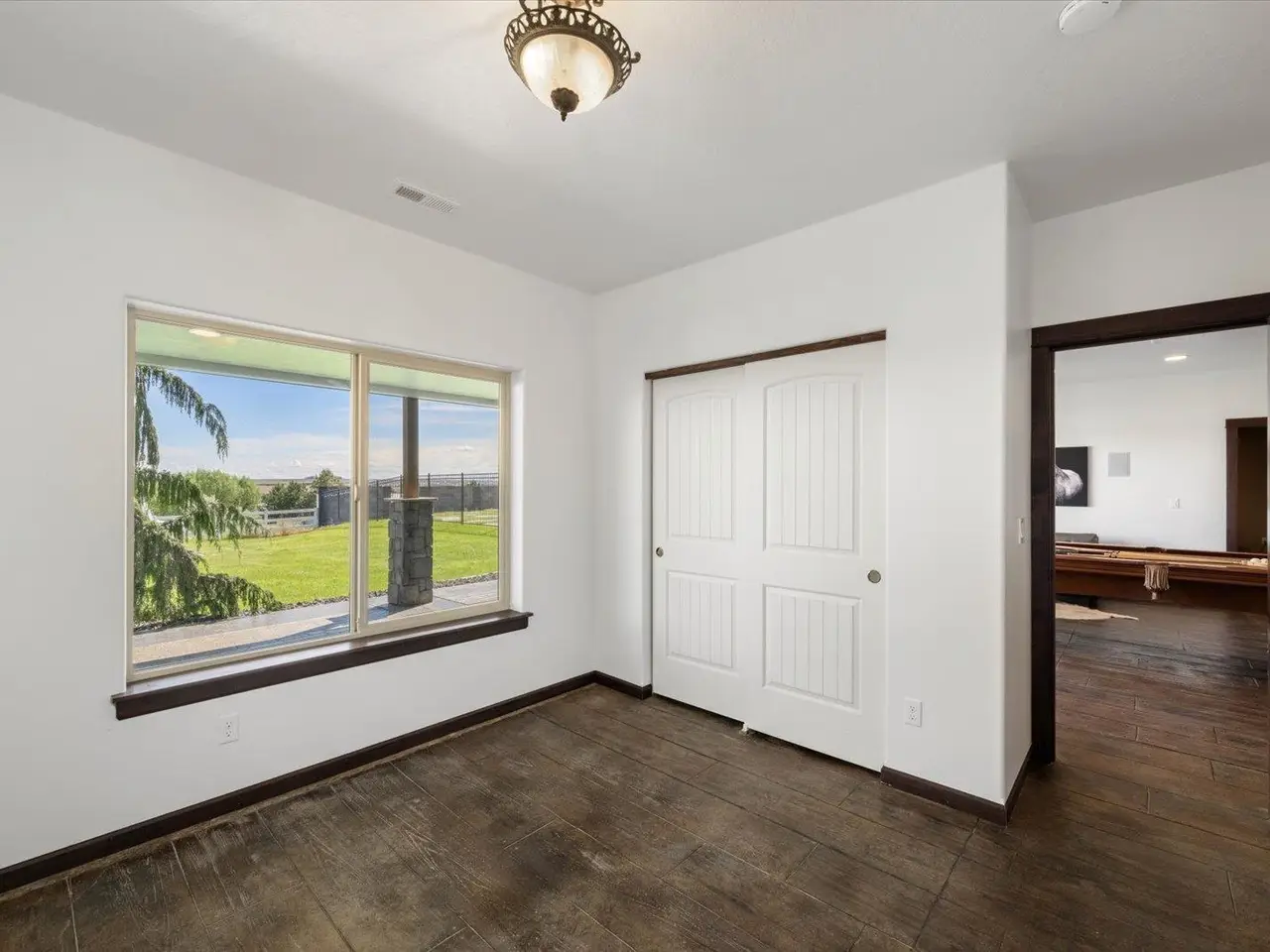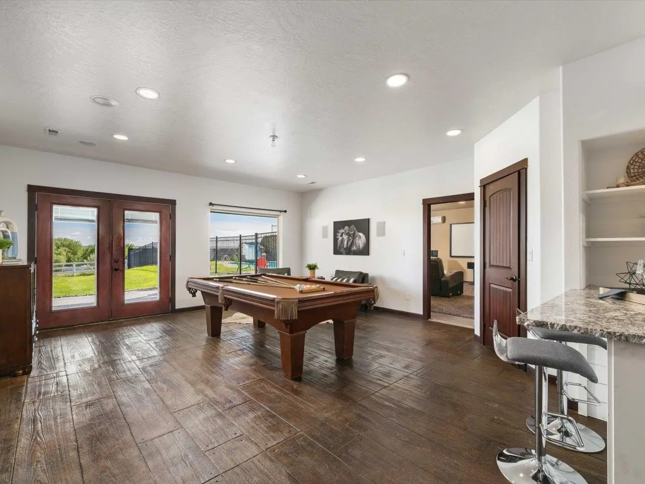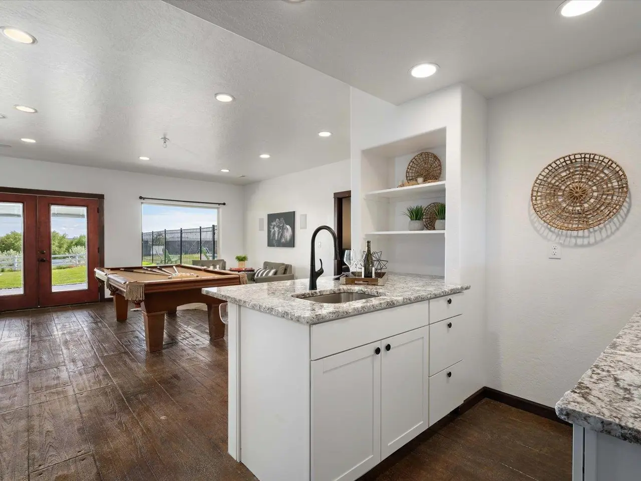 Presenting this exclusive premier listing – Discover unparalleled privacy and resort-style living just 12 minutes north of Pasco, Washington. Nestled on 4.34 acres, this extraordinary 4-bedroom, 5-bath estate offers 3,356 sq ft of luxury and functionality, thoughtfully designed for upscale entertaining and everyday comfort. The open-concept kitchen and living area exude modern elegance with an oversized granite island, brand new built-in fridge/freezer, large pantry, Venetian plaster ceiling, custom millwork, and ambient LED up-lighting. The main level features a versatile bedroom or office, full bath, and spacious laundry/mudroom with oversized sink. The massive primary suite is a private retreat with French doors opening to the outdoor oasis and covered patio, a large walk-in closet, and a spa-like en-suite with self-heated two-person Jacuzzi tub, dual showerheads with rain feature, dual vanities, heated towel rack, and smart TV. The daylight basement continues the luxury experience with stamped and stained wood-look concrete floors, two additional bedrooms (one with walk-in closet), full bath, game room with pool table, and a custom wet bar with sink and luxury cabinetry. The professionally designed theater room includes a half bath, no-touch urinal, climate control, and 8” steel-reinforced safe room. Outdoor living is truly unmatched, featuring a 43,000-gallon lagoon-style pool with swim-up bar, grotto rock waterfall, waterslide, two white sand beaches, bridge, 20+ person hot tub with waterfalls, and a gas fire pit. Additional highlights include a miniature lake with sand beach and firepit, an outdoor amphitheater with 200”+ drop-down screen and built-in bar, and an outdoor bathroom with shower for pool guests. The upper stamped concrete deck offers panoramic territorial views of the Basin and Blue Mountains and includes a custom built-in Traeger grill, outdoor kitchen, sink, and refrigerator. The lower covered patio features outdoor speakers and more stamped concrete for seamless entertainment. A newly added sport court with pickleball and a fully fenced, irrigated pasture for horses or livestock make this property both luxurious and functional. With a private drive, low-maintenance pre-stained concrete siding, standing seam metal roof, and proximity to schools, highway access, and Country Mercantile nearby, this one-of-a-kind estate is a rare opportunity in the Tri-Cities.