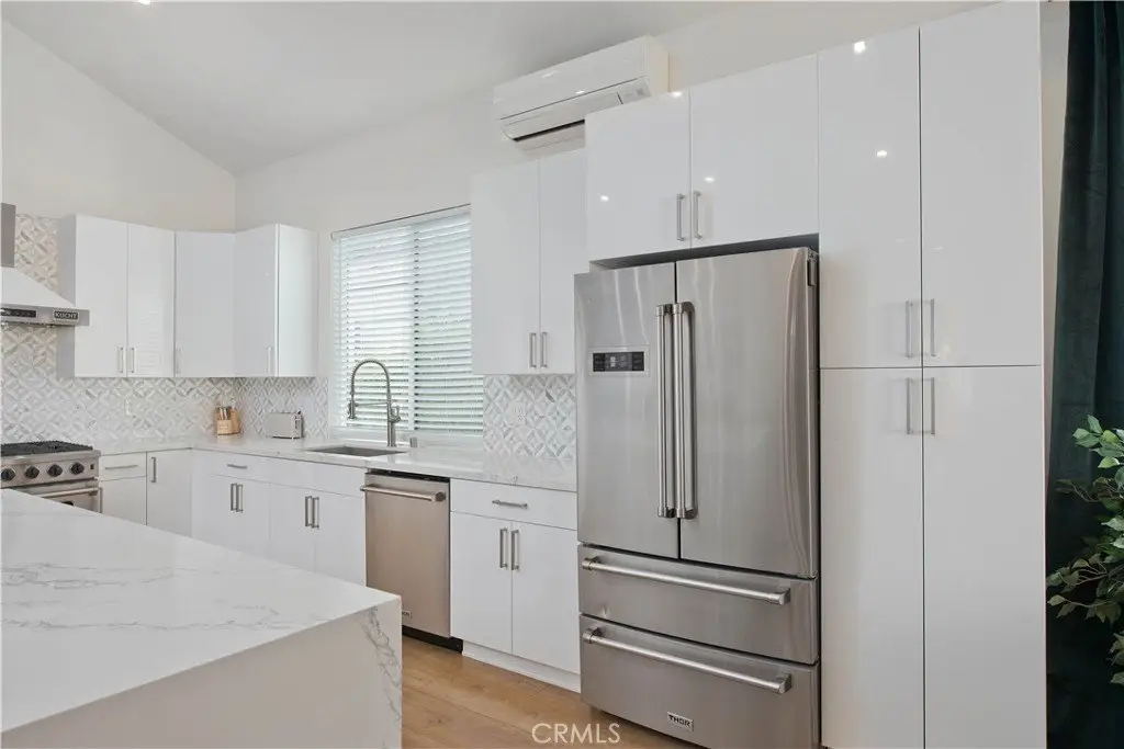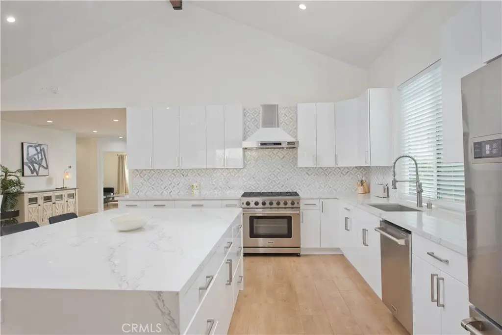 Stunning Remodeled Encino Park Home with Modern Upgrades and Energy Efficiency. Welcome to this beautifully remodeled and expanded 5-bedroom Encino Park gem, offering a seamless open floor plan flooded with natural light and highlighted by a striking exposed wood beam ceiling. From the moment you enter, you’ll be captivated by the expansive great room featuring wall-to-wall glass doors that open to a serene outdoor space. The chef’s kitchen is a showstopper — designed with quartz countertops, a spacious eat-in island with ample storage, soft-close white cabinetry, premium Thor stainless steel appliances, and a massive walk-in pantry for ultimate convenience. This home includes three generously sized bedrooms near the front of the house, accompanied by a large shared bathroom with double vanity. The luxurious primary suite is a private retreat with a walk-in closet, spa-like bathroom featuring an oversized shower, soaking tub, and dual sinks. An additional en-suite bedroom with its own walk-in closet and full bath adds flexibility for guests or extended family. Step outside to your private backyard oasis, complete with low-maintenance turf, a durable Trex deck perfect for entertaining, and lush landscaping. Enjoy energy efficiency year-round with fully owned solar panels and Tesla Powerwall batteries, keeping your electric bills low and your home powered even during outages. This move-in ready home blends comfort, luxury, and sustainability — don’t miss this rare opportunity in Encino Park!