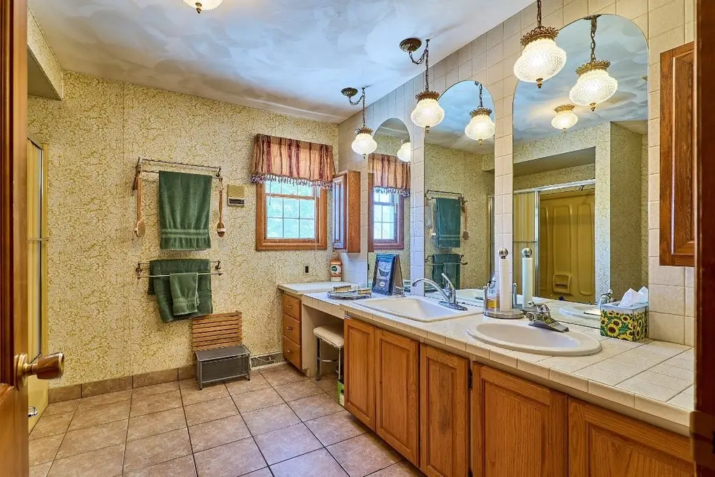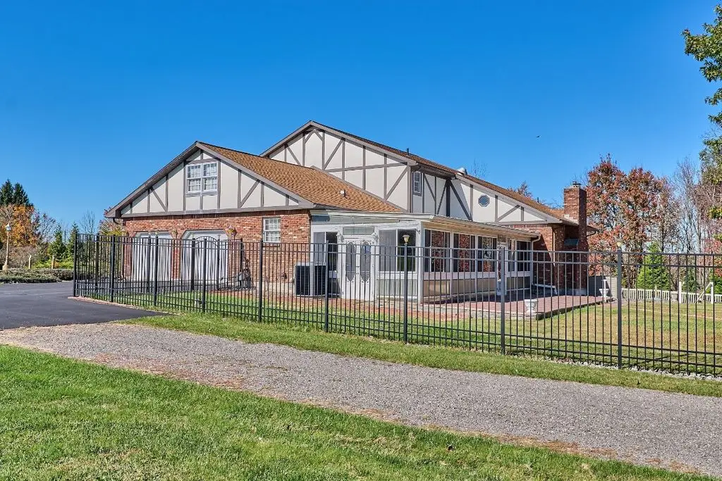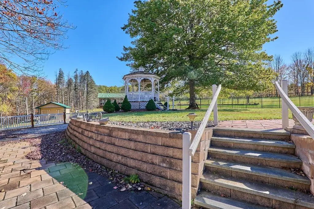 A Tuscany-inspired brick beauty on 13 acres of land evokes visions of being in a country estate. Warm & inviting with 2 gorgeous gas fireplaces and beams ad a touch of rustic yet elegant style. A/C and Auchinachie Furnace are New, Wood Pella windows throughout, 6 panel doors, pocket doors, & walk in closets. Hardwood floors are in beautiful condition, smooth plastered walls and tiled floors throughout. 5 bdrm's with additional space to add another. New full bath in lower level. Expansive lower level with family room a full kitchen, new stove, bdrm w/walk-in closet & new full bath. The amazing 3 car garage is insulated and heated, (middle door larger) also another 2 car garage attached. Large, enclosed porch, pavers outside lead to a larger patio with gazebo and another outside pavilion for large parties. Other outbuildings all with heat & electric. Even an outdoor top of the line his & her bathroom facility. Roof 2015, Radon test done & passed, Security Cameras on property.