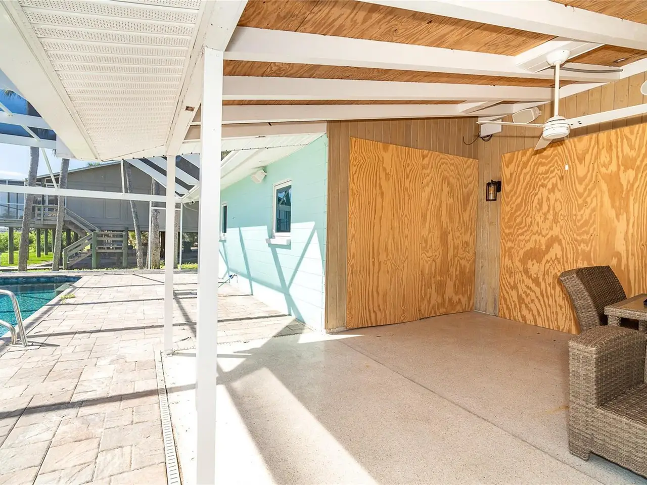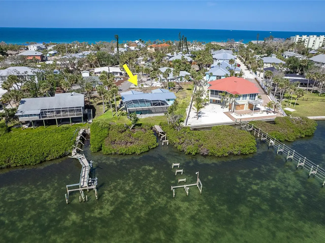 MANASOTA KEY – BAYFRONT HOME WITH DOCK & DEEDED BEACH ACCESS This home sustained storm surge damage and is being sold as is. It is a fantastic opportunity to restore and personalize a rare waterfront property on Manasota Key. Welcome to Pelican Shores, where this charming 2-bedroom, 2-bath pool home with a 1.5-car garage sits on an impressive nearly one-third-acre lot and 71 feet of water frontage—offering direct access to the Intracoastal Waterway, a private deeded dock, and community deeded beach access just steps across the street. Whether you're envisioning morning beach walks, launching a kayak, or boating directly from your backyard, this home delivers the ultimate Florida lifestyle. The spacious lanai and caged pool, added in 2020 with stylish brick pavers, is the perfect place to relax and entertain while taking in stunning sunrises over the Bay. In the evenings, cross the street and head for the beach for breathtaking Gulf sunsets. Although the home was affected by the recent storm, many key features remain intact—all windows are Hurricane Impact-rated and undamaged. The sliding glass doors in both the kitchen and living room are currently being replaced with new Hurricane Impact, already ordered for installation. The interior showcases cathedral ceilings, polished Terrazzo floors, and a spacious kitchen that flows into a large utility room for your washer and dryer, and a convenient full guest bath located off the laundry area and garage—designed for practical, everyday living. The formal living and dining rooms offer direct access to the lanai through the soon-to-be-installed sliding glass doors, and both bedrooms are generously sized, providing plenty of comfort and space. This is a rare chance to own on the Intracoastal Waterway in a location just moments from local restaurants, entertainment, and all that Manasota Key has to offer. Don’t miss this opportunity, call today to schedule your private showing
