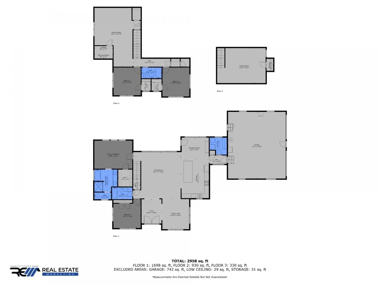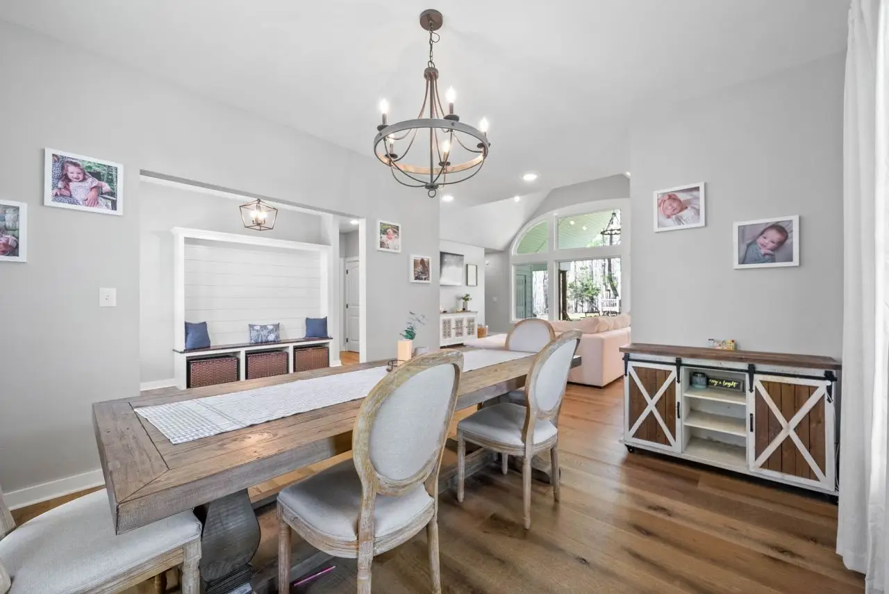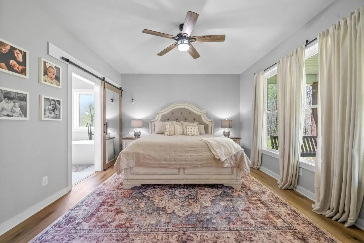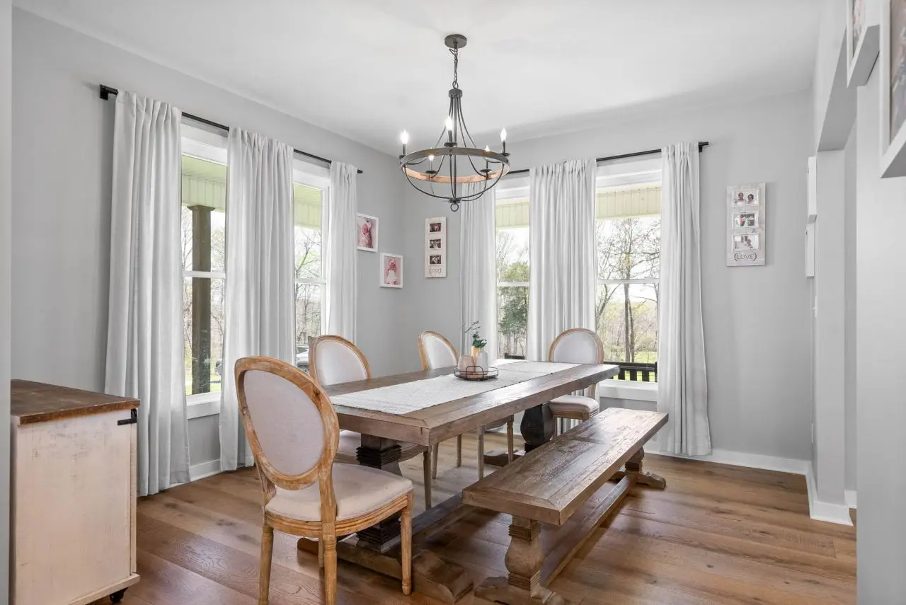 Welcome to your dream modern farmhouse, an exquisite three-story retreat nestled on a sprawling four-acre estate. This stunning home features cathedral ceilings and wide plank wood flooring throughout, creating a warm and inviting ambiance. The heart of the home is the expansive kitchen, boasting luxurious marble countertops and a cozy breakfast nook, perfect for morning gatherings. Adjacent is a formal dining room, ideal for entertaining guests. With four spacious bedrooms, including a master suite with elegant finishes, and three and a half beautifully designed baths, comfort is paramount. This home also includes two versatile bonus rooms, perfect for a home office or play area. Step outside to your large covered back porch, featuring impressive cathedral ceilings, an outdoor half bath, all perfect for relaxing or entertaining while enjoying the picturesque surroundings. An attached heated & cooled two-car garage adds convenience to this exceptional property. Immerse yourself in modern luxury and country charm in this remarkable farmhouse!